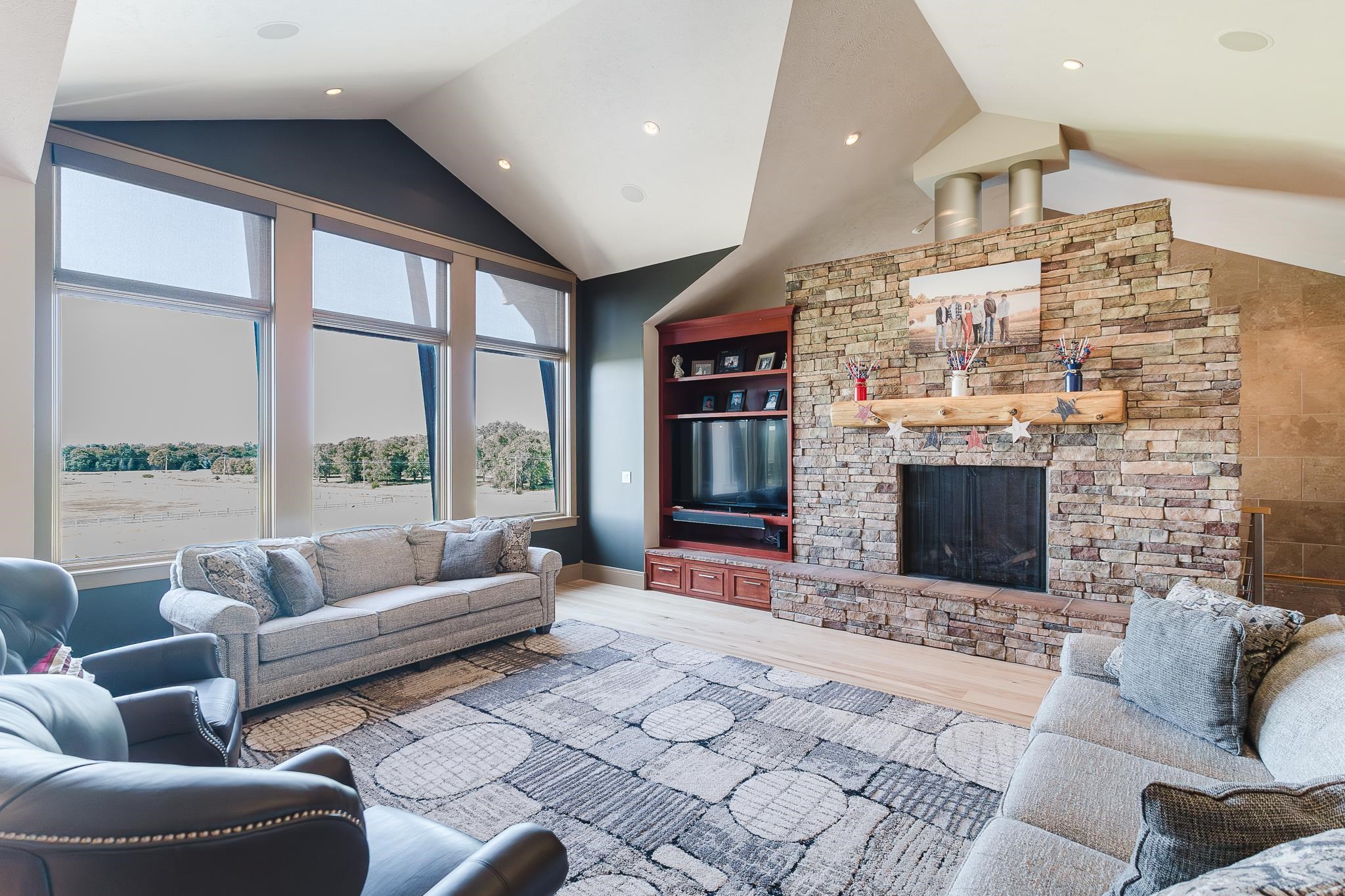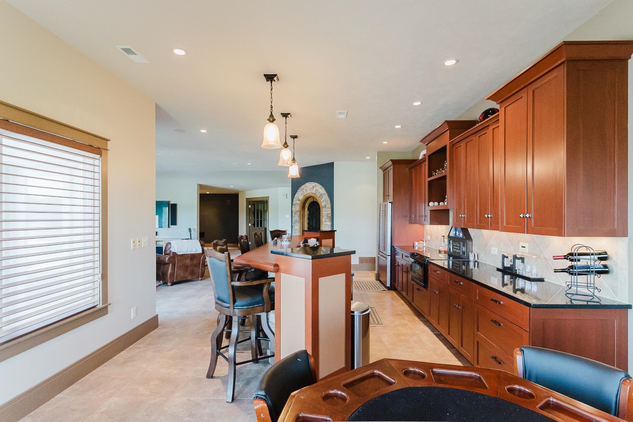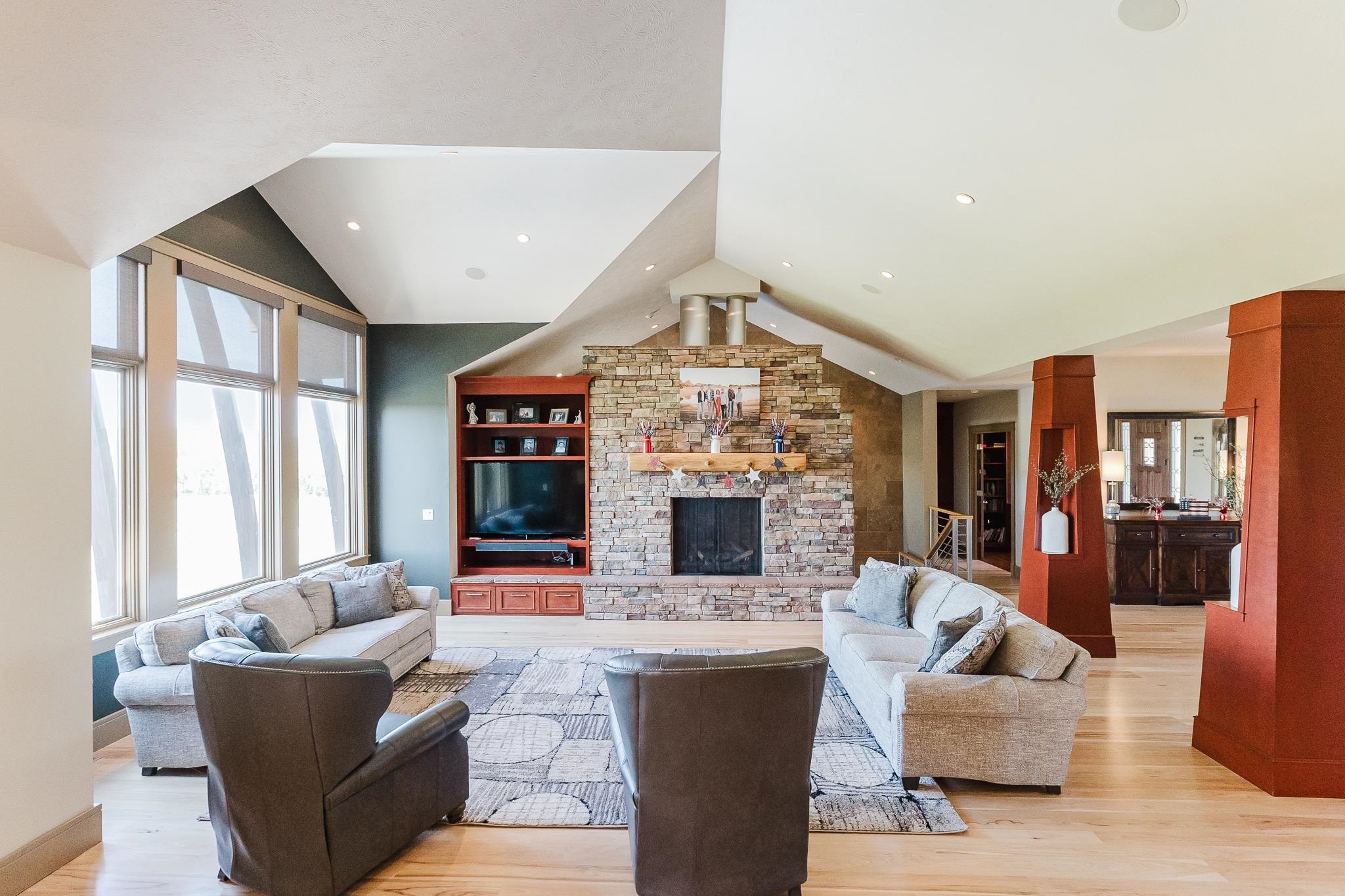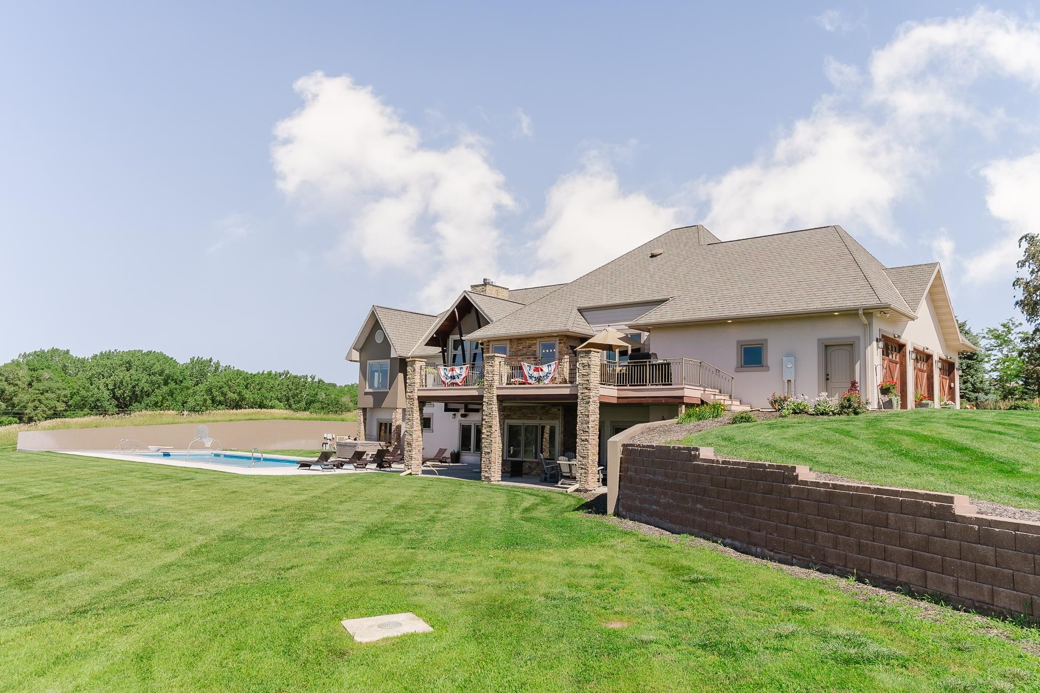 Discover an extraordinary custom estate where architectural artistry meets luxurious living on sprawling acreage. This magnificent 5-bedroom, 5-bathroom residence features meticulously crafted living space, showcasing breathtaking views and unparalleled attention to detail. Step into a culinary enthusiast's paradise featuring an expansive chef's kitchen designed for both intimate gatherings and grand entertaining. The home's dramatic suspended staircase, encased by striking travertine stone walls, creates an unforgettable first impression while the barrel ceiling dining room adds distinctive character. Gorgeous wood flooring flows throughout, complemented by three thoughtfully placed fireplaces that create inviting focal points. The private primary bedroom suite offers a sanctuary of comfort with separate vanities, a luxurious soaker tub, spacious shower and an expansive walk-in closet. A dedicated office provides the perfect work-from-home retreat, while the lower level transforms into an entertainment haven complete with full kitchen, game room, workout facility, and an exquisite wine room for the discerning collector. Outdoor enthusiasts will marvel at the underground pool, serene koi pond, expansive deck, and covered patio featuring an outdoor fireplace. The property's crown jewel is a versatile barn equipped with three stalls, running water, tack room, restroom, and kitchenette—ideal for equestrian pursuits. High-end ranch fencing encloses a riding arena and pastoral landscapes, while mature tree lines provide natural privacy and beauty. This exceptional property seamlessly blends indoor luxury with outdoor recreation, creating an unmatched lifestyle opportunity just minutes from downtown Norfolk.