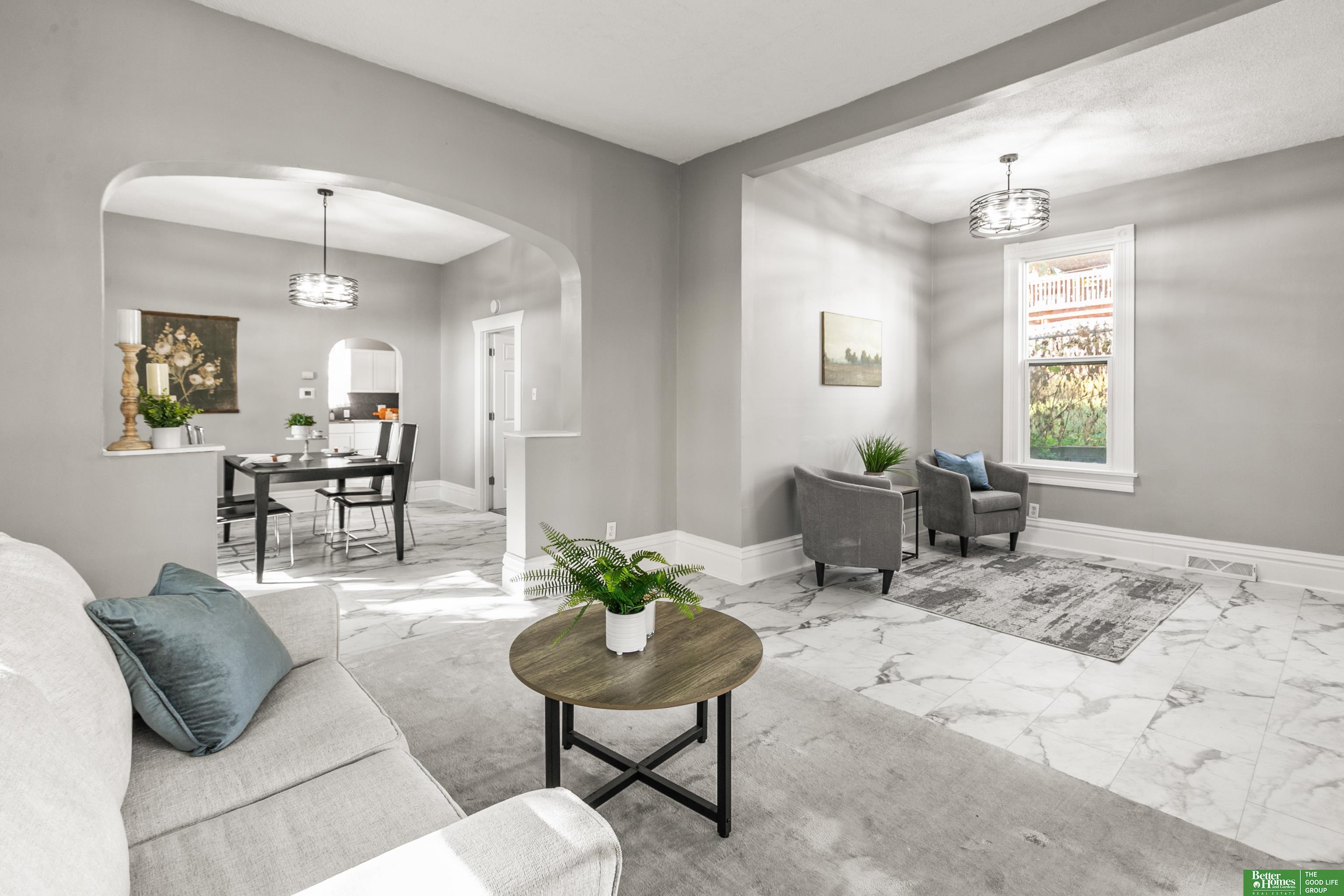 This completely updated South Omaha home has room to grow with up to 5-bedroom potential plus extra space for your office or game room. Offering 3 bedrooms, including a main floor bedroom and 2 non-conforming bedrooms, plus 2 bathrooms. Inside, you’ll love the all-new flooring, a fresh kitchen with brand-new appliances, and newer heating (2024) for peace of mind. Tucked back from the street, it offers extra privacy, plenty of off-street parking, and a quiet neighborhood feel. The cute front porch is the perfect spot to enjoy your morning coffee in this charming home.