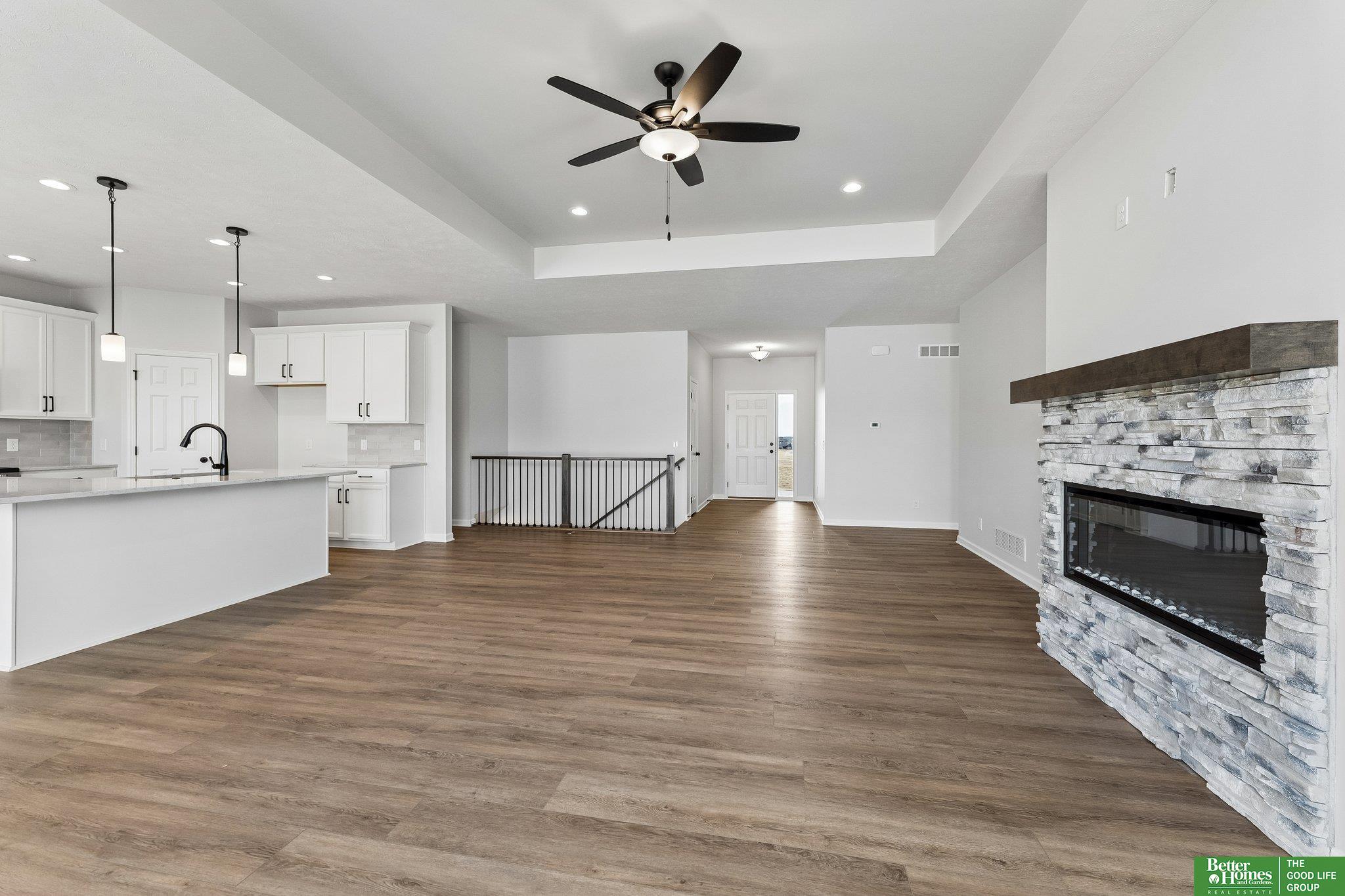 Beautiful move-in ready 3 bed 2 bath 3 car new construction Bellevue ranch located in Alta Collina! From the entry way, step into a bright & open main level with LVP flooring. Enjoy the spacious living room accented by expansive windows and a cozy stone fire place that flows easily into a stunning kitchen complete with stainless steel appliances, quartz counter tops, tile backsplash, oversized center island, walk-in pantry, and dining area with sliding door access to the patio. Convenient main level laundry, as well as a mudroom with built-ins. Retreat to the primary suite offering a large walk-in closet and full en suite bath with dual sinks, oversized soaking tub, and shower. Two additional main level bedrooms and a full bath with a shower/tub combo. Unfinished basement with plenty of room to make it your own! Outside, take advantage of the patio overlooking a level backyard. AMA