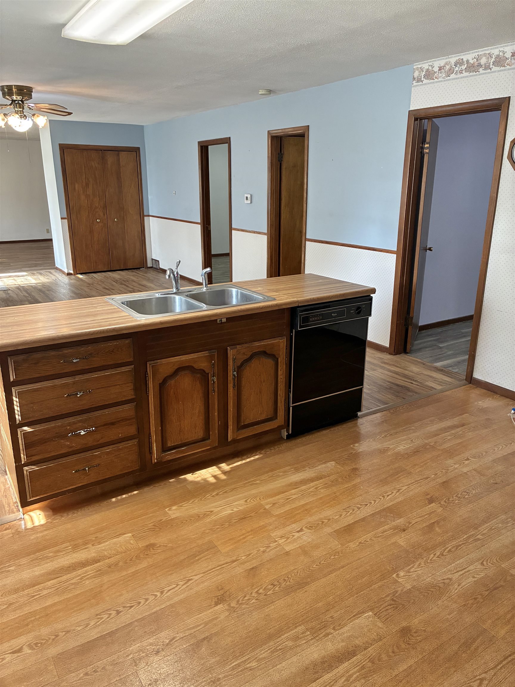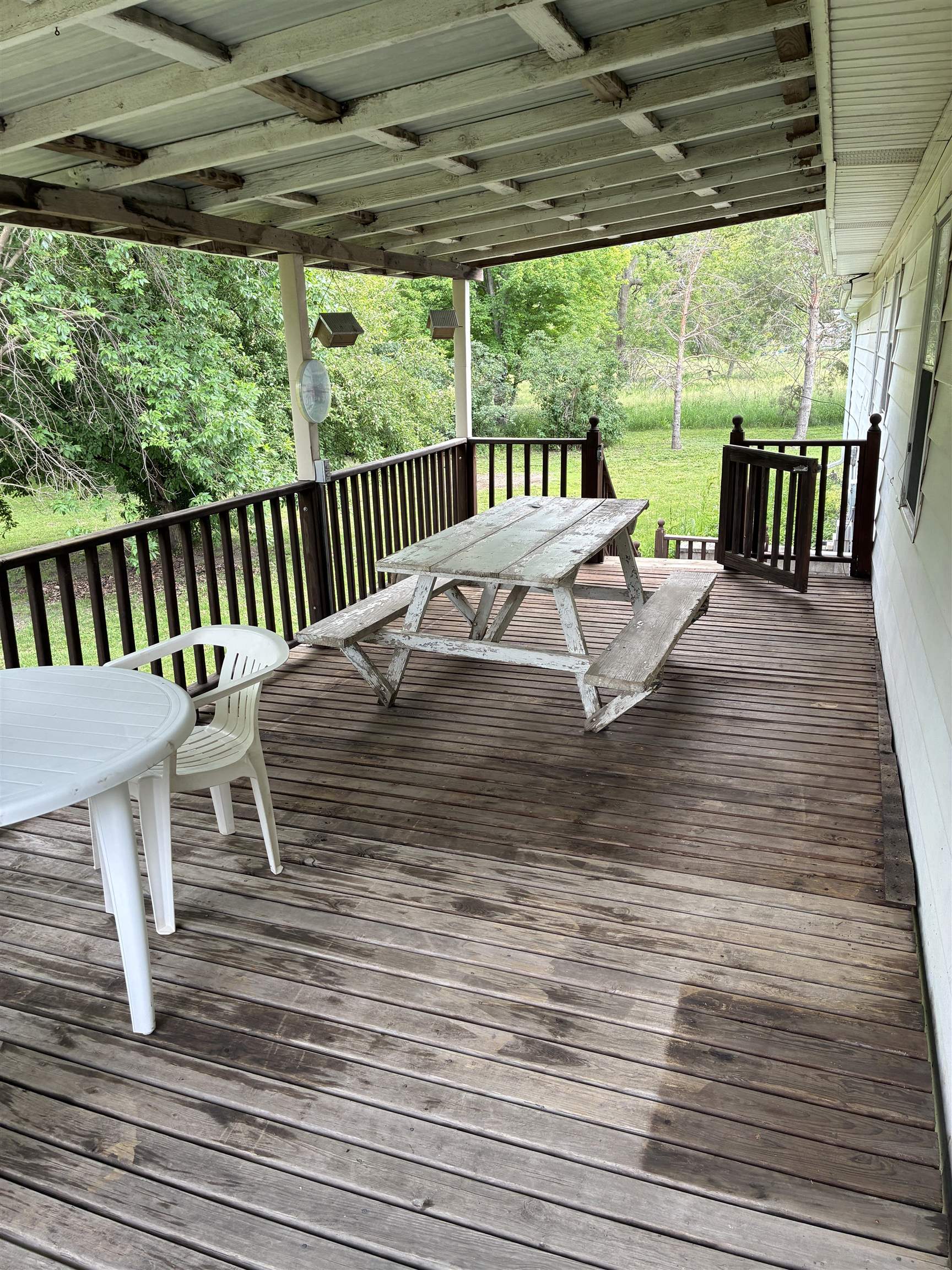 Sit on the covered back deck and view the "park like" back yard. It is beautiful! This two bed one bath home has a lot to offer. With newer flooring on the main floor and updated Onyx shower. Basement has had all the drywall taken out due to water damage 30 years ago. The owner just didn't need the space. Currently set up for a family room, bathroom and two bedrooms if you put in egress windows. Come take a look and enjoy this wonderful property!