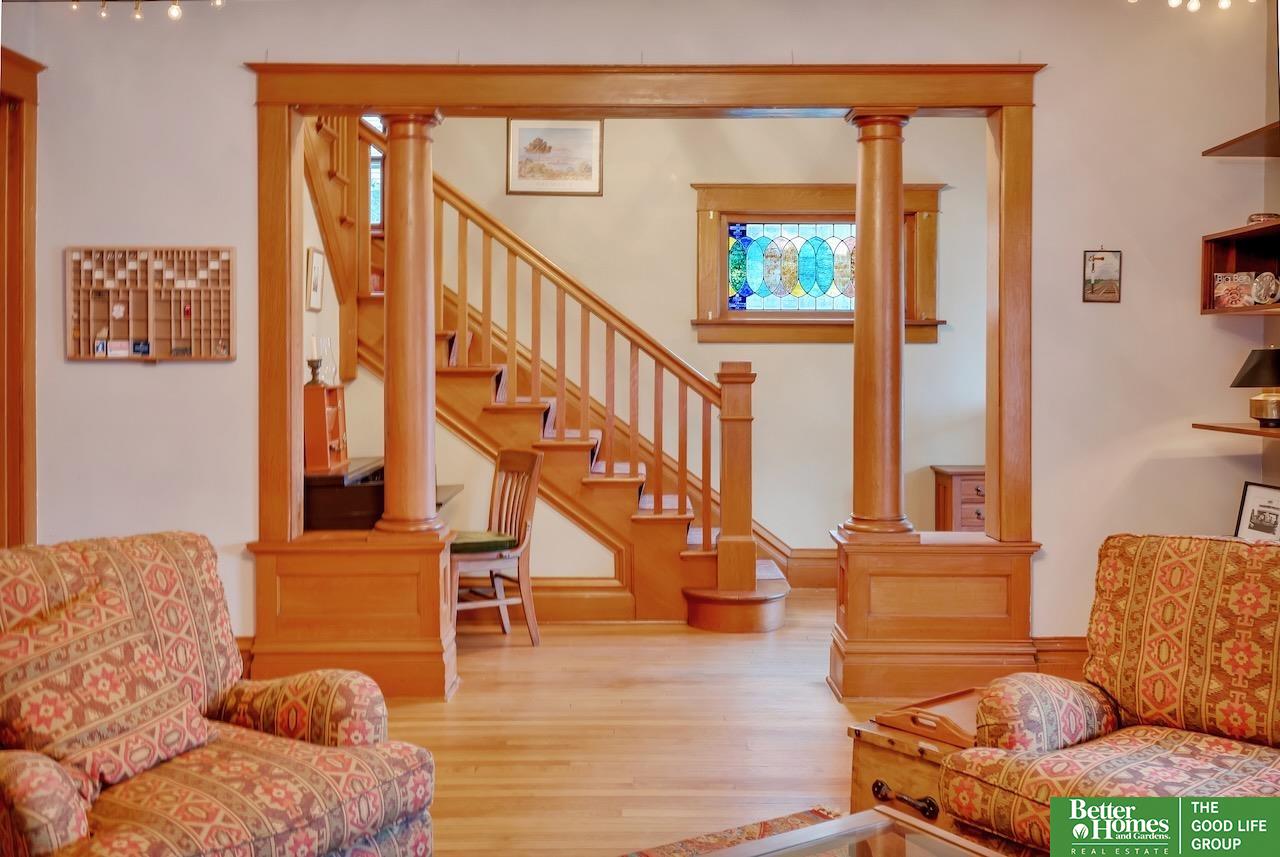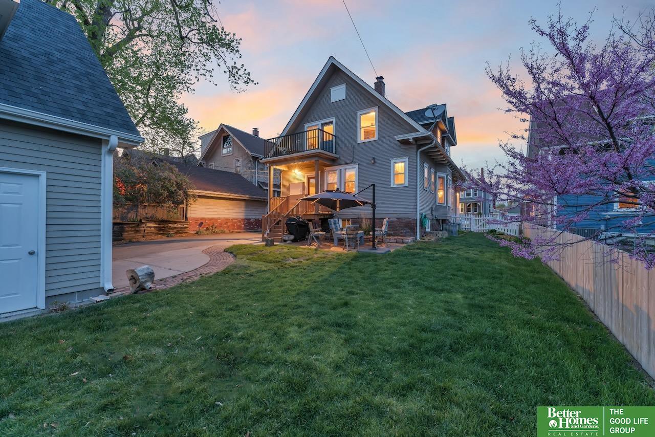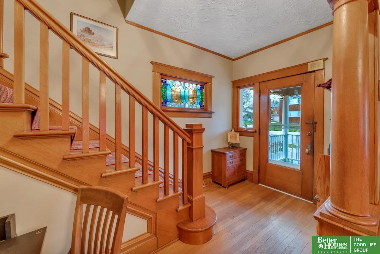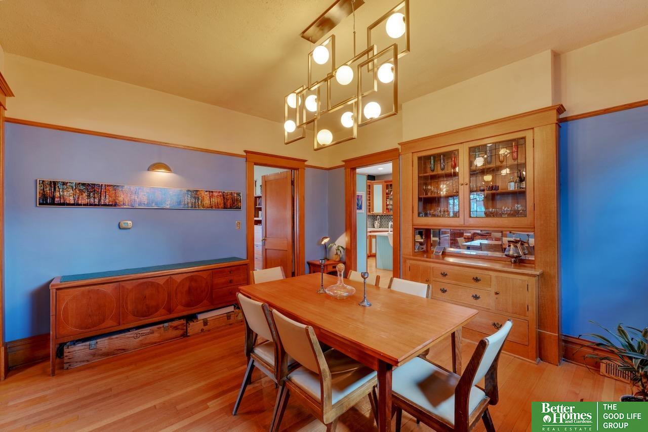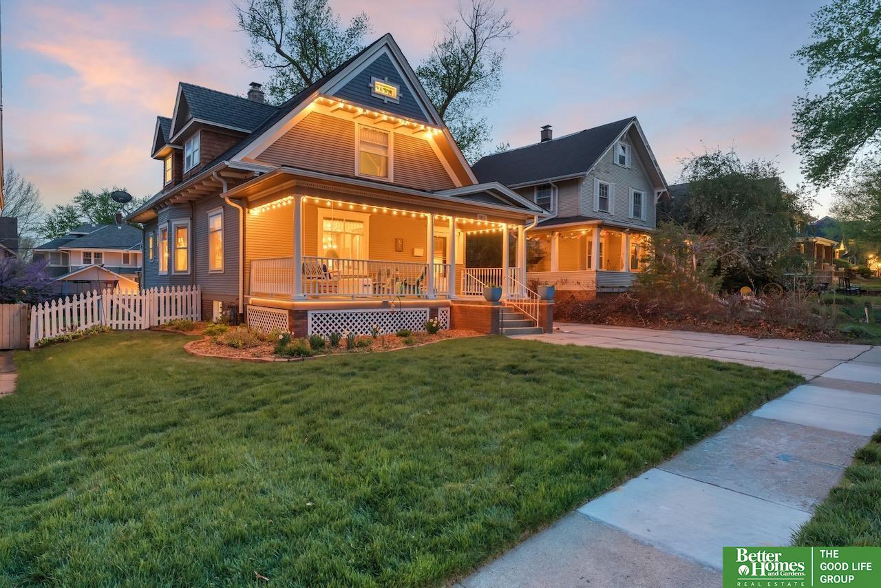This quintessential Dundee home features original wood floors, architectural pillars, and stunning leaded glass windows. The main level offers a spacious living area, a flexible bedroom or office, 2nd laundry, and an open kitchen with quartz counters and a center island perfect for entertaining. Gleaming hardwood floors and unpainted original woodwork highlight the beauty of the home. Upstairs, you’ll find 4 bedrooms and a private balcony overlooking the secluded backyard. The 2-car garage adds even more potential with a light-filled second story just waiting to be finished into a studio or workspace. Topped off with a classic front porch perfect for enjoying summer nights.3 minutes to UNMC. Near all the best things Midtown has to offer: Downtown Dundee, FilmStreams, Memorial & Elmwood Parks, public & private schools, UNO, Blackstone, Midtown Crossing & Creighton Univ. Inspection from 2024 available.