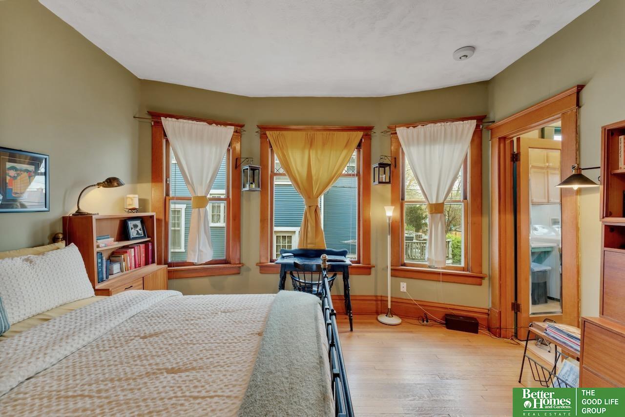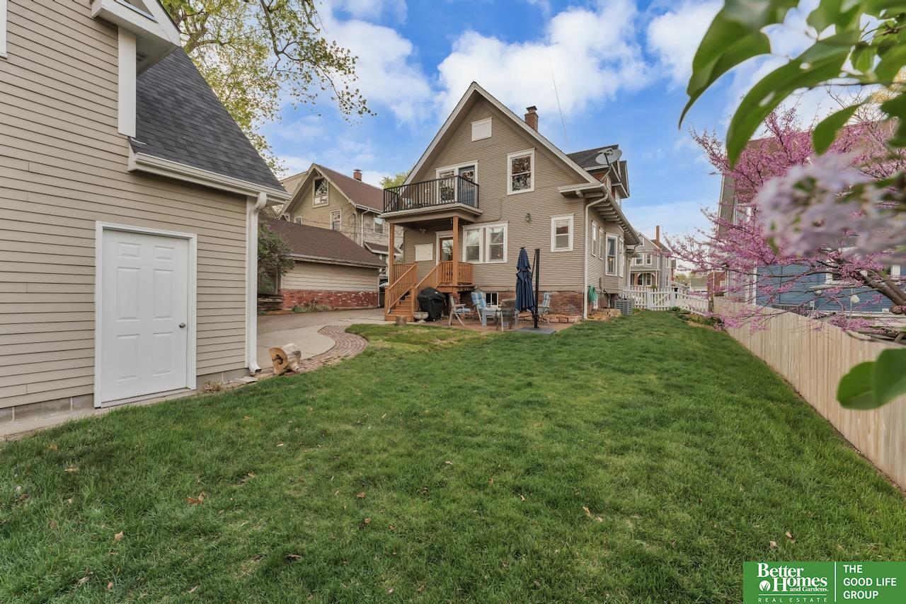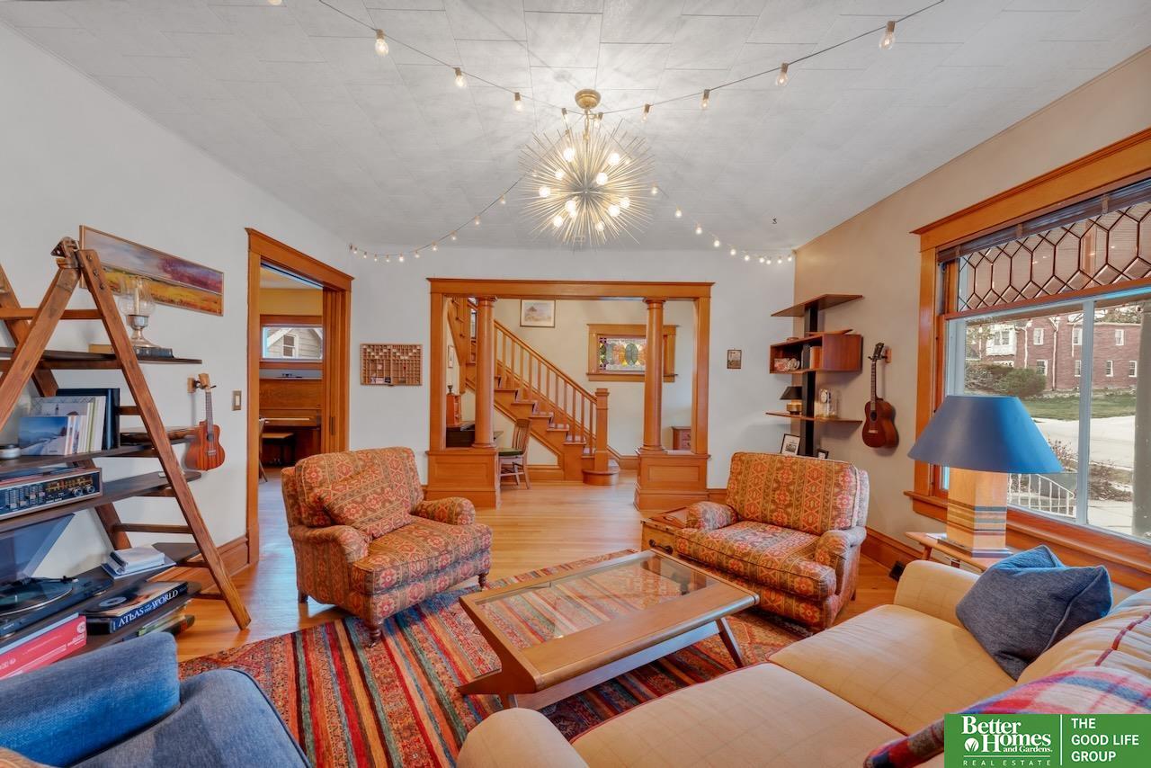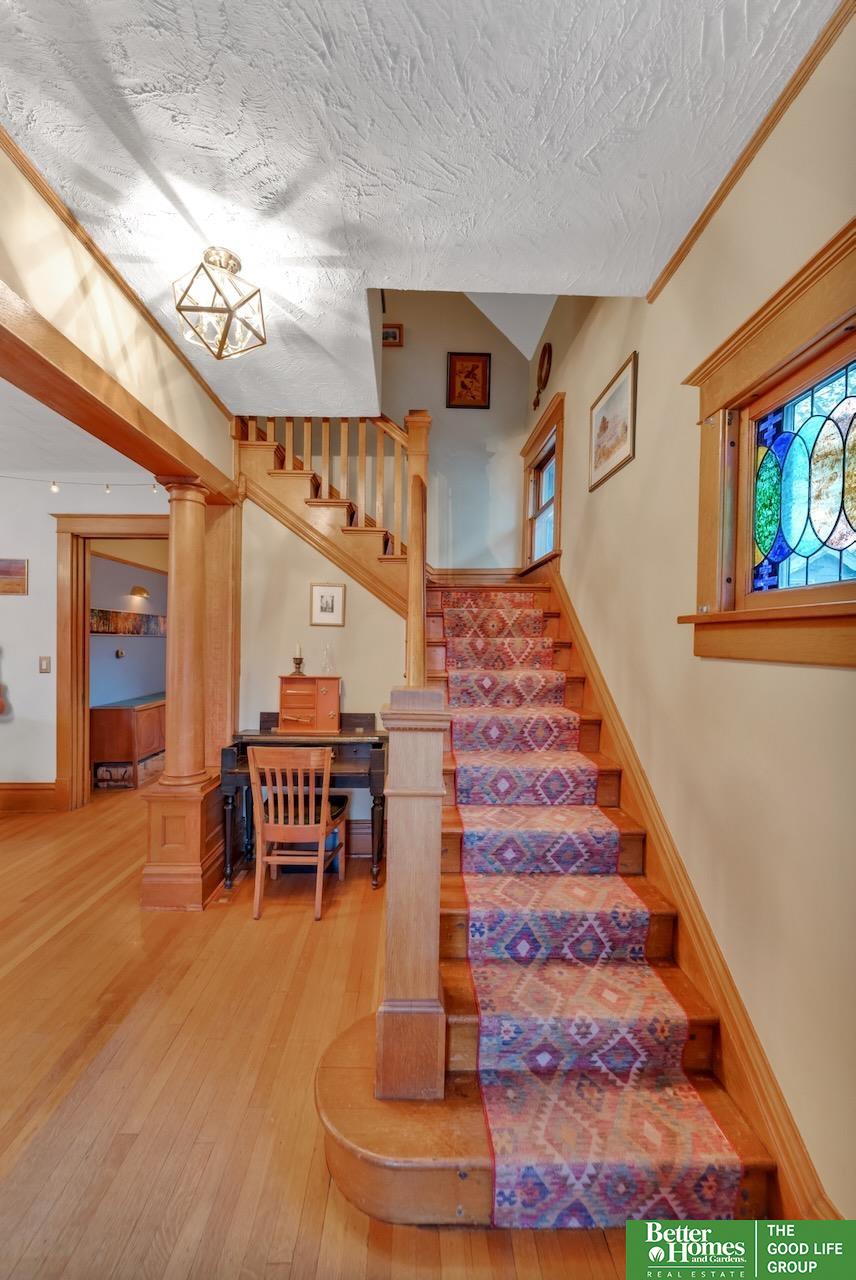 This quintessential Dundee home features original wood floors, architectural pillars, and stunning leaded glass windows. The main level offers a spacious living area, a flexible bedroom or office, 2nd laundry, and an open kitchen with quartz counters and a center island perfect for entertaining. Gleaming hardwood floors and unpainted original woodwork highlight the beauty of the home. Upstairs, you’ll find 4 bedrooms and a private balcony overlooking the secluded backyard. The 2-car garage adds even more potential with a light-filled second story just waiting to be finished into a studio or workspace. Topped off with a classic front porch perfect for enjoying summer nights.3 minutes to UNMC. Near all the best things Midtown has to offer: Downtown Dundee, FilmStreams, Memorial & Elmwood Parks, public & private schools, UNO, Blackstone, Midtown Crossing & Creighton Univ. Inspection from 2024 available.
