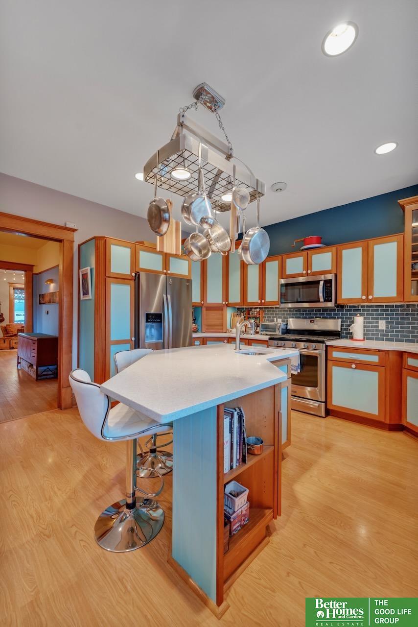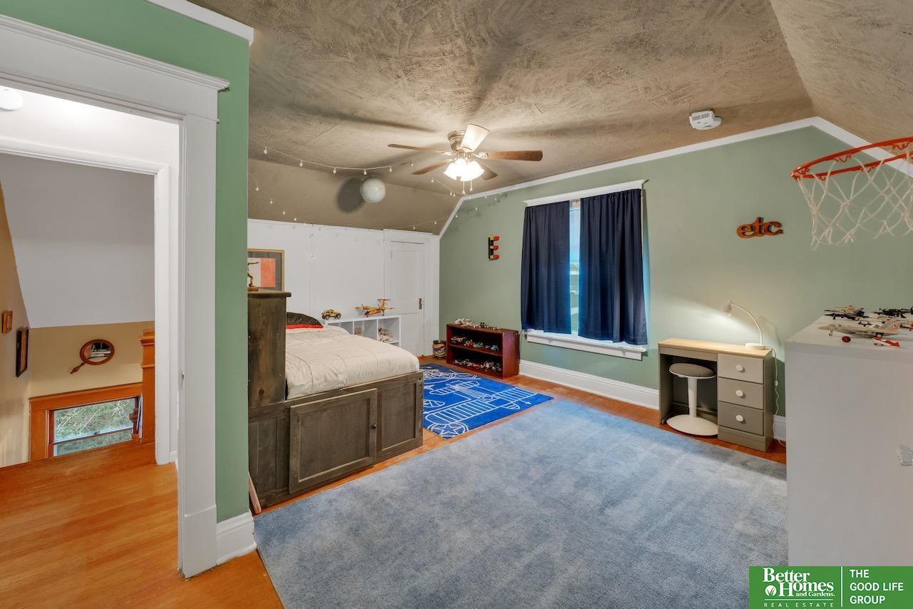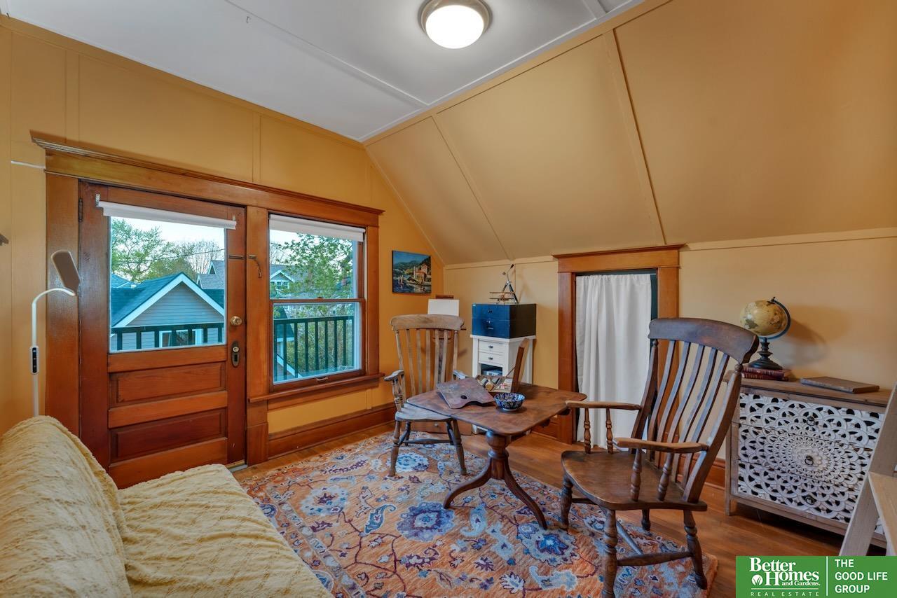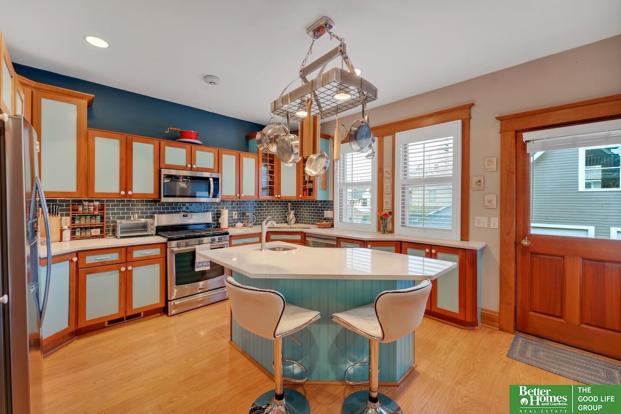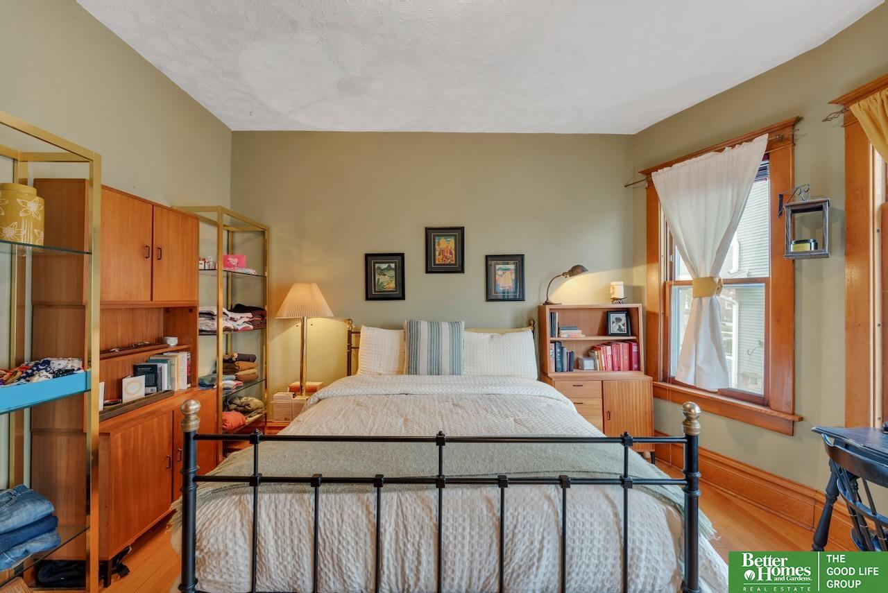 This quintessential Dundee home features original wood floors, architectural pillars, and stunning leaded glass windows. The main level offers a spacious living area, a flexible bedroom or office, 2nd laundry, and an open kitchen with quartz counters and a center island perfect for entertaining. Gleaming hardwood floors and unpainted original woodwork highlight the beauty of the home. Upstairs, you’ll find 4 bedrooms and a private balcony overlooking the secluded backyard. The 2-car garage adds even more potential with a light-filled second story just waiting to be finished into a studio or workspace. Topped off with a classic front porch perfect for enjoying summer nights.3 minutes to UNMC. Near all the best things Midtown has to offer: Downtown Dundee, FilmStreams, Memorial & Elmwood Parks, public & private schools, UNO, Blackstone, Midtown Crossing & Creighton Univ. Inspection from 2024 available.