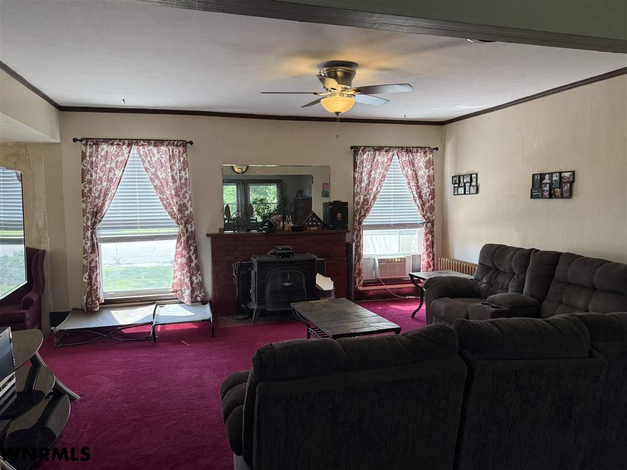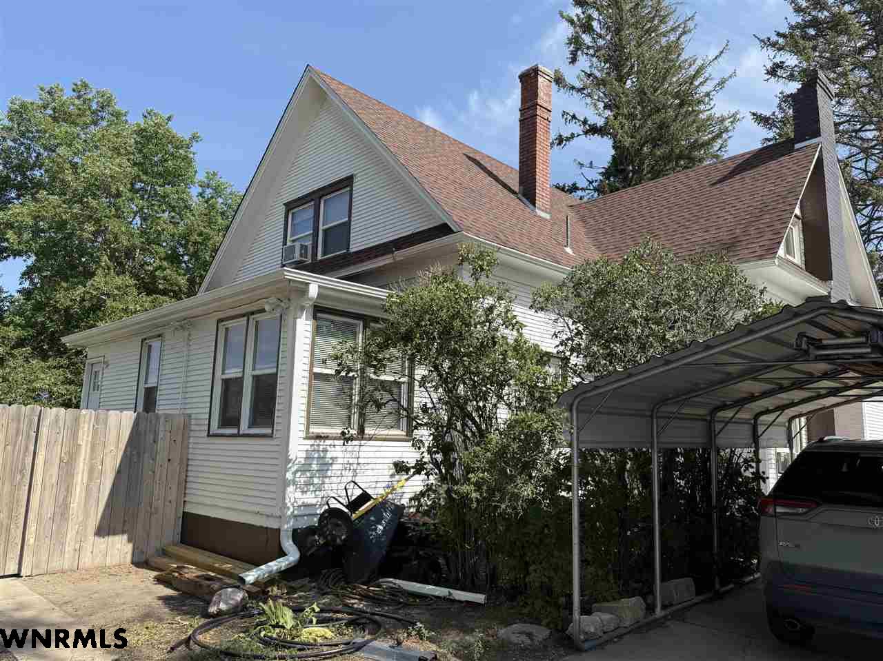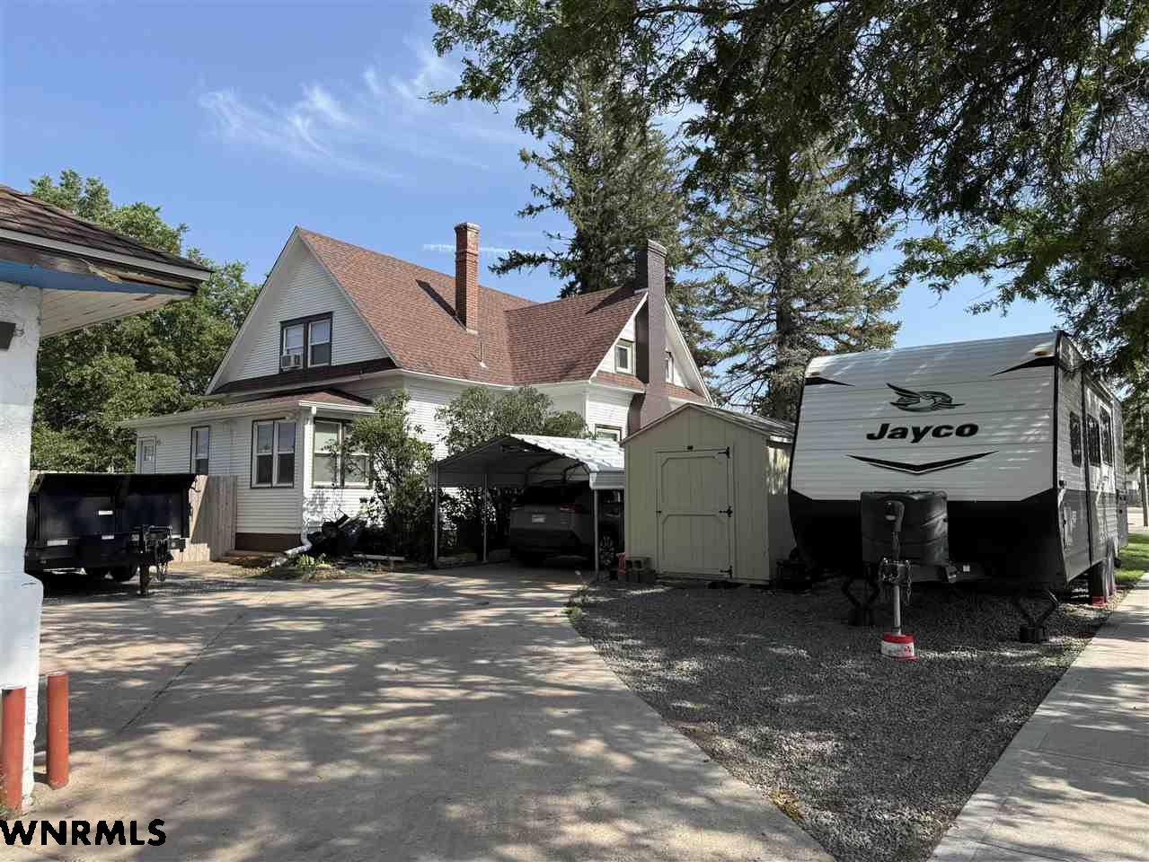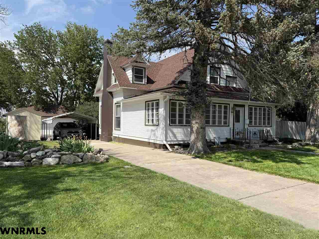 Beautiful 1 1/2 story home on a huge corner lot! The 1,368 sq ft main level brings you into a sunny enclosed front porch that stretches the width of the house. Past the porch sits the foyer with original hardwood floors, a great wood staircase, and a small office area. The spacious living room/ dining room combo gives plenty of space to entertain and relax. New wood plank flooring in the dining room, wood-burning stove in the living room, double hung vinyl windows, and more. A secondary office or study sits right off of the living room with great natural light. The huge kitchen sits right off of the dining room and includes all appliances. The sellers are in the process of stripping and staining the cupboard doors, which will have a beautiful dark stain finish. The breakfast nook and laundry area sit off the kitchen. An updated 1/2 bath with a wood feature wall and a mudroom complete the main floor. Upstairs, the 849 sq ft second level holds 2 large bedrooms and a 3rd smaller bedroom with a huge closet. A full bath with lots of storage rests in the hallway. The 740 sq ft basement has been all remodeled into a fantastic primary suite. Huge bedroom with an egress window, large walk-in closet with a possible safe room attached, and a beautiful bathroom with double sinks, walk-in shower with double shower heads, and nice storage space has been all completely updated with new electrical, plumbing, drywall, flooring, etc. The house features hot water radiant heat and a new water heater. Outside, the fenced backyard gives tons of possibilities for you to enjoy. A cherry tree sits in the corner. Outside the fence you’ll find a 2 car detached tandem garage with a 220, gas heaters, and a wood-burning stove, a storage shed, carport, pull-through driveway, and space to park an RV.