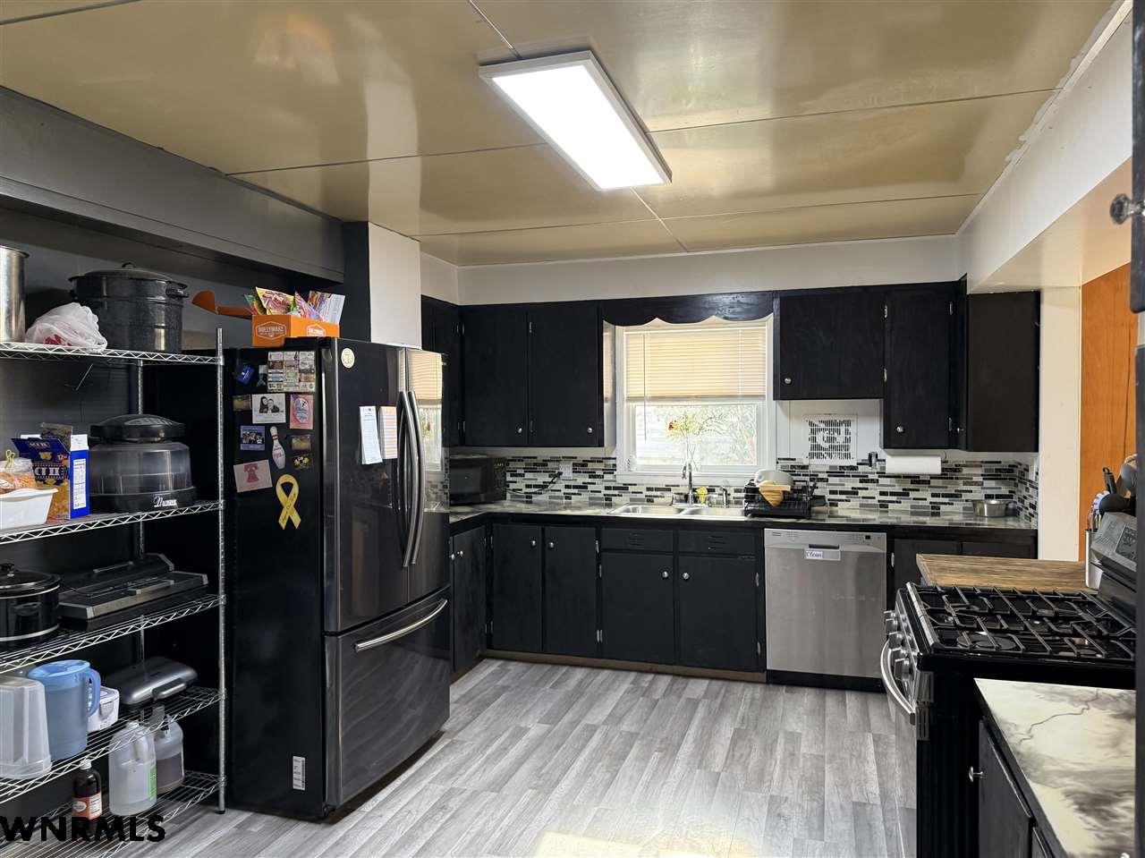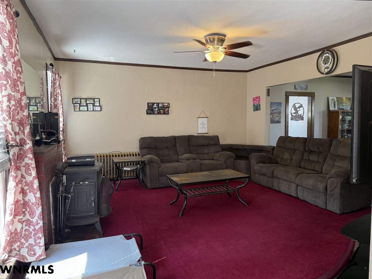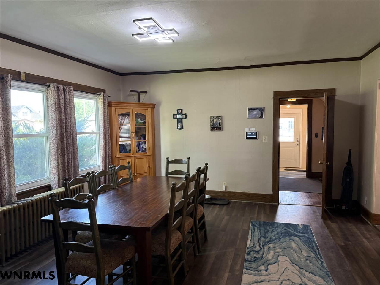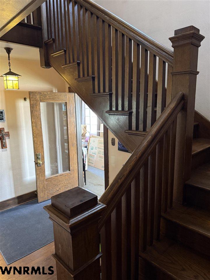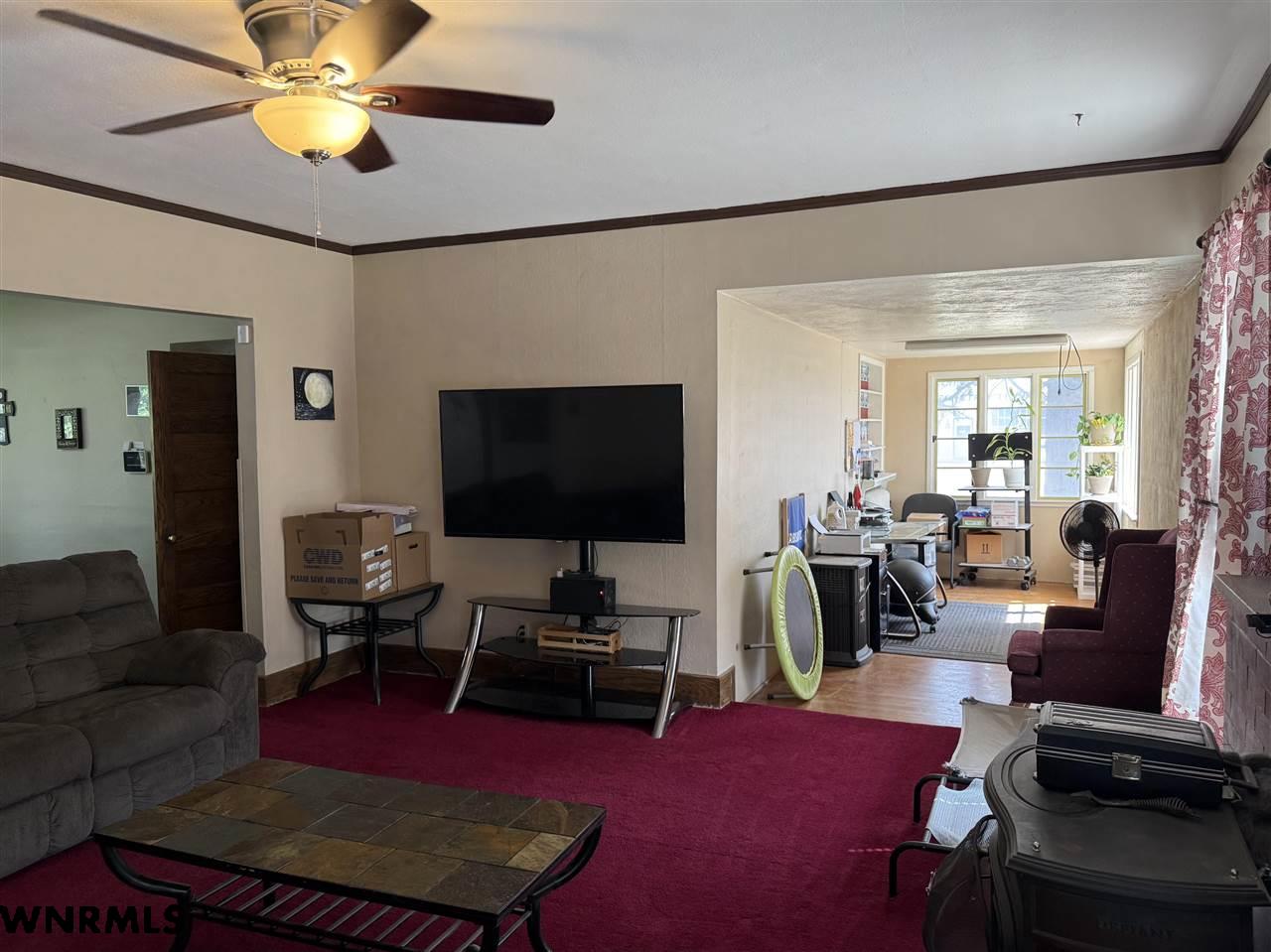 Beautiful 1 1/2 story home on a huge corner lot! The 1,368 sq ft main level brings you into a sunny enclosed front porch that stretches the width of the house. Past the porch sits the foyer with original hardwood floors, a great wood staircase, and a small office area. The spacious living room/ dining room combo gives plenty of space to entertain and relax. New wood plank flooring in the dining room, wood-burning stove in the living room, double hung vinyl windows, and more. A secondary office or study sits right off of the living room with great natural light. The huge kitchen sits right off of the dining room and includes all appliances. The sellers are in the process of stripping and staining the cupboard doors, which will have a beautiful dark stain finish. The breakfast nook and laundry area sit off the kitchen. An updated 1/2 bath with a wood feature wall and a mudroom complete the main floor. Upstairs, the 849 sq ft second level holds 2 large bedrooms and a 3rd smaller bedroom with a huge closet. A full bath with lots of storage rests in the hallway. The 740 sq ft basement has been all remodeled into a fantastic primary suite. Huge bedroom with an egress window, large walk-in closet with a possible safe room attached, and a beautiful bathroom with double sinks, walk-in shower with double shower heads, and nice storage space has been all completely updated with new electrical, plumbing, drywall, flooring, etc. The house features hot water radiant heat and a new water heater. Outside, the fenced backyard gives tons of possibilities for you to enjoy. A cherry tree sits in the corner. Outside the fence you’ll find a 2 car detached tandem garage with a 220, gas heaters, and a wood-burning stove, a storage shed, carport, pull-through driveway, and space to park an RV.