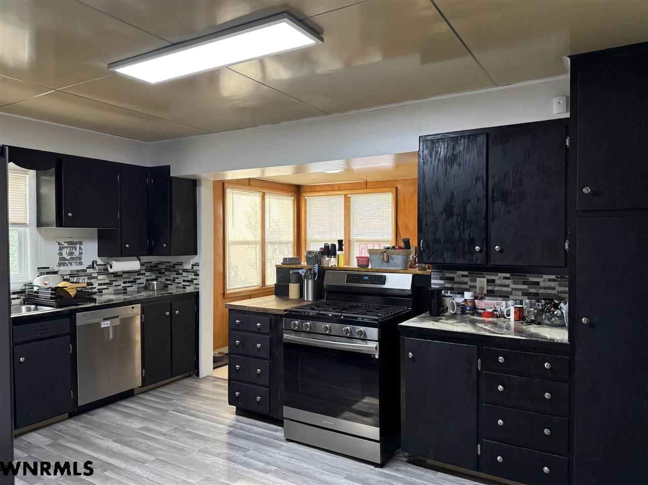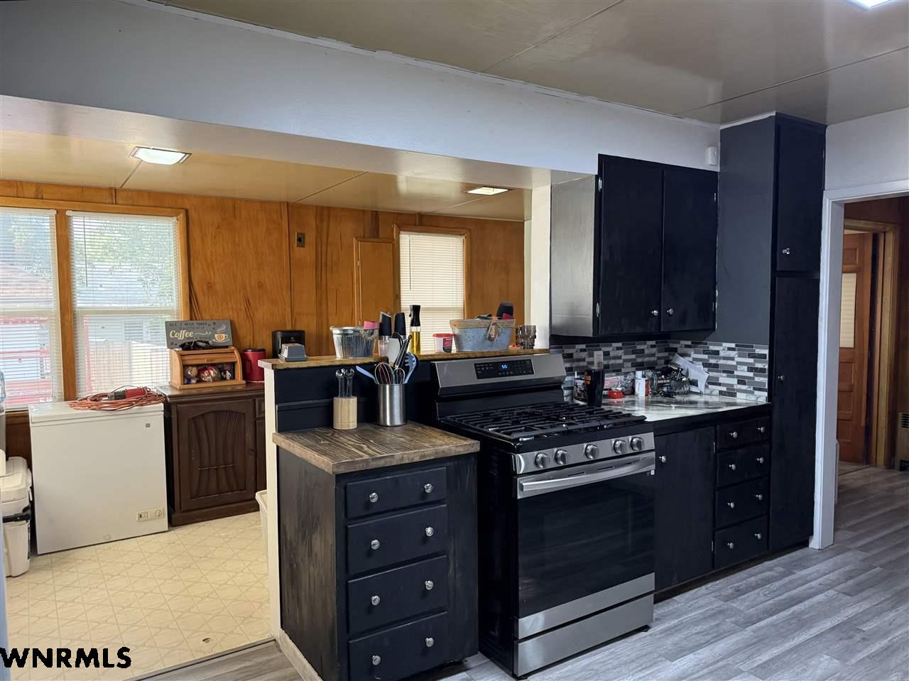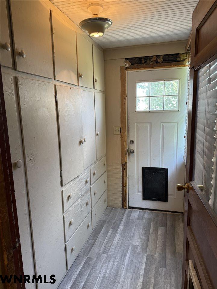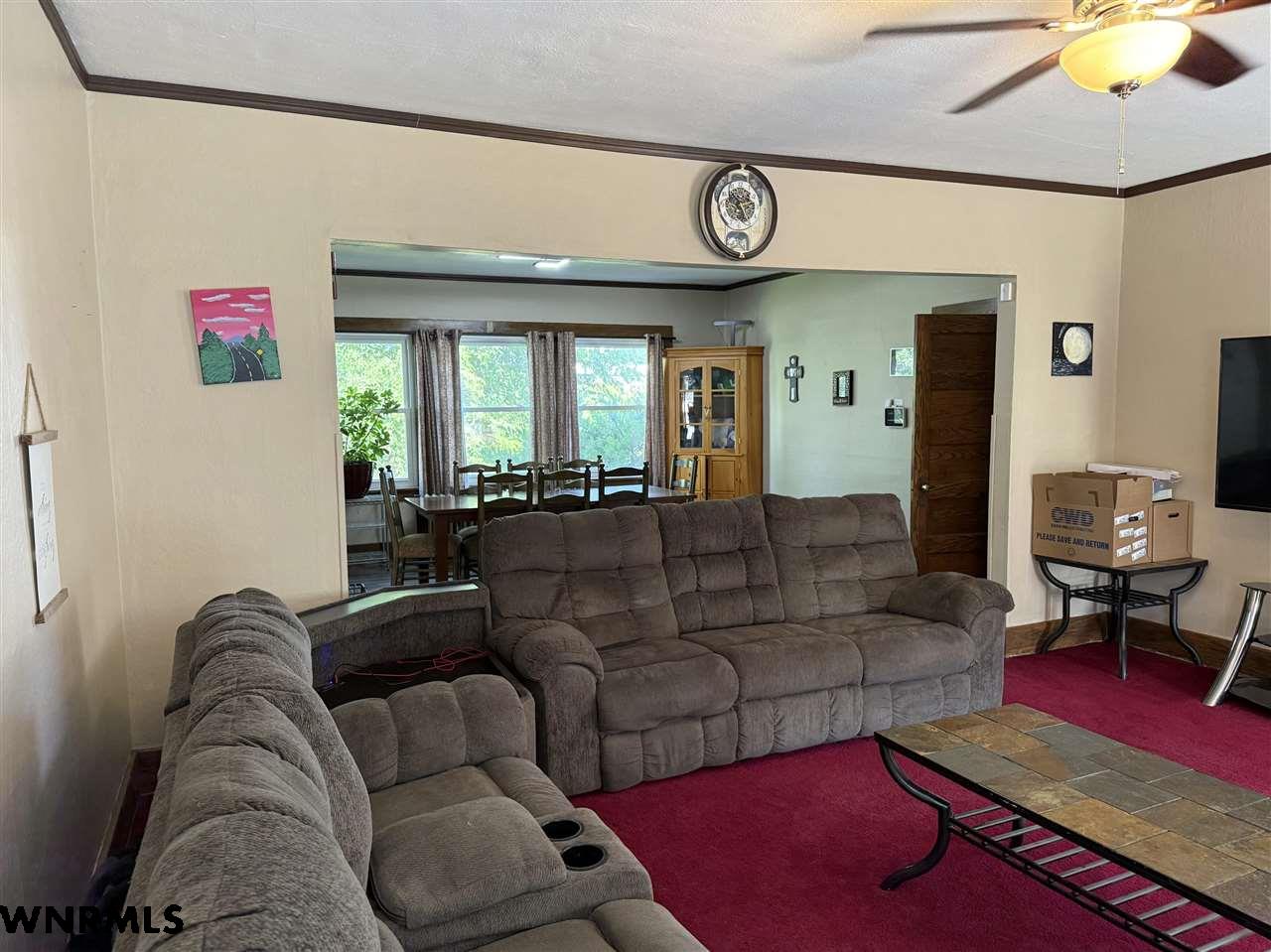 Beautiful 1 1/2 story home on a huge corner lot! The 1,368 sq ft main level brings you into a sunny enclosed front porch that stretches the width of the house. Past the porch sits the foyer with original hardwood floors, a great wood staircase, and a small office area. The spacious living room/ dining room combo gives plenty of space to entertain and relax. New wood plank flooring in the dining room, wood-burning stove in the living room, double hung vinyl windows, and more. A secondary office or study sits right off of the living room with great natural light. The huge kitchen sits right off of the dining room and includes all appliances. The sellers are in the process of stripping and staining the cupboard doors, which will have a beautiful dark stain finish. The breakfast nook and laundry area sit off the kitchen. An updated 1/2 bath with a wood feature wall and a mudroom complete the main floor. Upstairs, the 849 sq ft second level holds 2 large bedrooms and a 3rd smaller bedroom with a huge closet. A full bath with lots of storage rests in the hallway. The 740 sq ft basement has been all remodeled into a fantastic primary suite. Huge bedroom with an egress window, large walk-in closet with a possible safe room attached, and a beautiful bathroom with double sinks, walk-in shower with double shower heads, and nice storage space has been all completely updated with new electrical, plumbing, drywall, flooring, etc. The house features hot water radiant heat and a new water heater. Outside, the fenced backyard gives tons of possibilities for you to enjoy. A cherry tree sits in the corner. Outside the fence you’ll find a 2 car detached tandem garage with a 220, gas heaters, and a wood-burning stove, a storage shed, carport, pull-through driveway, and space to park an RV.