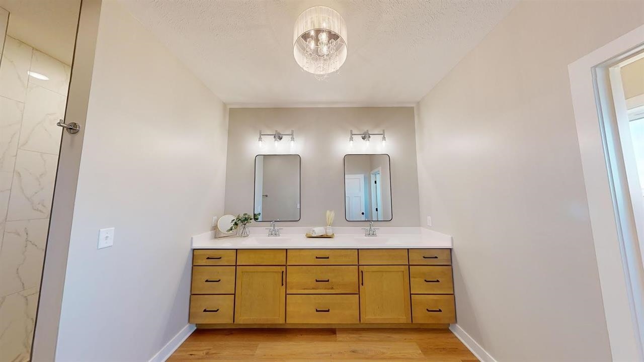 This stunning modern ranch-style home features 5 bedrooms, 3 bathrooms, and a beautifully finished basement., offering nearly 3,880 sq ft of thoughtfully designed living space. As you step inside, you'll be greeted with striking wood ceiling beams, an open living room, a soaring stone-wrapped fireplace. Natural light fills every corner of the home, the spaciously out. The kitchen it's a show stopper, boasting a 10 foot island, hidden walk-in pantry, quartz, countertop, elegant cabinetry, tile backsplash, stainless steel appliances, and a double oven. Just off the generous size dining area, you'll find a convenient office space perfect for working from home. The primary bedroom sweet offers a private retreat with a luxurious en suite, bathroom, featuring double sinks, a tile walk-in shower, and an oversize walk-in closet. The finished basement expands a home even further with a large living area, expansive windows, two spacious bedrooms, a full bathroom, an additional flex space for a gym, media area or extra storage. Outside, enjoy upgraded siding, a covered deck, sprinkler system, and fresh sod. Situated on an oversized lot in a cul-de-sac, this home is ideal location near the hospital and YMCA. Taxes are based on lot only.