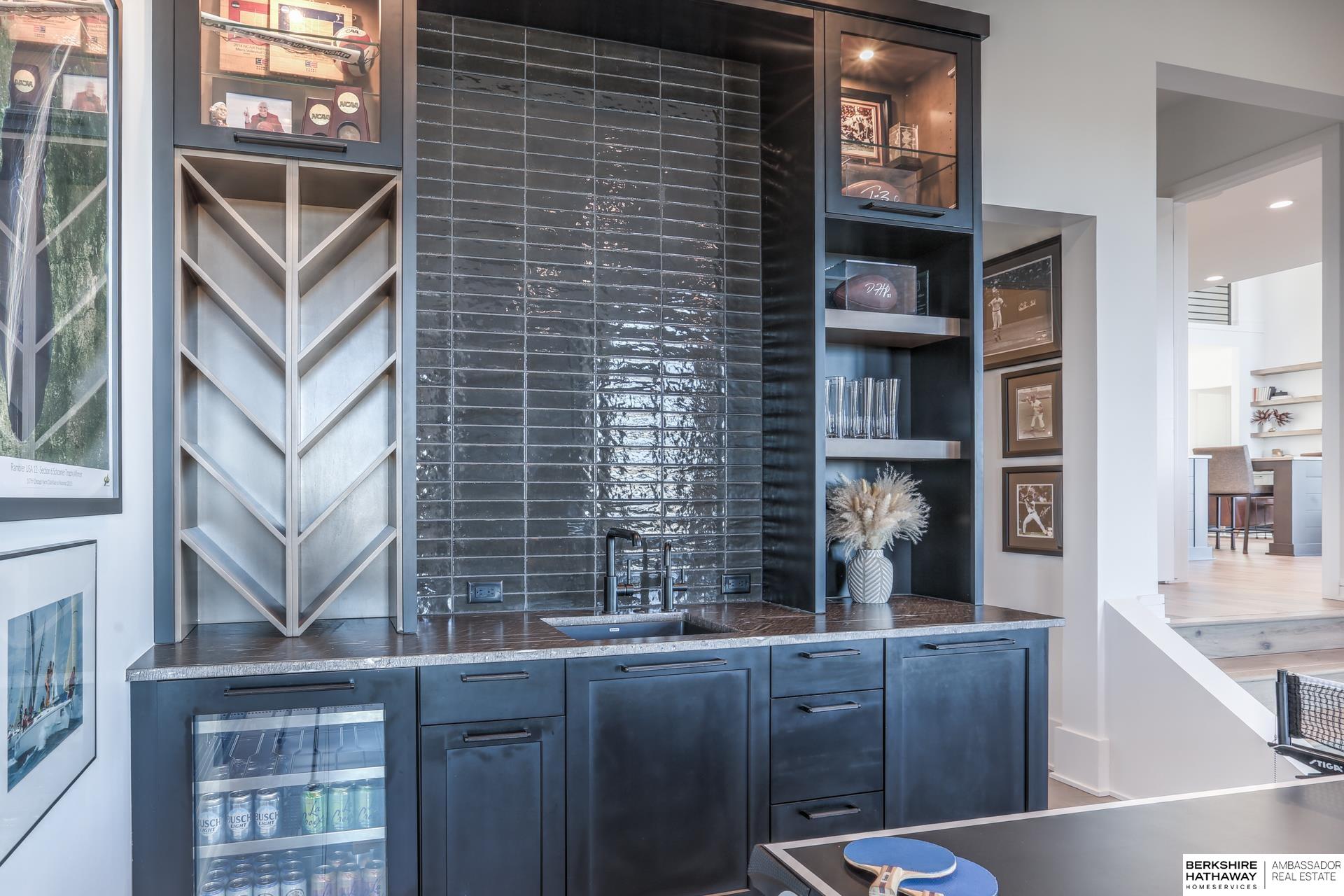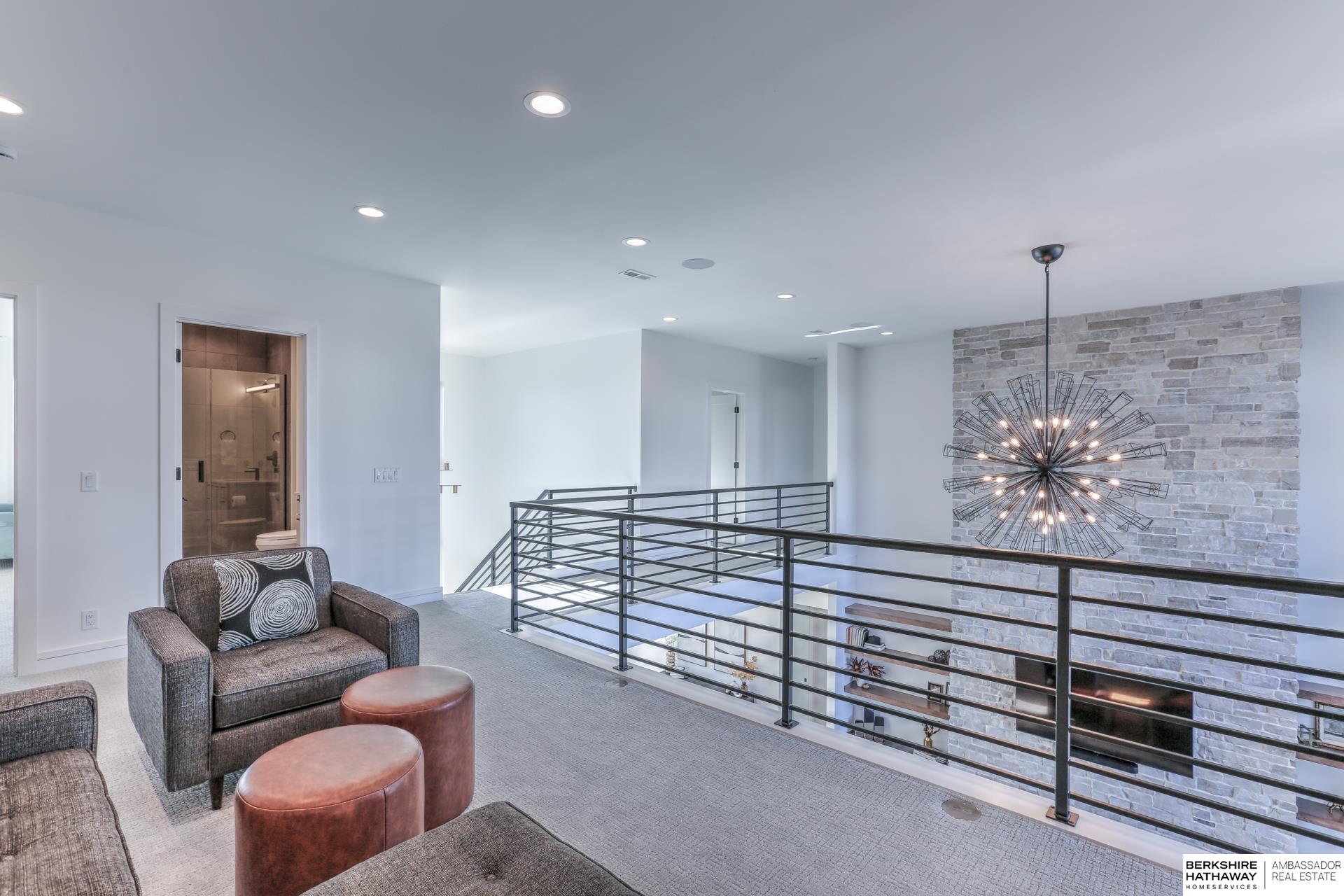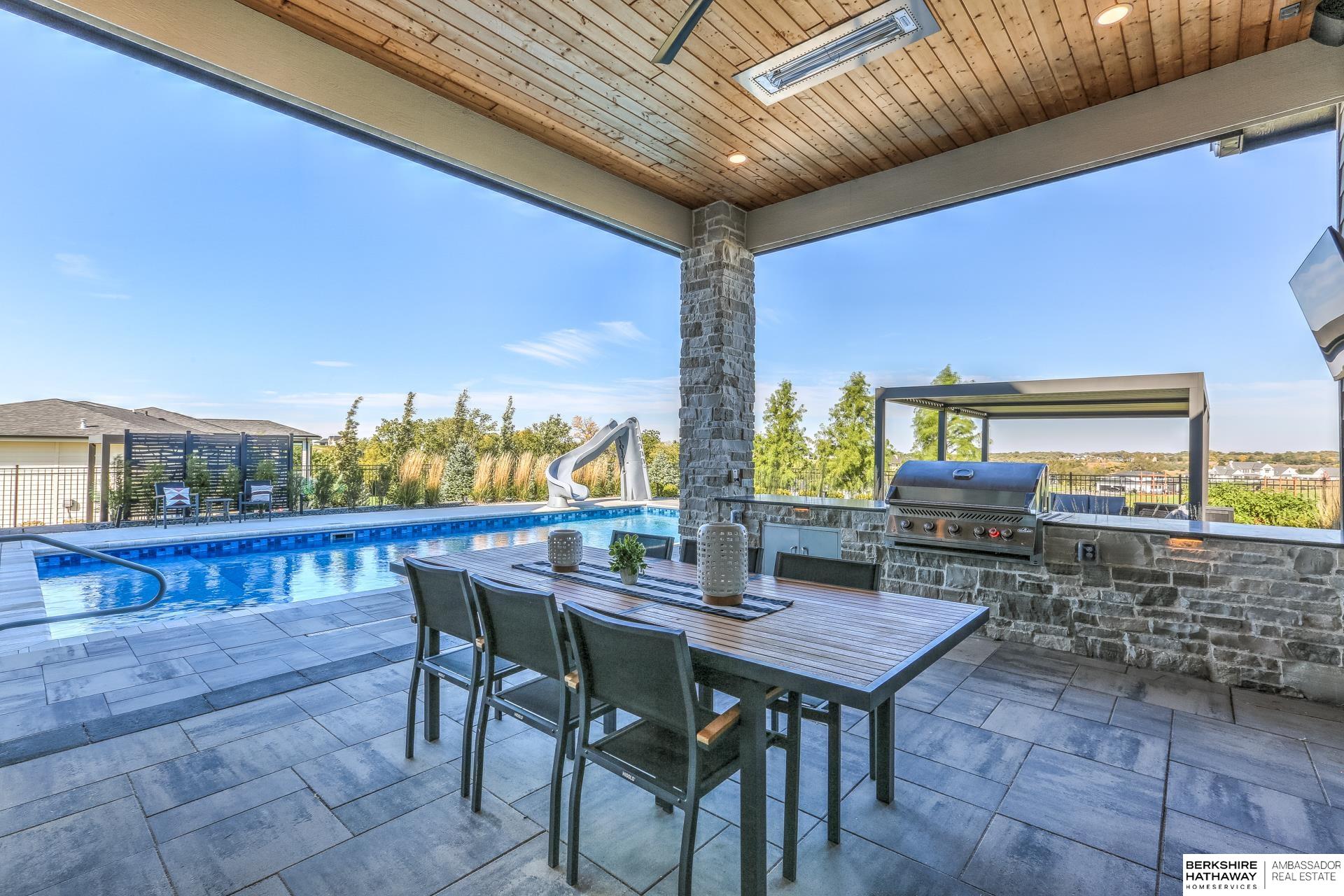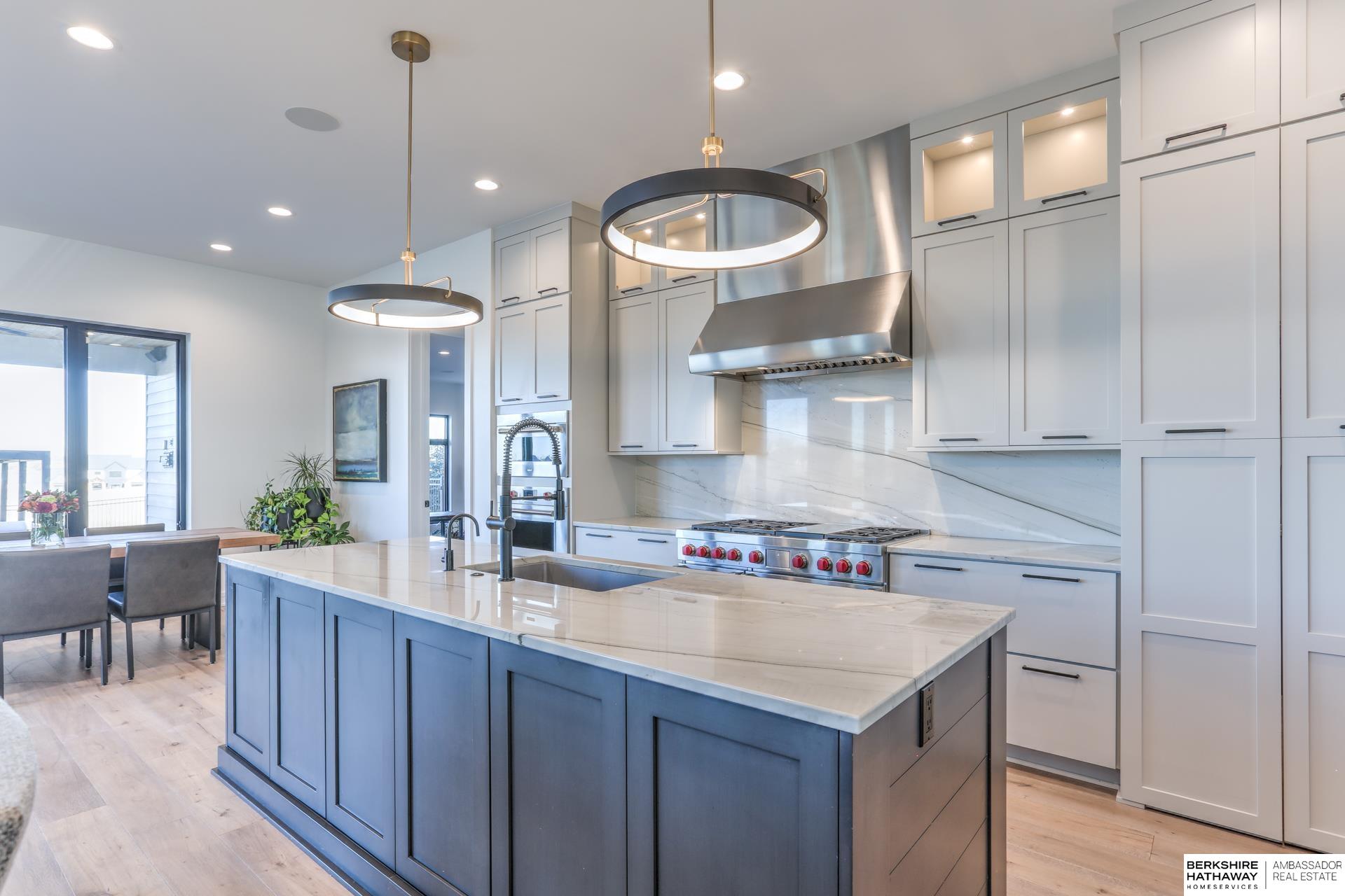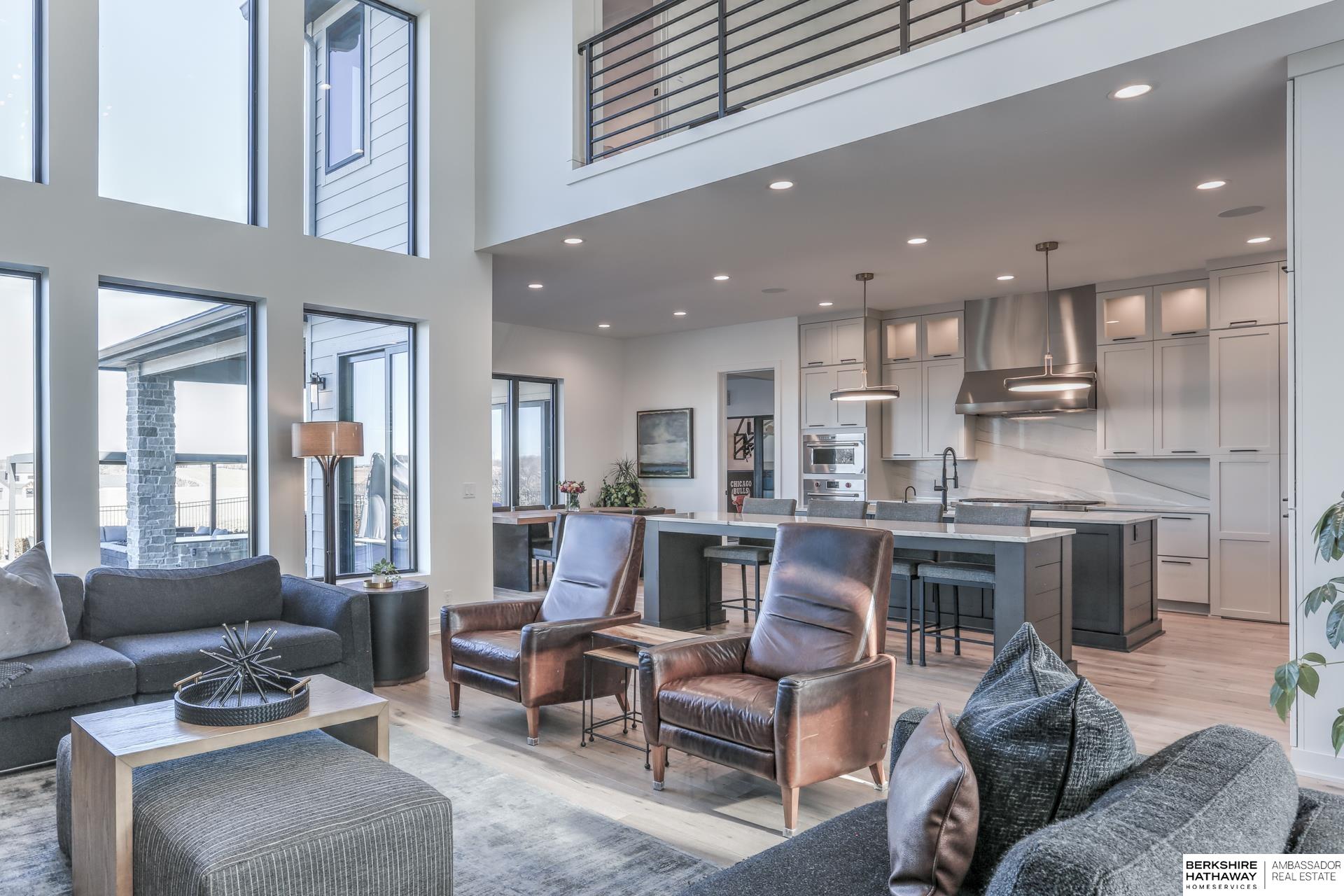 This private estate offers intentional design and luxury living across 1.27 pristine acres in the Elkhorn School District. Panoramic views and walls of windows fill the home w/ natural light, seamlessly connecting refined interiors to the tranquil outdoor setting. Rich wood floors and high-end finishes create an atmosphere of understated luxury throughout the main living spaces. Designed for elevated entertaining, the gourmet kitchen features custom cabinets, professional-grade Wolf & Sub-Zero appliances and thoughtfully designed walk-through pantry. An entertaining lounge w/ wet bar flows into the impressive 30 x 30 indoor sports court for effortless recreation. The primary suite serves as a serene escape w/ balcony, spa-inspired bath and walk-in closet, while secondary beds offer generous space. A true oasis awaits outdoors w/ covered patio, built-in grill and fire pit overlooking the saltwater pool and expansive flat yard. Crafted w/ intention and designed for resort-style living.