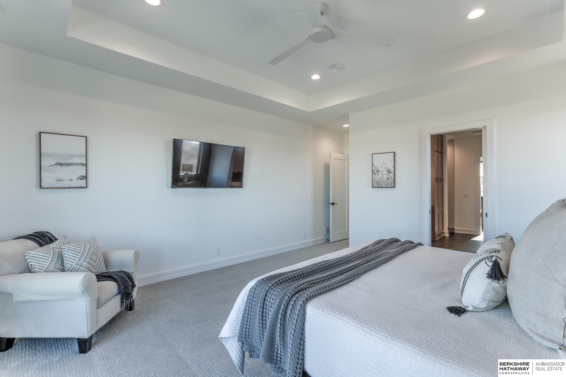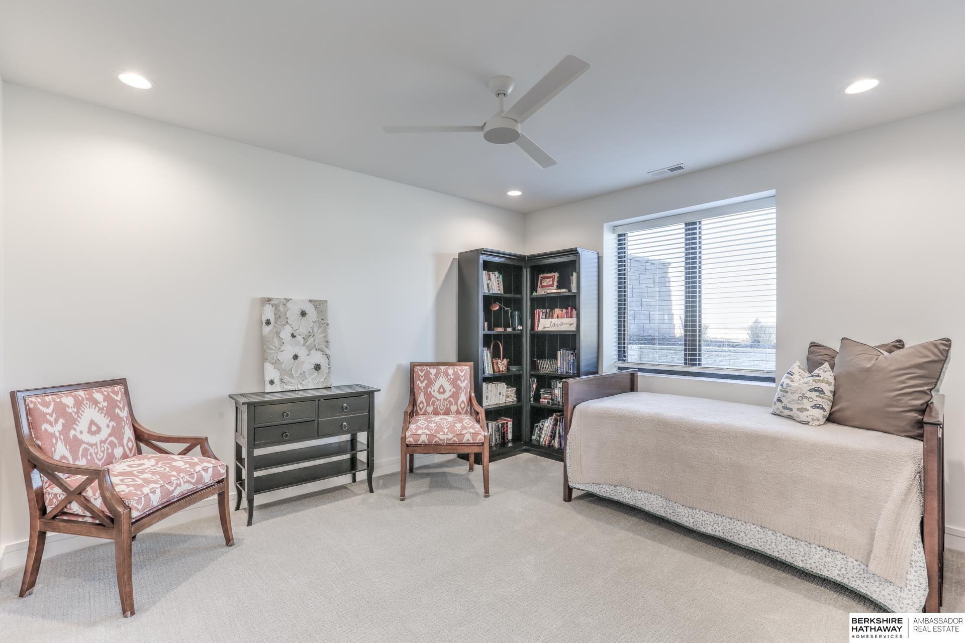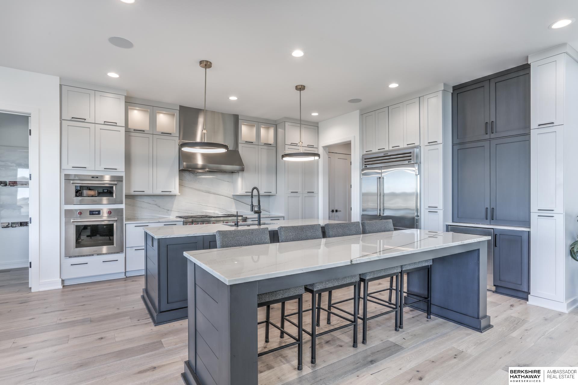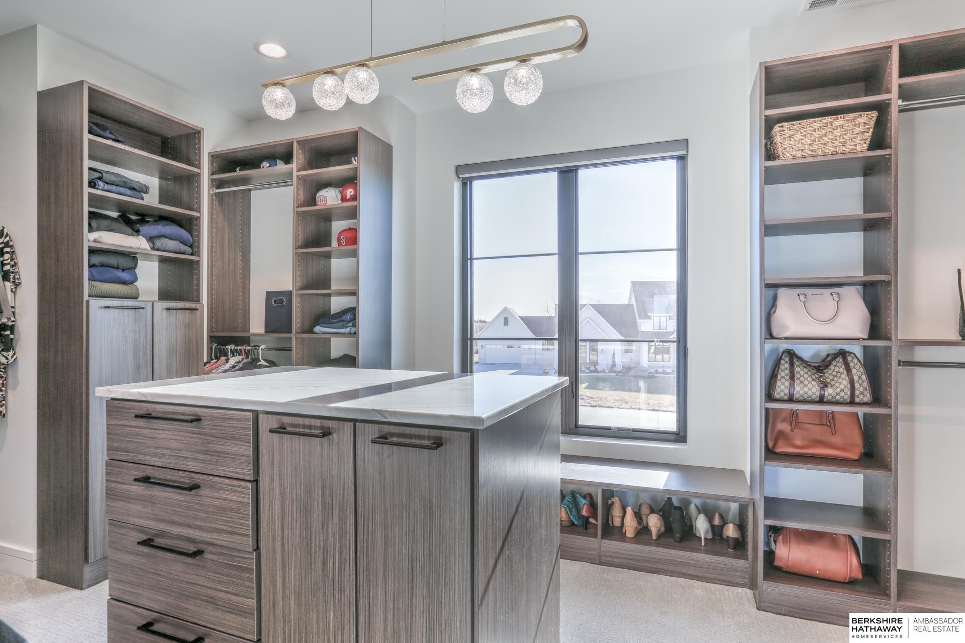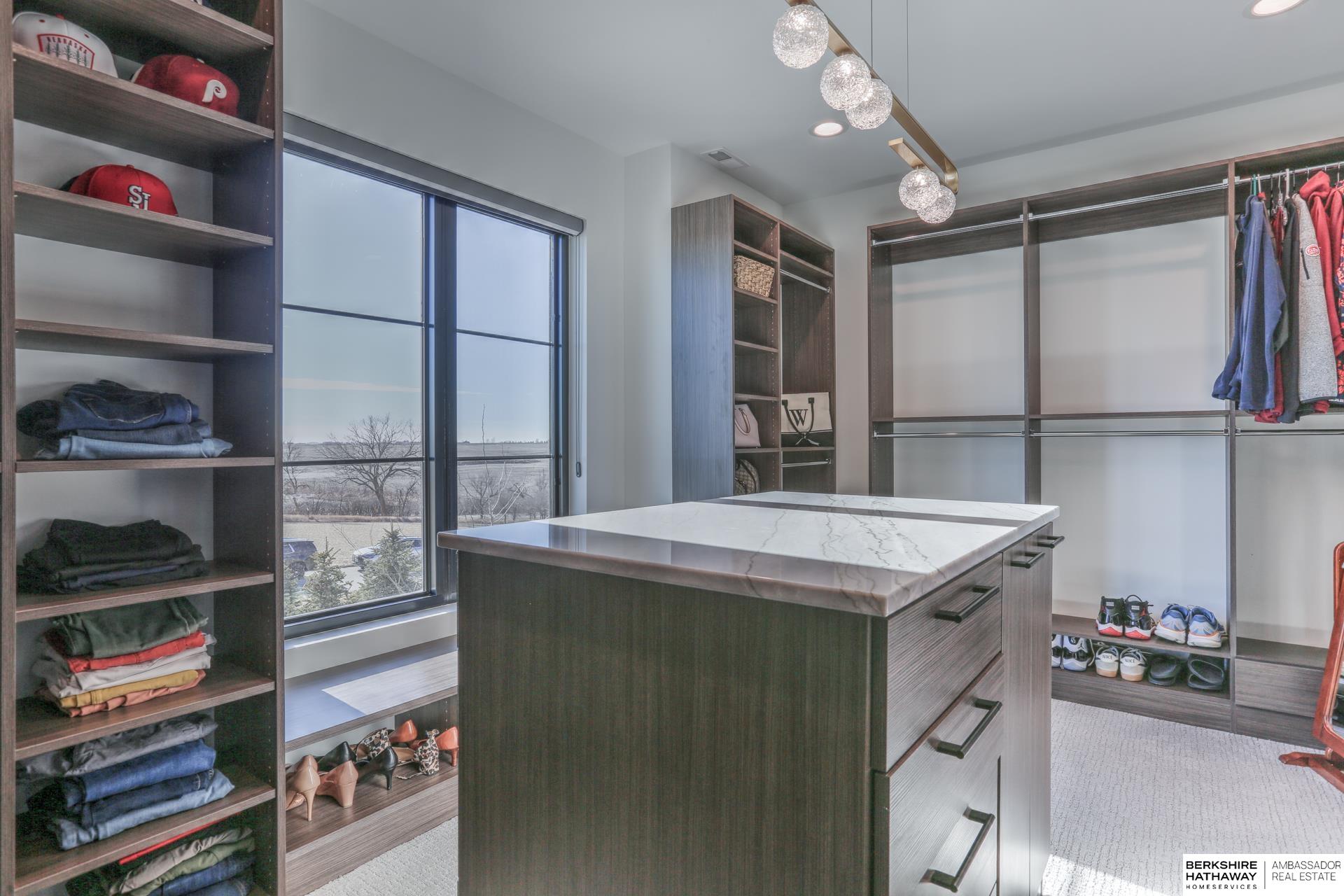 This private estate offers intentional design and luxury living across 1.27 pristine acres in the Elkhorn School District. Panoramic views and walls of windows fill the home w/ natural light, seamlessly connecting refined interiors to the tranquil outdoor setting. Rich wood floors and high-end finishes create an atmosphere of understated luxury throughout the main living spaces. Designed for elevated entertaining, the gourmet kitchen features custom cabinets, professional-grade Wolf & Sub-Zero appliances and thoughtfully designed walk-through pantry. An entertaining lounge w/ wet bar flows into the impressive 30 x 30 indoor sports court for effortless recreation. The primary suite serves as a serene escape w/ balcony, spa-inspired bath and walk-in closet, while secondary beds offer generous space. A true oasis awaits outdoors w/ covered patio, built-in grill and fire pit overlooking the saltwater pool and expansive flat yard. Crafted w/ intention and designed for resort-style living.