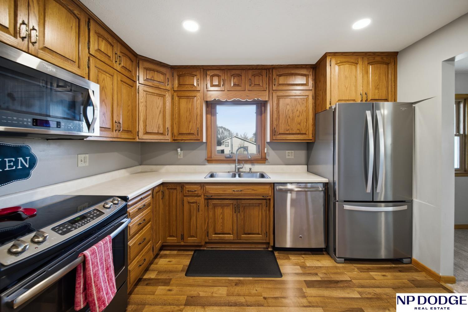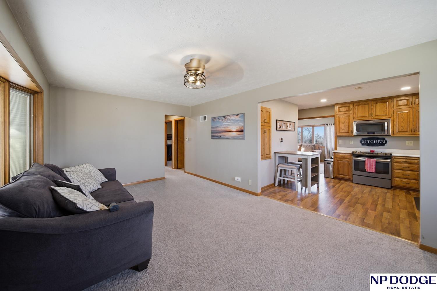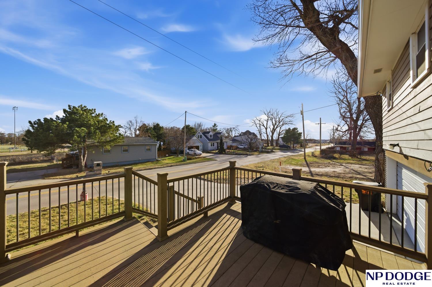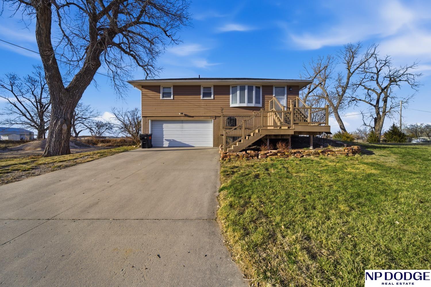 Well-maintained raised ranch in Valley, NE located in the DC West School District and just minutes from Omaha! Situated directly across from the park and ball fields, this home offers a great location with views out the back. The main floor features both a living room and family room, along with a kitchen with stainless steel appliances and three spacious bedrooms. The walkout lower level includes an additional living area and bedroom, offering flexible space for guests or entertaining. Enjoy the low-maintenance composite deck, attached 2-car garage, and long driveway with ample parking. Clean, functional, and move-in ready!