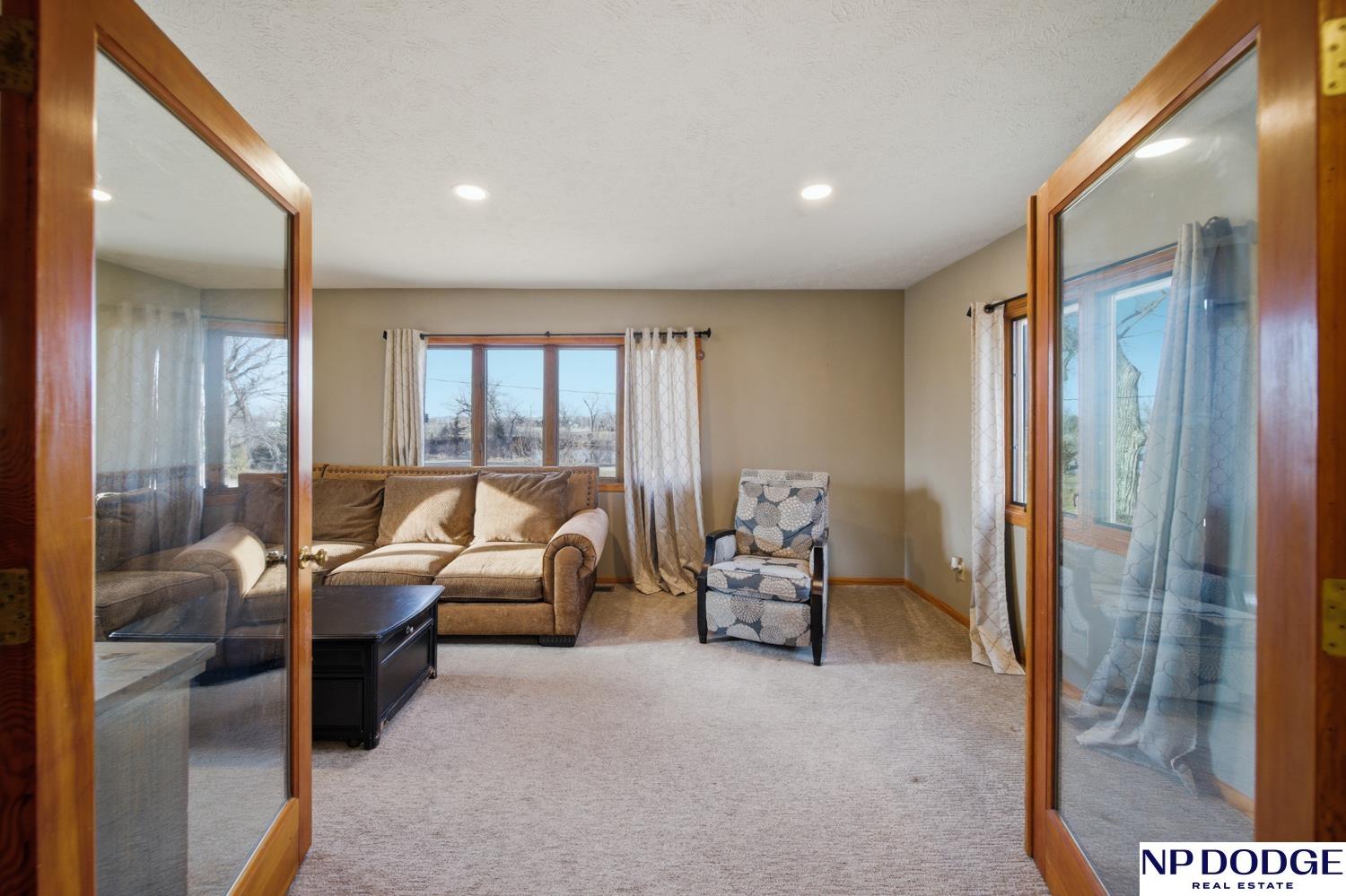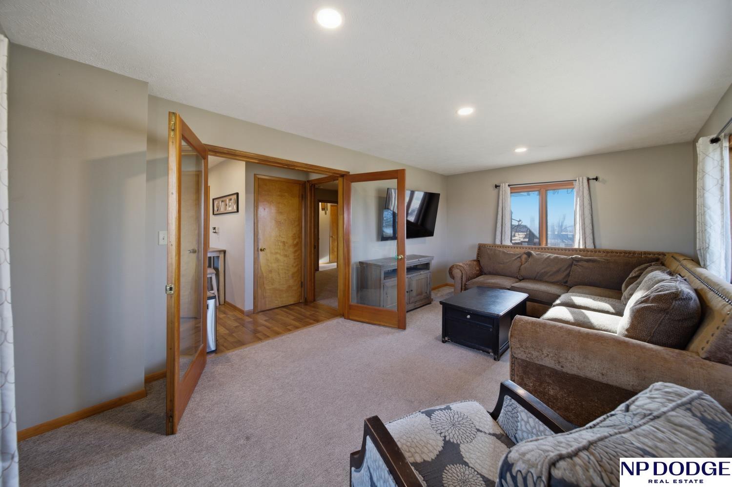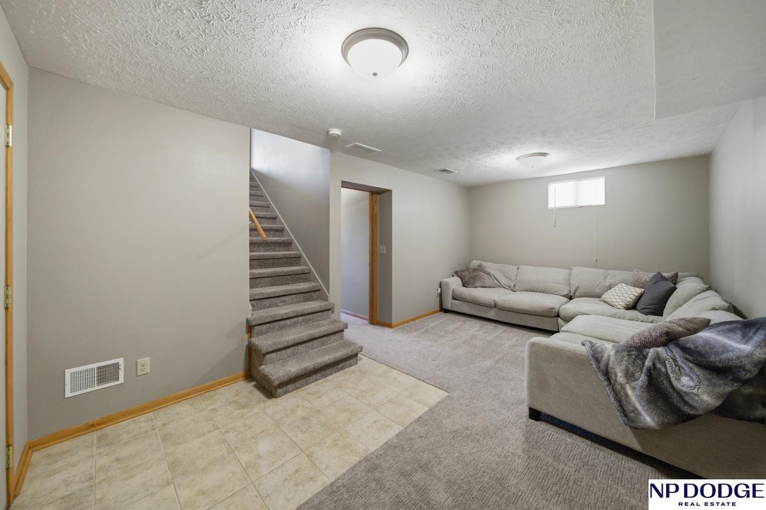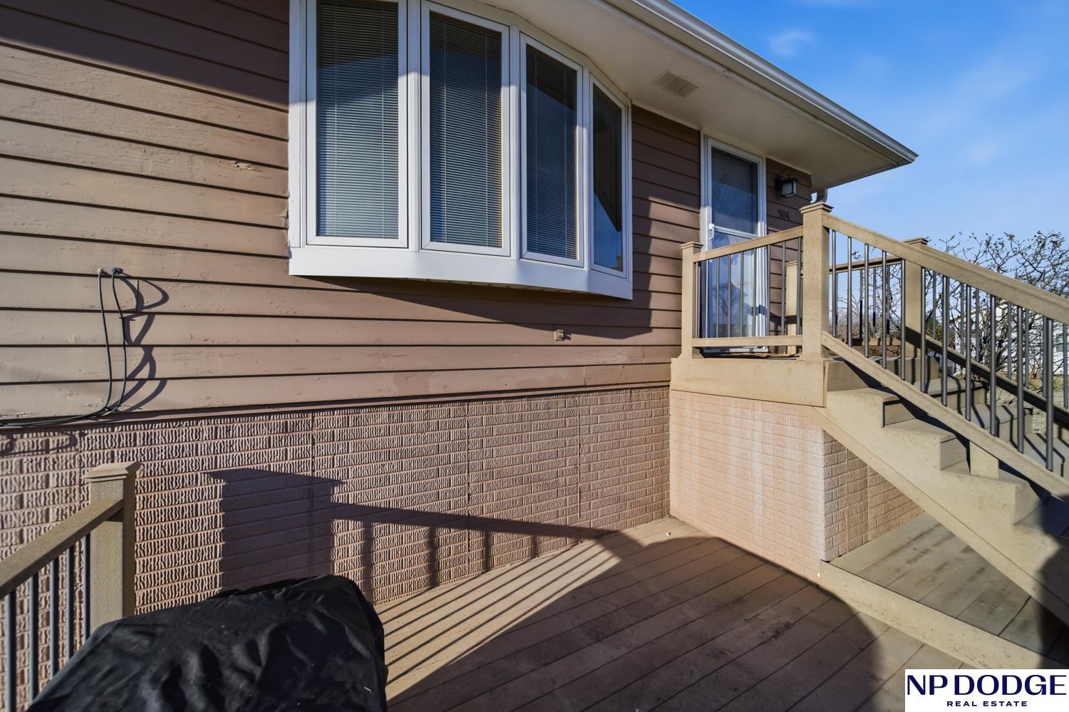 Well-maintained raised ranch in Valley, NE located in the DC West School District and just minutes from Omaha! Situated directly across from the park and ball fields, this home offers a great location with views out the back. The main floor features both a living room and family room, along with a kitchen with stainless steel appliances and three spacious bedrooms. The walkout lower level includes an additional living area and bedroom, offering flexible space for guests or entertaining. Enjoy the low-maintenance composite deck, attached 2-car garage, and long driveway with ample parking. Clean, functional, and move-in ready!