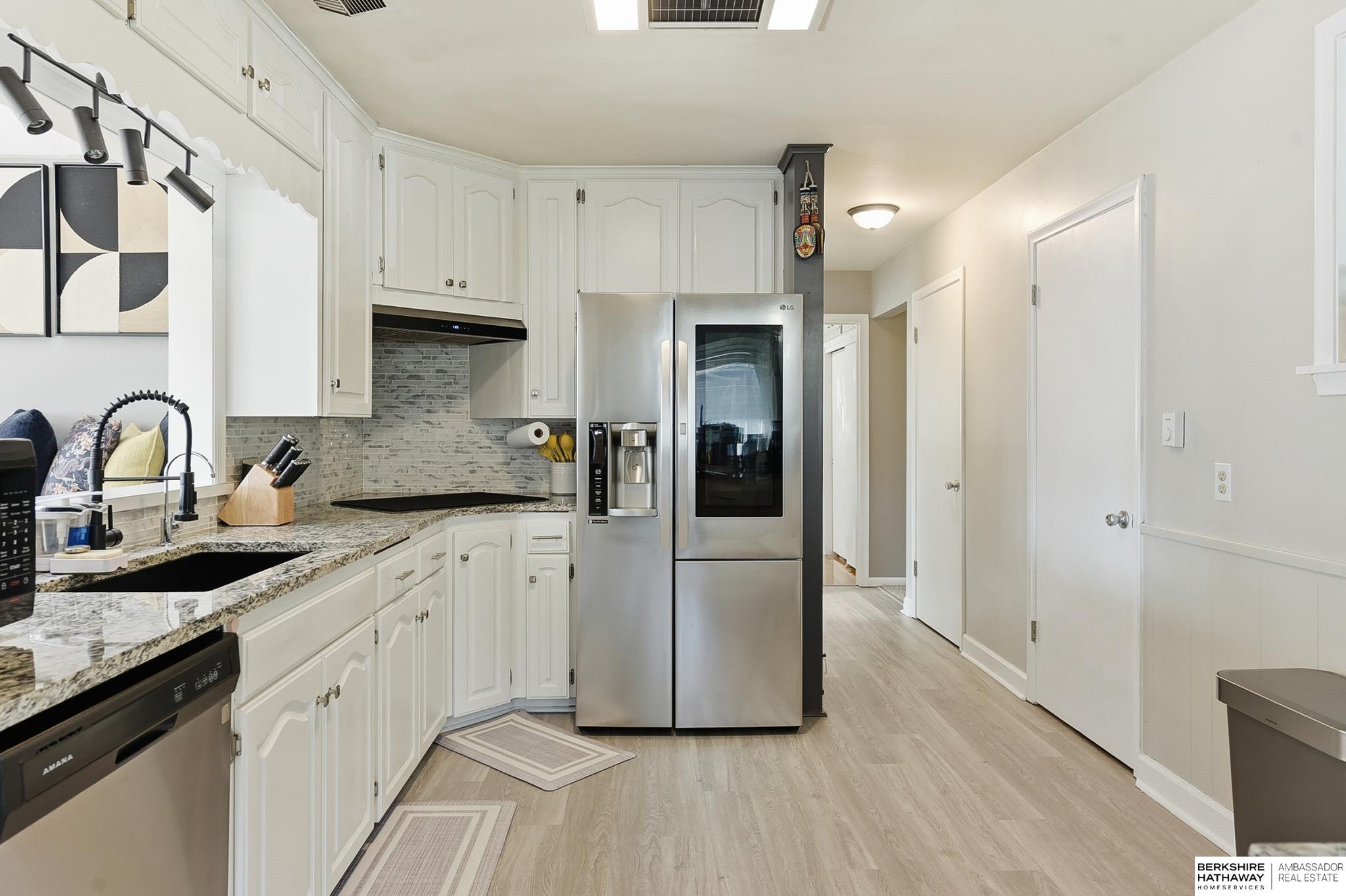 Pride of ownership shows throughout this well-kept Papillion home. Kitchen updates include white cabinets, newer countertops, newer flooring, and newer appliances, plus an eat-in layout. Front living and dining rooms offer great natural light and charming built-ins. The vaulted family room opens to the backyard. All three bedrooms have original hardwood floors and Pella Windows, and the primary includes a built-in dresser. Main-floor laundry is a bonus. The finished lower level adds a large rec room with fireplace, a 3/4 bath, and extra storage. The newly installed heat pumps provide excellent comfort throughout. Enjoy a private, fully fenced yard with a storage shed. Close to shopping and Offutt AFB. AMA.