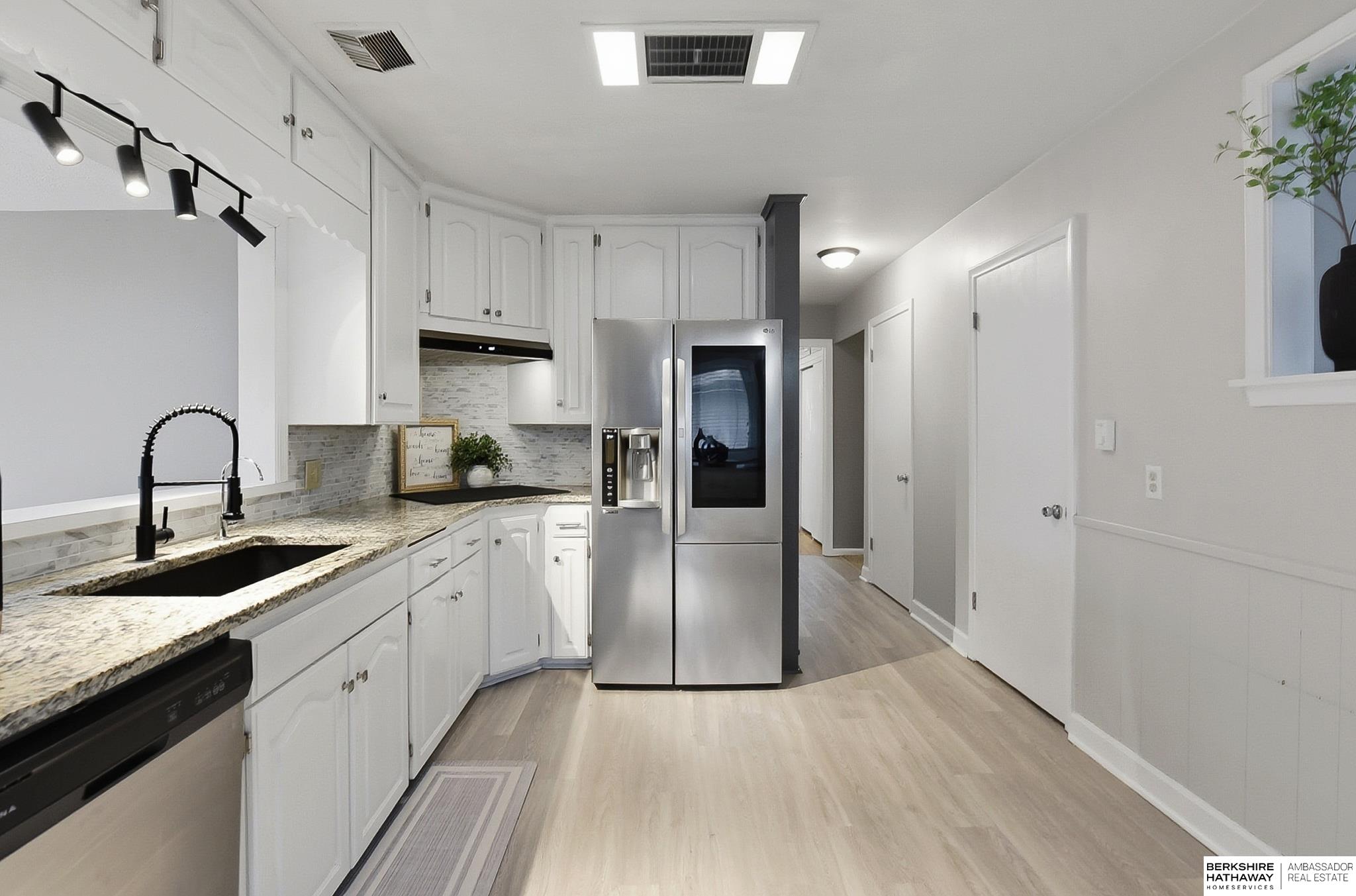 Pride of ownership shows throughout this well-kept Papillion home. Kitchen updates include white cabinets, newer countertops, newer flooring, and newer appliances, plus an eat-in layout. Front living and dining rooms offer great natural light and charming built-ins. The vaulted family room opens to the backyard. All three bedrooms have original hardwood floors and Pella Windows, and the primary includes a built-in dresser. Main-floor laundry is a bonus. The finished lower level adds a large rec room with fireplace, a 3/4 bath, and extra storage. Enjoy a private, fully fenced yard with a storage shed. Close to shopping and Offutt AFB. AMA.