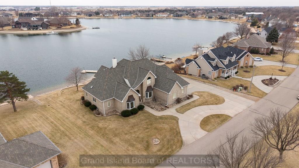 Discover this beautiful 1 1/2 story brick home nestled on the north side of Ponderosa Lake, offering incredible space and breathtaking views. This home features 6 bedrooms, 4 1/2 bathrooms, and 3740sqft above ground, plus an additional 1639sqft in the basement. The incredible master suite includes a walk-out door to the back deck, gorgeous views of the lake, a large master bathroom with separate vanities and two oversized walk-in closets. The home offers two staircases to the upper level and two staircases to the basement, including convenient access through the attached three car garage. Outside you'll find a long, wide driveway leading to the side garages and a circle dive in front, a large back deck and brand-new roof and gutters. This home combines elegant design with functional spaces, making it a perfect retreat for lakeside living.