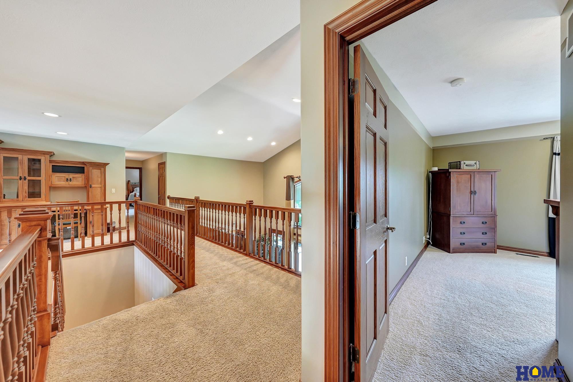 Rarely does a property like this come on the market! Perfectly positioned on over 3 acres, this residence offers unmatched privacy while backing to a tranquil lake! This custom built 6200 sq ft home offers rich lodge-style warmth and year round recreation. The chef’s kitchen and close by prep pantry offer subzero refrigerators (2) and freezers (2). The main floor also features a dining area and great room with cathedral ceilings. Primary suite and bath are luxe and walk out to deck! 2nd floor has a study/lounge area and 3 beds all with baths. Walk-out lower level has a bedroom and bath, fireplace, and wet bar. The outside spaces of this home are amazing! There is an inground pool, a waterfall, and an expansive deck with a fireplace. This property is a chance to build a true legacy for generations. Enjoy the tranquility of acreage living while being just minutes from Lincoln's amenities.