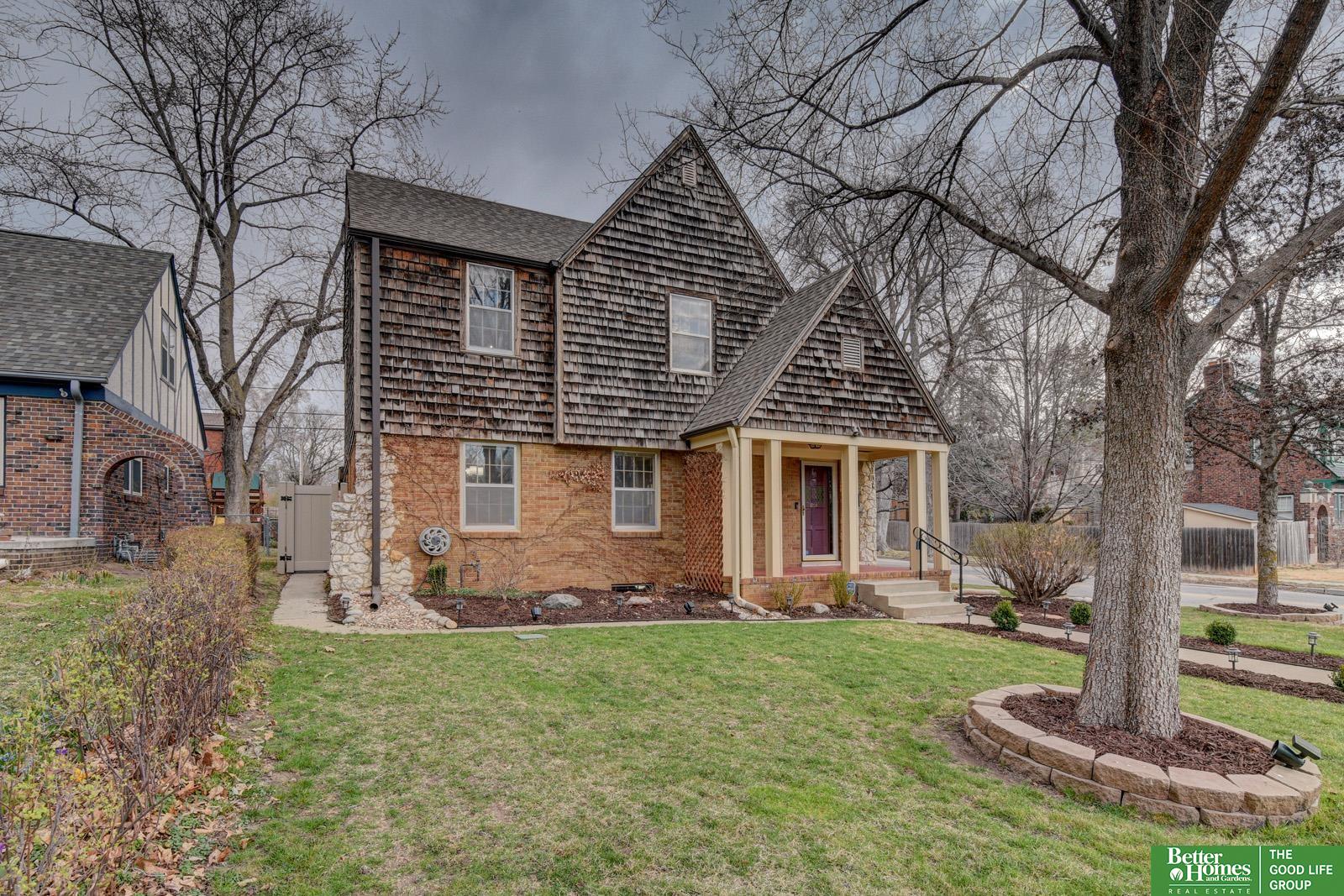 This classic two-story blends brick, stone, and cedar shakes with steeply pitched roofline, creating a storybook-like presence. With its welcoming front entry framed by simple square columns, stone chimney rising along the façade, & thoughtfully-curated landscaping, this home is a perfect reflection of the charming lifestyle that Country Club provides. Spacious living room features original hardwood floors & gas fireplace. The kitchen blends charm and function with stainless steel appliances, gas range, breakfast nook with coffee bar, & a 10-pane door leading to the backyard. Primary bedroom features a versatile office nook with potential for future en-suite bath. Finished basement offers a cozy rec room with french doors, 3/4 bath, laundry, & storage. Outside, enjoy a true backyard retreat with vinyl privacy fence, concrete patio, pergola, & fire pit area. Additional updates include driveway, garage door, gutter guards. sprinkler system, & paint. Metcalfe Park in sight! Preinspected!