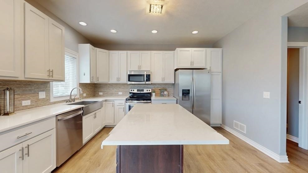 Welcome home to this beautiful custom-built home in West Meadows, conveniently located just west of the hospital and the YMCA! This stunning property features a bright, open main floor filled with natural light from large windows overlooking the backyard. You’ll love the custom columns that add character between the great room and kitchen, along with gorgeous cabinetry, quartz countertops, and stainless-steel appliances. The main floor also includes a convenient bathroom. Upstairs, the spacious primary suite is your own private retreat with a double vanity, en-suite bathroom, and a large walk-in closet. You’ll also find two additional bedrooms and a perfectly placed laundry room right on the bedroom level. The finished basement offers even more living space with a large rec room, fourth bedroom, and an additional bathroom. Step outside to enjoy the huge lot and patio off the dining room, ideal for relaxing summer evenings. With custom window treatments throughout and an oversized 3-car garage offering plenty of storage, this home truly has it all. Message me today to schedule your private tour.