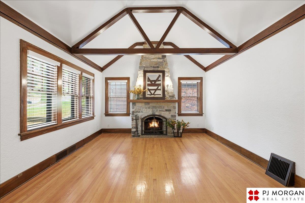 Contract Pending. Back up offers only. Timeless character meets modern comfort in this English Tudor located in Omaha’s Country Club neighborhood. Living room features vaulted, beamed ceilings, wood floors, and a stone fireplace that opens to the formal dining room. Updated kitchen offers new quartz countertops, tile backsplash, and new refrigerator, stove and microwave. Hardwood floors continue throughout the main level, which includes 2 bedrooms and a bath. The spacious primary suite is the entire second floor with its own ¾ bath with walk-in shower. Built in 1929, the home is rumored to have served as a neighborhood speakeasy, with an exterior brick passageway leading to a lower-level wet bar and vintage lighting. Lower level includes a ¾ bath and ample storage. Outdoor living features a large two-tier composite deck, fully fenced yard with mature landscaping, updated retaining wall and front stoop, and a front-yard sprinkler system.
