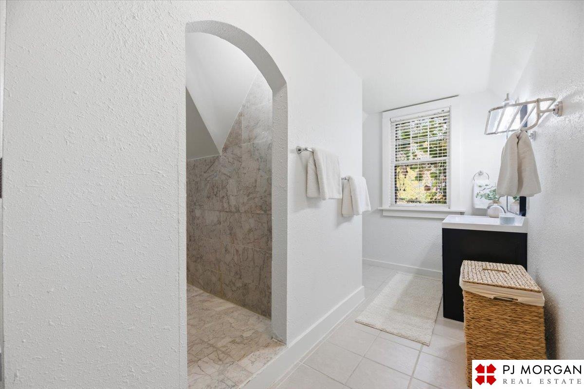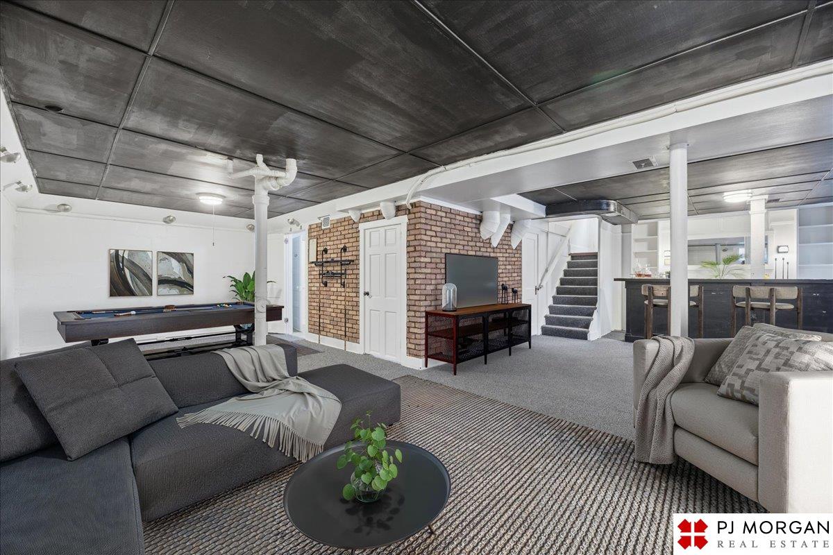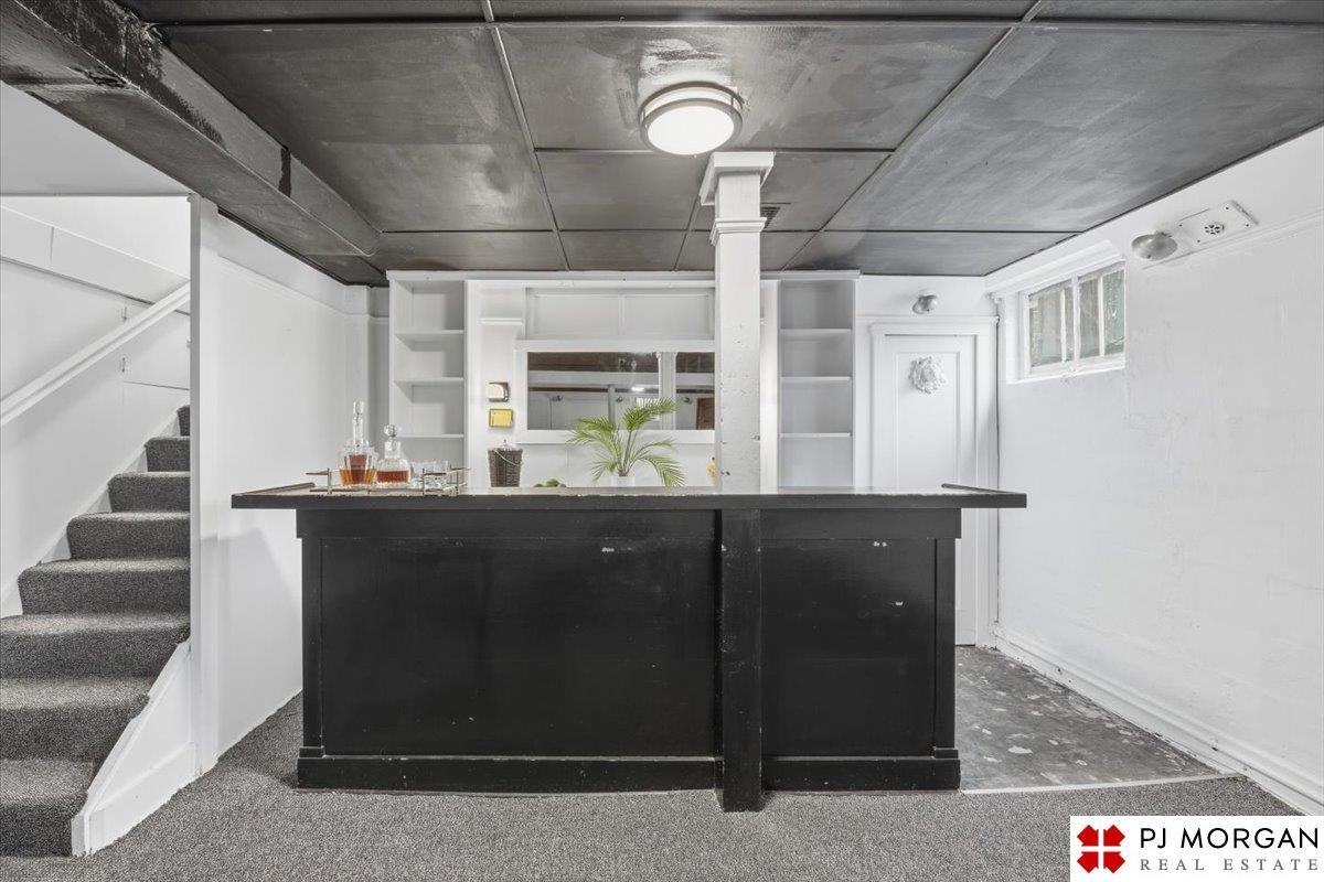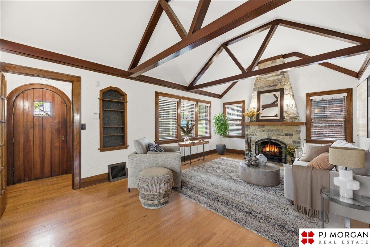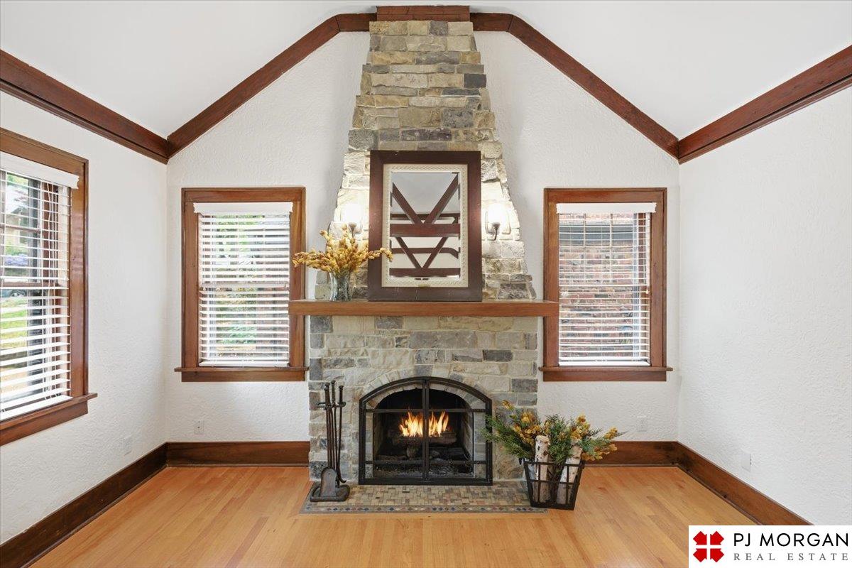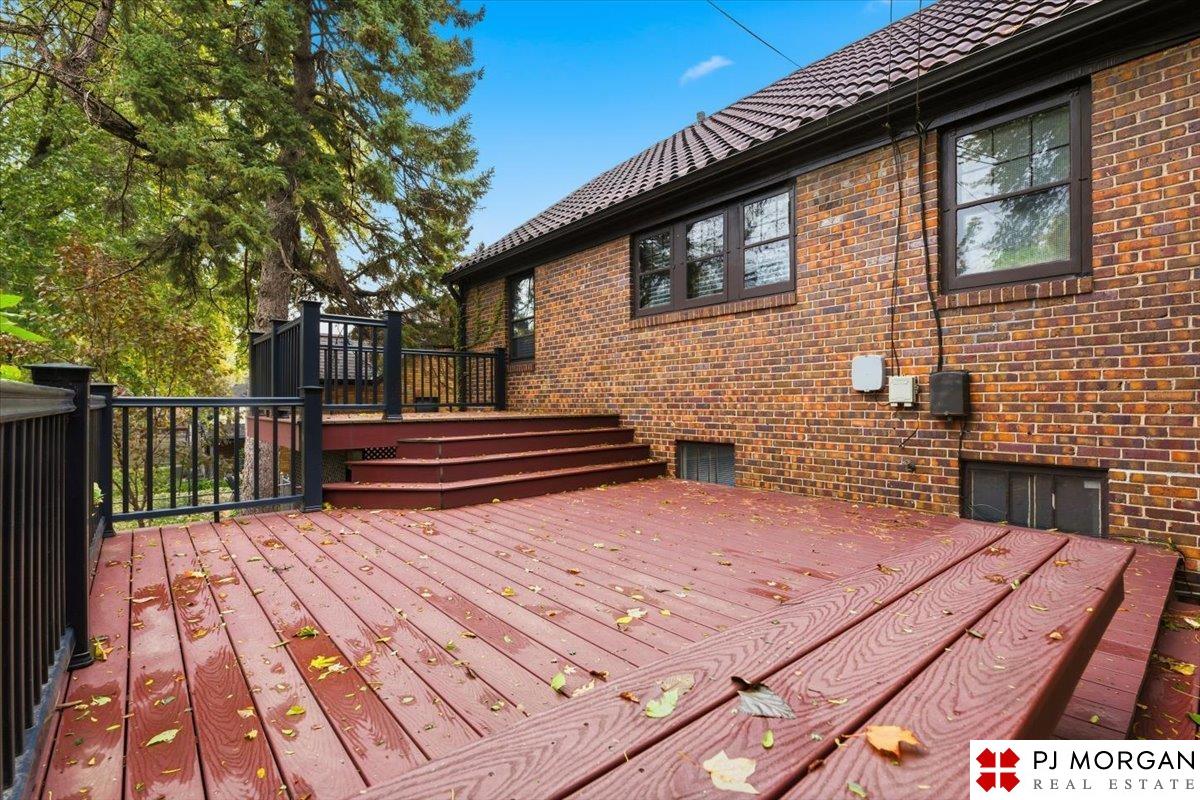 Timeless character meets modern comfort in this English Tudor located in Omaha’s Country Club neighborhood. Living room features vaulted, beamed ceilings, wood floors, and a stone fireplace that opens to the formal dining room. Updated kitchen offers new quartz countertops, tile backsplash, and new refrigerator, stove and microwave. Hardwood floors continue throughout the main level, which includes 2 bedrooms and a bath. The spacious primary suite is the entire second floor with its own ¾ bath with walk-in shower. Built in 1929, the home is rumored to have served as a neighborhood speakeasy, with an exterior brick passageway leading to a lower-level wet bar and vintage lighting. Lower level includes a ¾ bath and ample storage. Outdoor living features a large two-tier composite deck, fully fenced yard with mature landscaping, updated retaining wall and front stoop, and a front-yard sprinkler system.