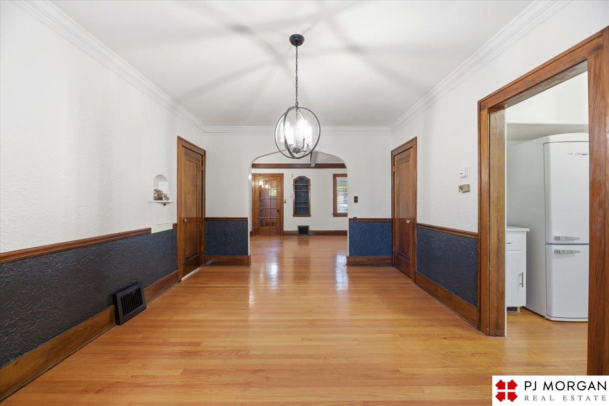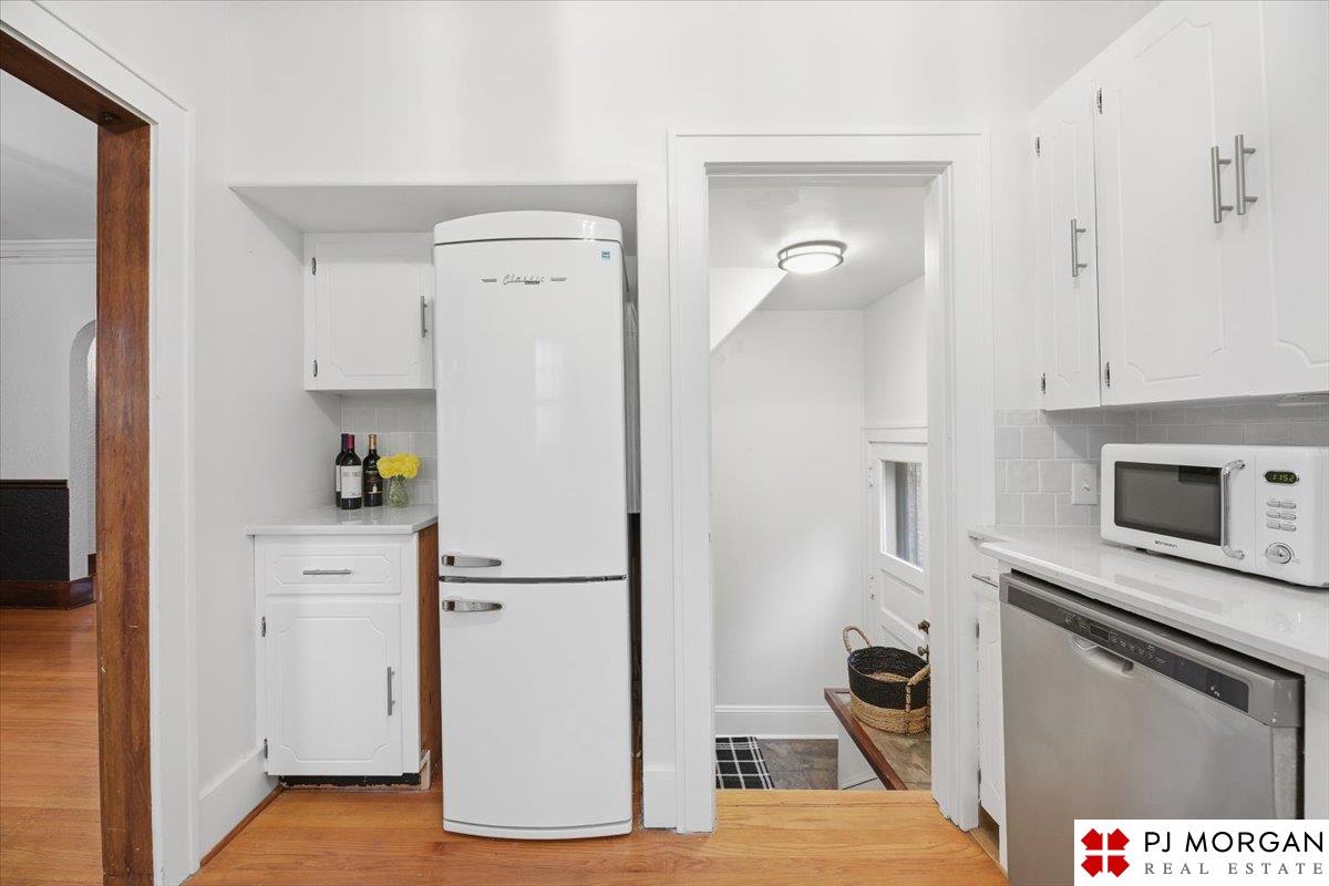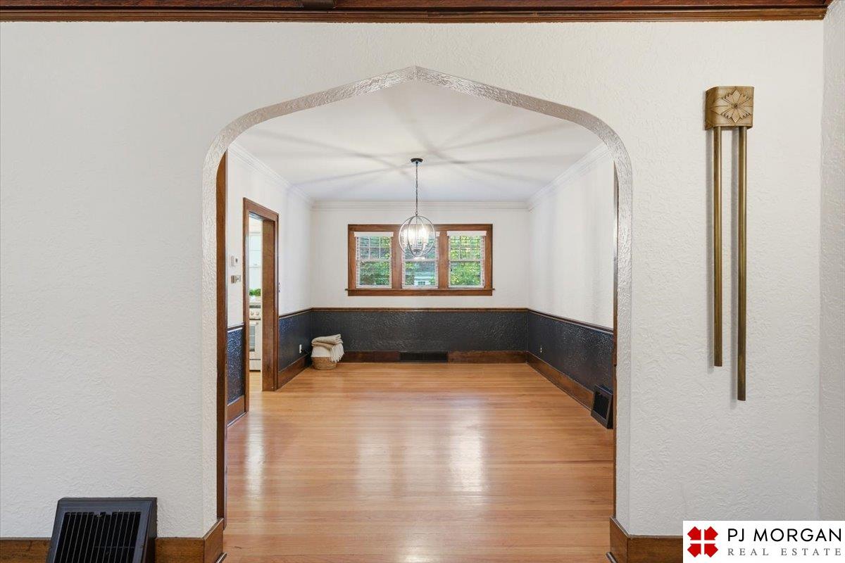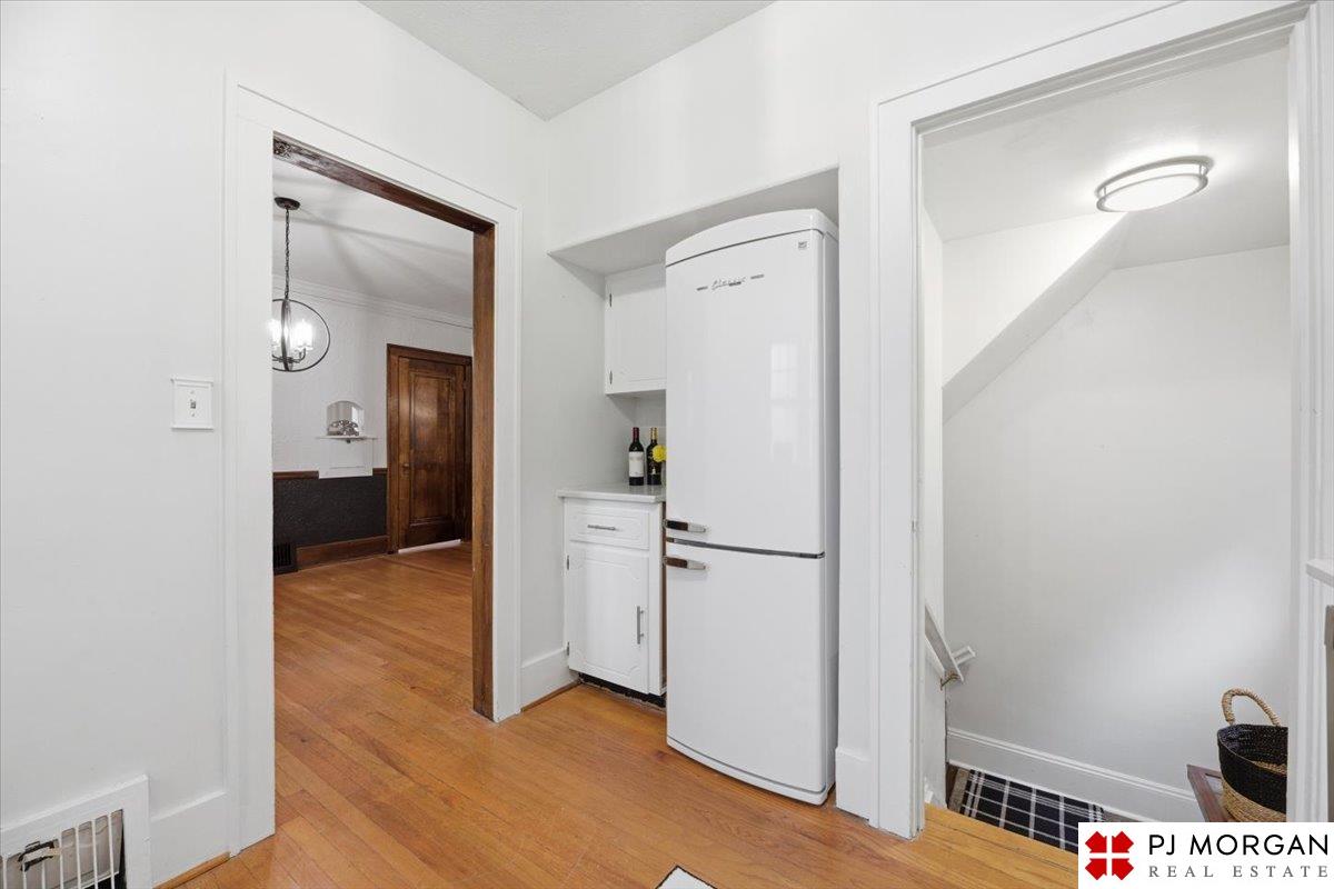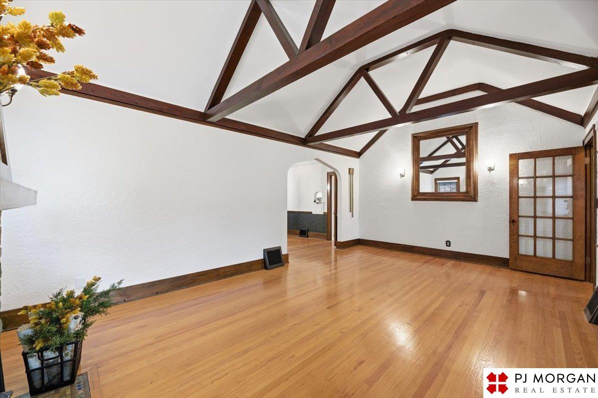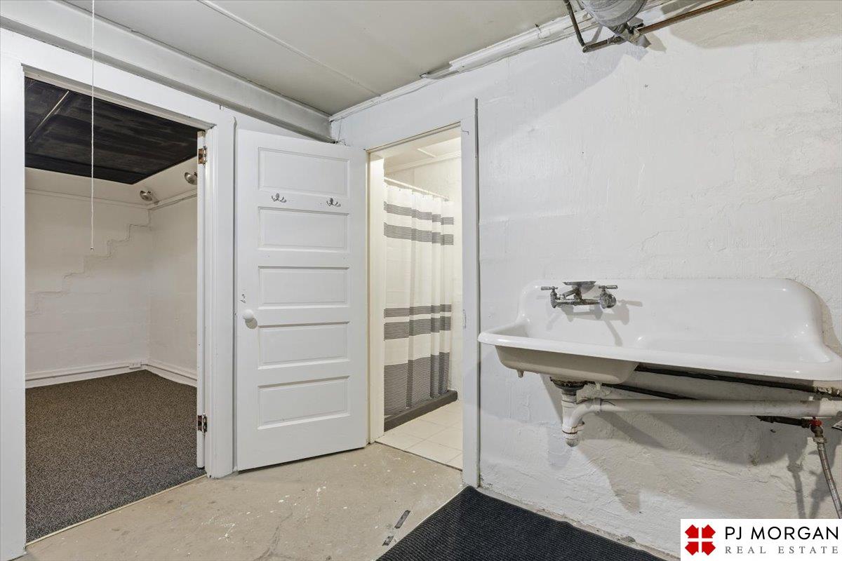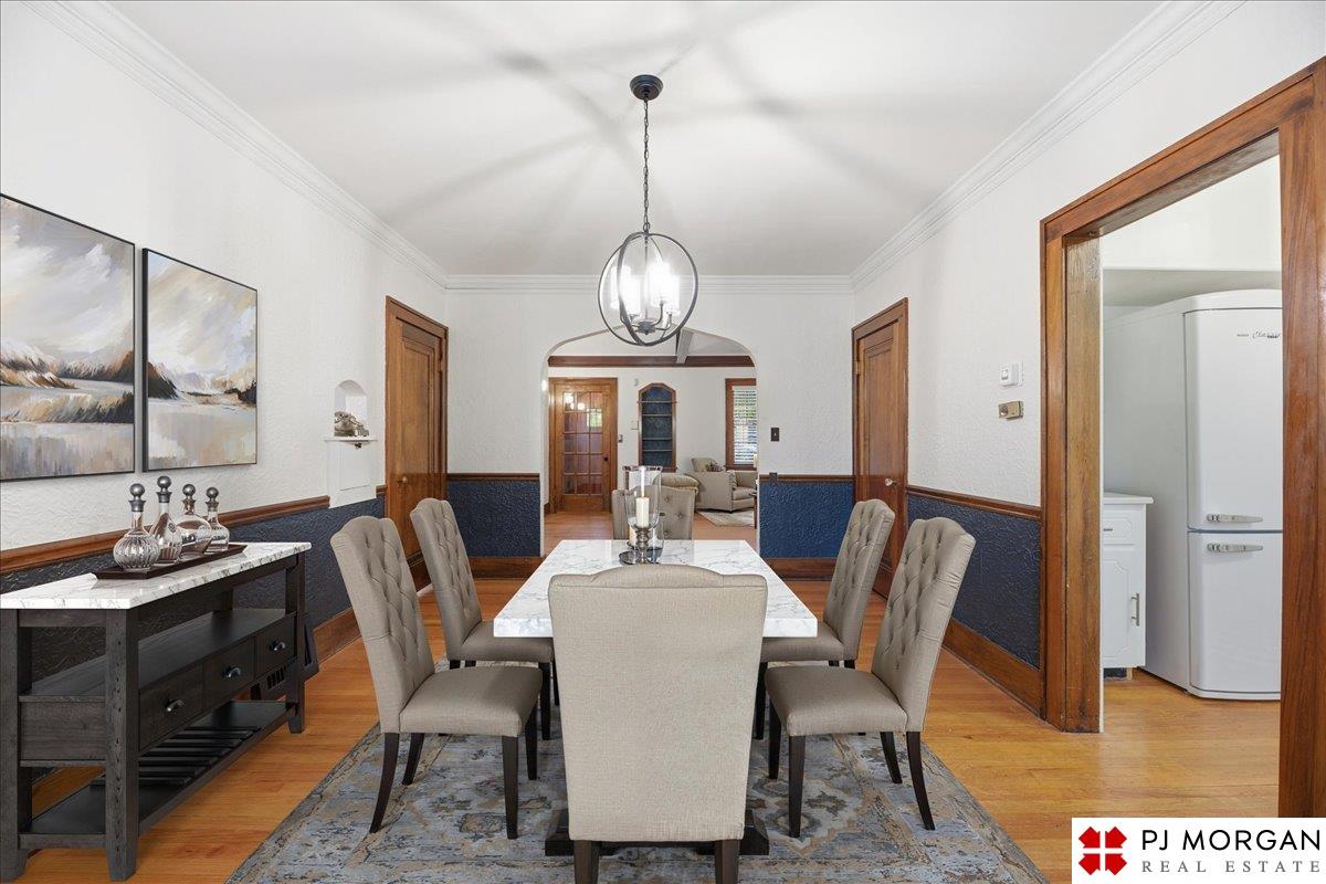Timeless character meets modern comfort in this English Tudor located in Omaha’s Country Club neighborhood. Living room features vaulted, beamed ceilings, wood floors, and a stone fireplace that opens to the formal dining room. Updated kitchen offers new quartz countertops, tile backsplash, and new refrigerator, stove and microwave. Hardwood floors continue throughout the main level, which includes 2 bedrooms and a bath. The spacious primary suite is the entire second floor with its own ¾ bath with walk-in shower. Built in 1929, the home is rumored to have served as a neighborhood speakeasy, with an exterior brick passageway leading to a lower-level wet bar and vintage lighting. Lower level includes a ¾ bath and ample storage. Outdoor living features a large two-tier composite deck, fully fenced yard with mature landscaping, updated retaining wall and front stoop, and a front-yard sprinkler system.