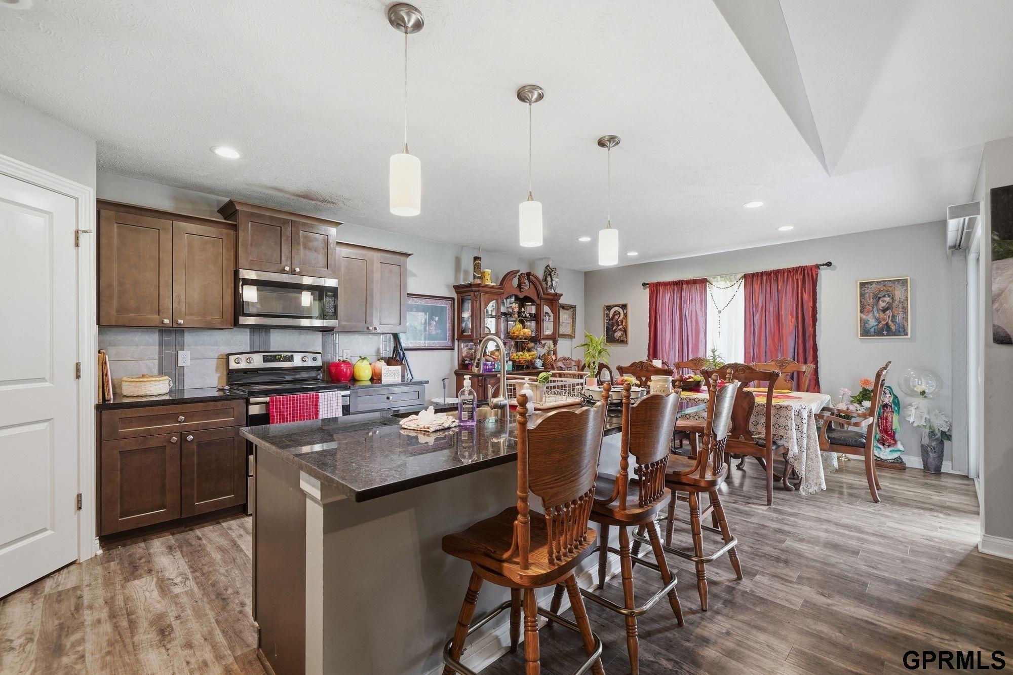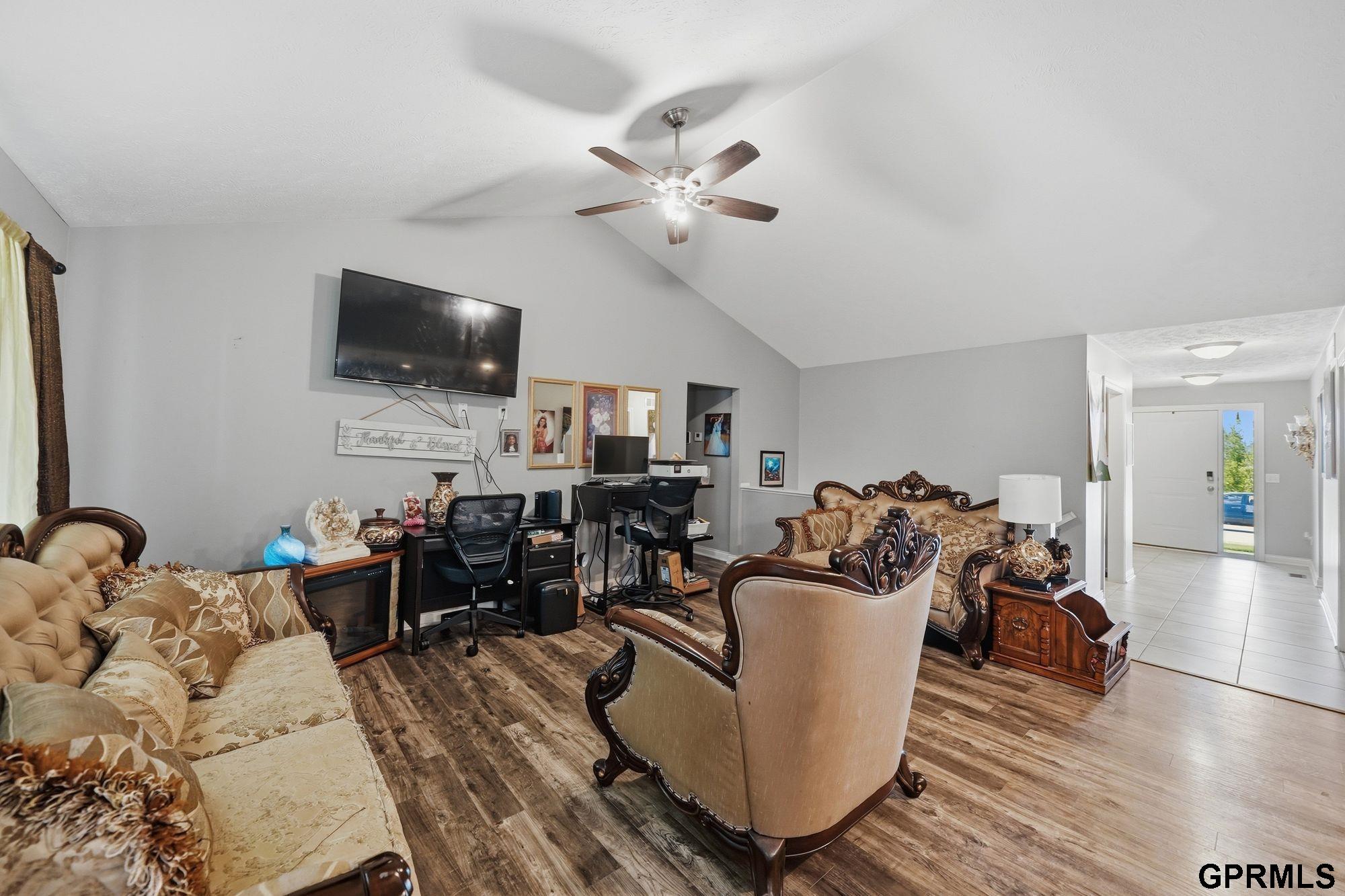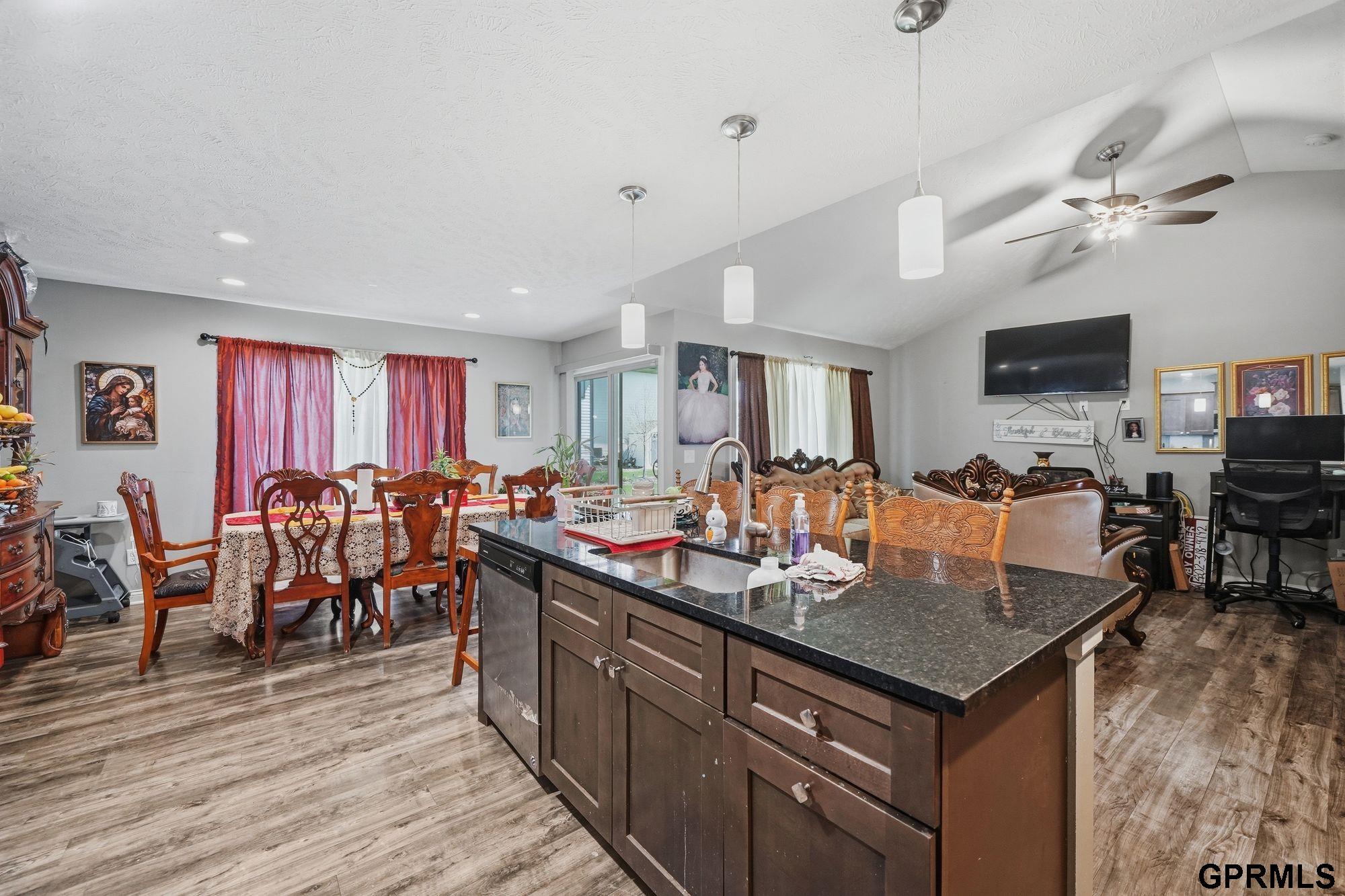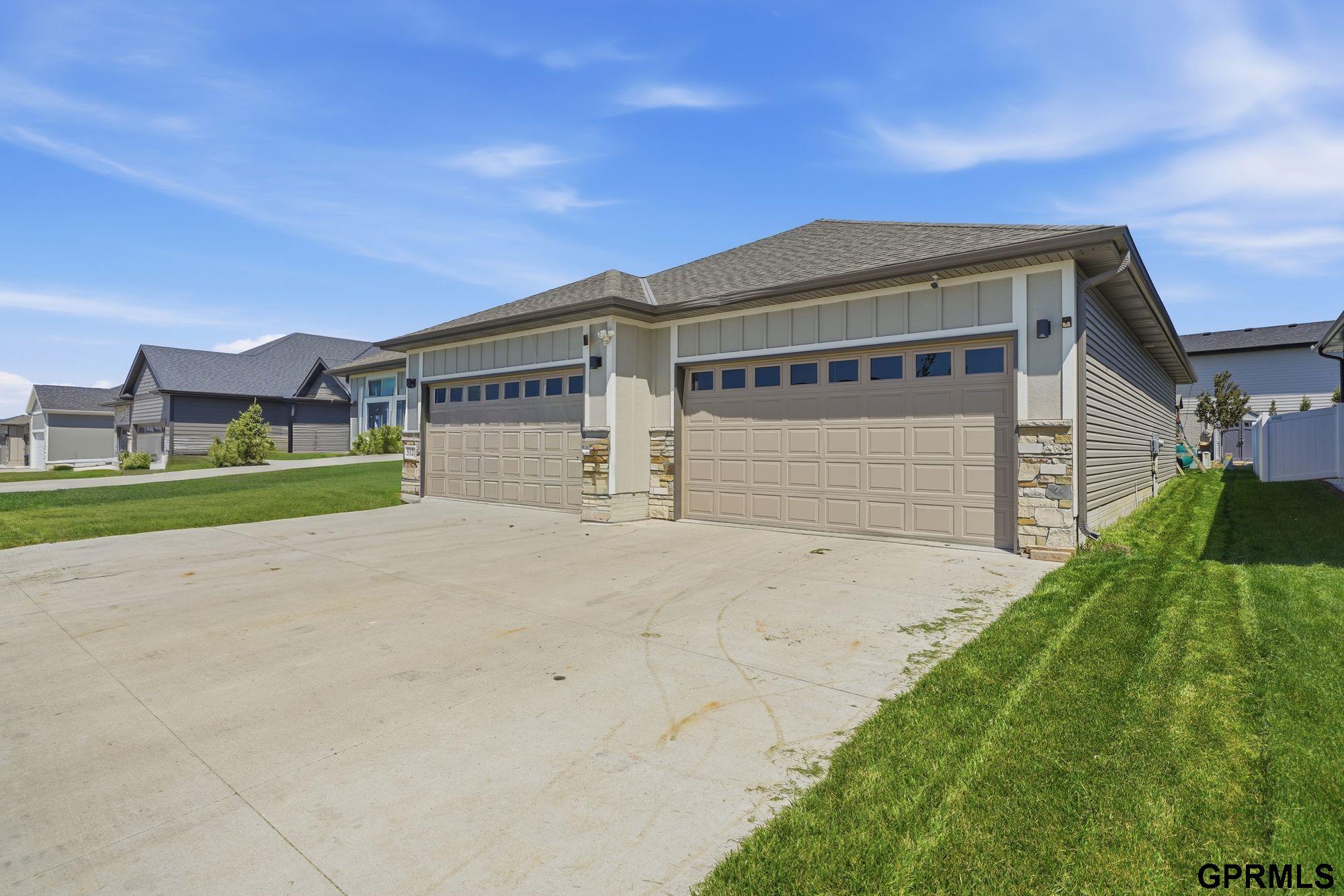 Spacious and well-maintained ranch home in the desirable Waterford Estates offering over 2,800 finished sq. ft., 5 bedrooms, 3 bathrooms, and an impressive 6-stall garage—a rare combination of space, function, and versatility. The main level features an open-concept kitchen, dining, and living area with vaulted ceilings and abundant natural light. The kitchen includes a center island with breakfast bar seating, spacious pantry, and durable flooring for easy upkeep. The primary suite offers a walk-in closet, double vanity, and tiled walk-in shower. Convenience continues with main-floor laundry, plus an additional laundry area in the basement. The finished lower level provides a huge family room, three additional bedrooms, a full bathroom, and exceptional storage space—ideal for guests, hobbies, home office needs, or multigenerational living.