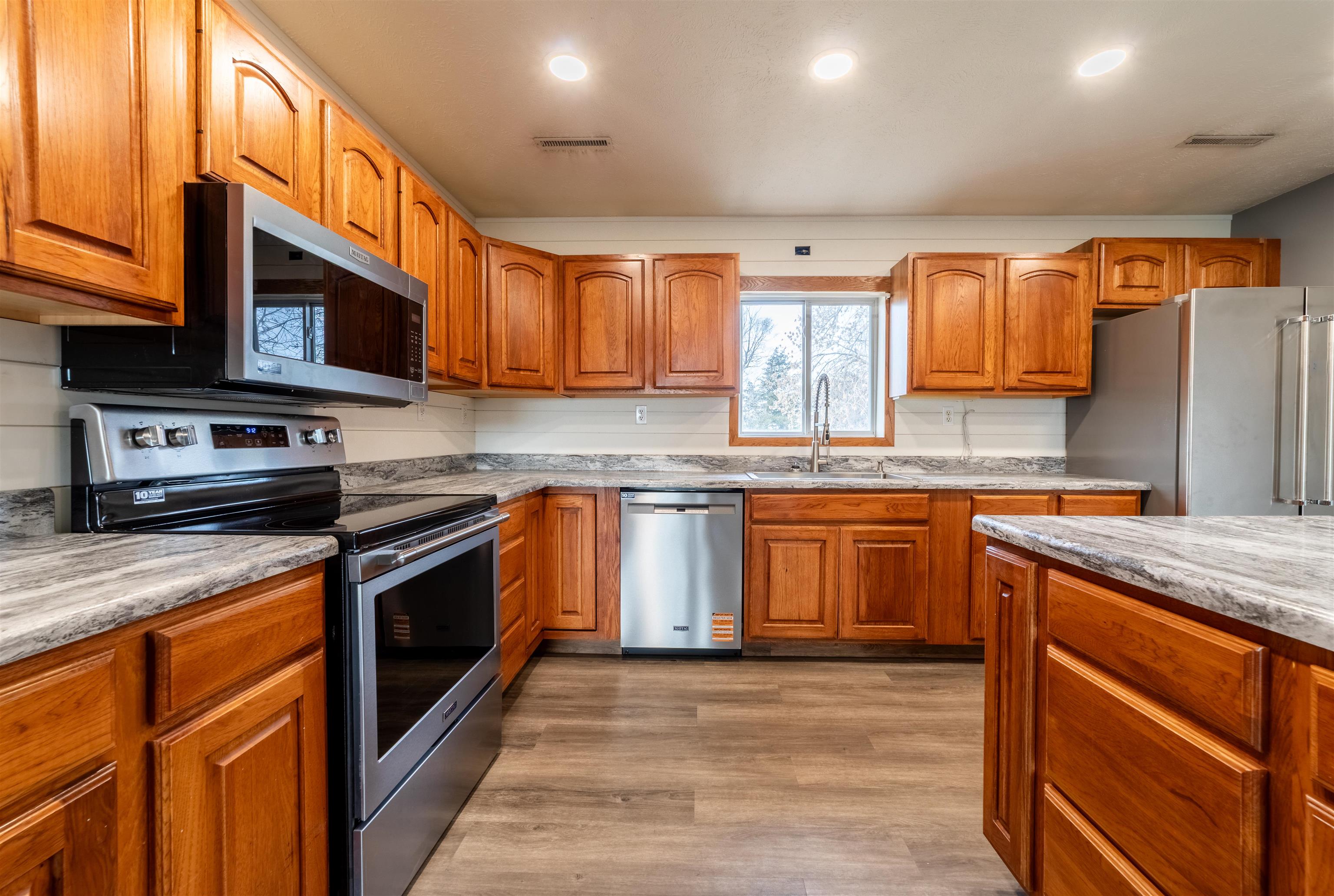 3.81 ACRES! Welcome to this updated acreage property offering the perfect blend of single level living and an abundance of storage/workshops. Built in 1998, the home features an open floor plan with a refreshed kitchen including a center island, brand new stainless steel appliances and new countertops. New flooring throughout the home, complemented by a freshly painted interior and a newly updated shower. The spacious primary bedroom offers a walk-in closet, while a convenient mudroom off the garage includes a ¾ bath and new washer and dryer. This property truly shines with its extensive storage and workspaces. A massive 5-car garage (24x38) is joined by a 26x36 shop, a 26x24 heated shop with overhead doors, and multiple lean-tos (36x12 and 31x21) providing endless versatility. Additional structures include a 38x12 loafing shed/chicken coop with an attached 16x8 pole barn, a 10x16 shed, and a 10x8 shed, ideal for hobbies, equipment or storage. Recent exterior upgrades include a new roof, siding, and patio. Situated on 3.81 acres, which includes the adjacent parcel (010017251), this property offers space, privacy, and unmatched flexibility, perfect for those seeking a rural lifestyle with modern updates and exceptional outbuildings, all located just minutes from town! Crawl space access through mud room. Showings to start Monday, January 19, 2026