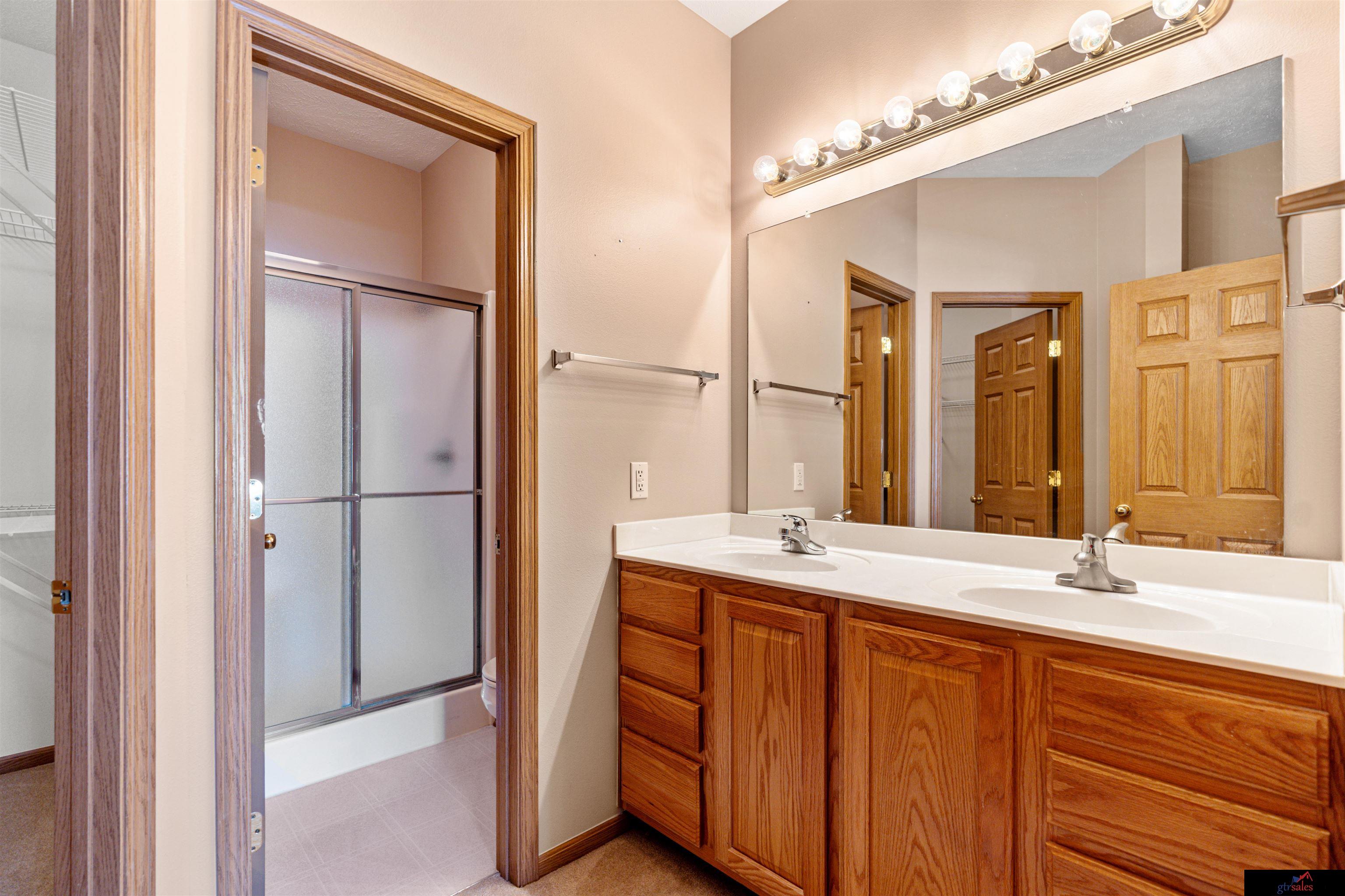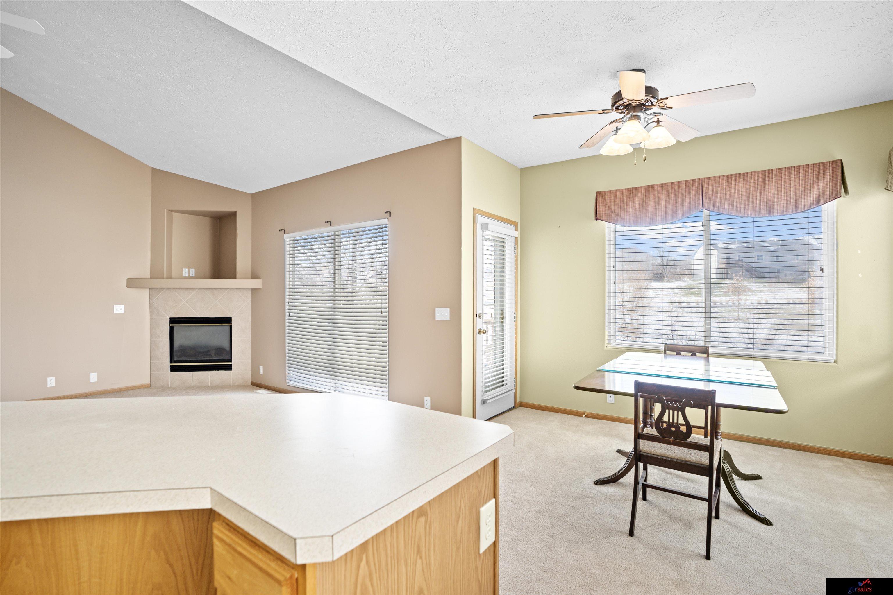 Welcome home to this beautifully maintained 3-bedroom, 3-bath, 2-car garage villa-style ranch offering 2,256 sq ft of comfortable, low-maintenance living,with no backyard neighbors for added privacy. Step inside to an open, inviting floor plan featuring a cozy living room with a corner fireplace, perfect for relaxing evenings. The spacious kitchen shines with generous counter space, ample storage, and a sunny dinette area,ideal for everyday meals or hosting friends. The primary suite is your private retreat with a walk-in closet and a bath featuring dual sinks and plenty of room to unwind. A second bedroom, full guest bathroom, and convenient main-floor laundry complete the main level. Downstairs, the finished lower level offers a fantastic space for entertaining, hobbies, or movie nights, along with abundant storage to keep everything organized. Enjoy outdoor living on your private deck, surrounded by mature landscaping and supported by a sprinkler system.