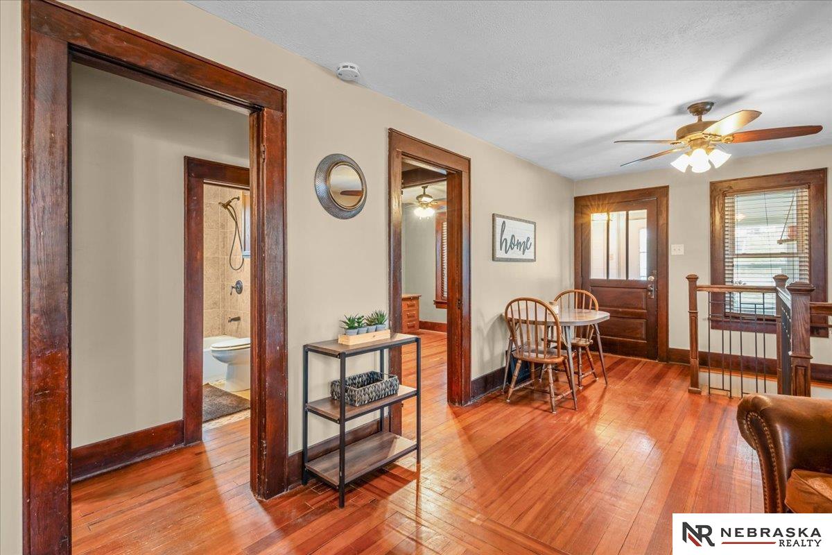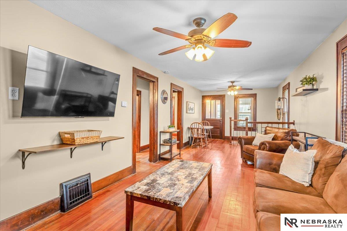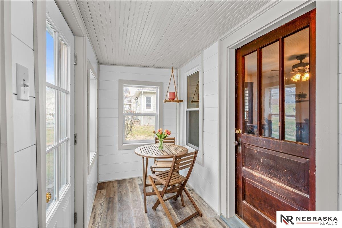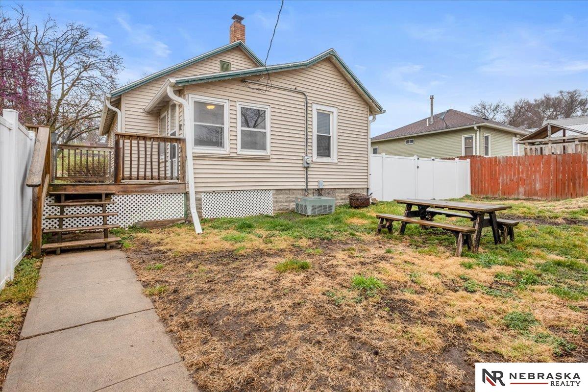 Welcome to this charming, move-in-ready home in the heart of Louisville, where small-town living meets everyday convenience just miles from Omaha with easy access to Interstate 80. This thoughtfully updated 1928 home blends timeless character with modern comforts, featuring beautiful original wood floors, an updated kitchen and bath, and the ease of main-floor laundry. Enjoy relaxing in the enclosed porch or on the back deck overlooking the fully fenced yard on a spacious corner lot. A new roof in 2024, vinyl privacy fence, and a single-stall detached garage add to the home's value, while the unfinished basement, with a toilet and newly added staircase, offers functional storage and future potential. With its inviting charm, practical updates, and ideal location, this home is the perfect blend of comfort, character, and convenience. Schedule your showing today!