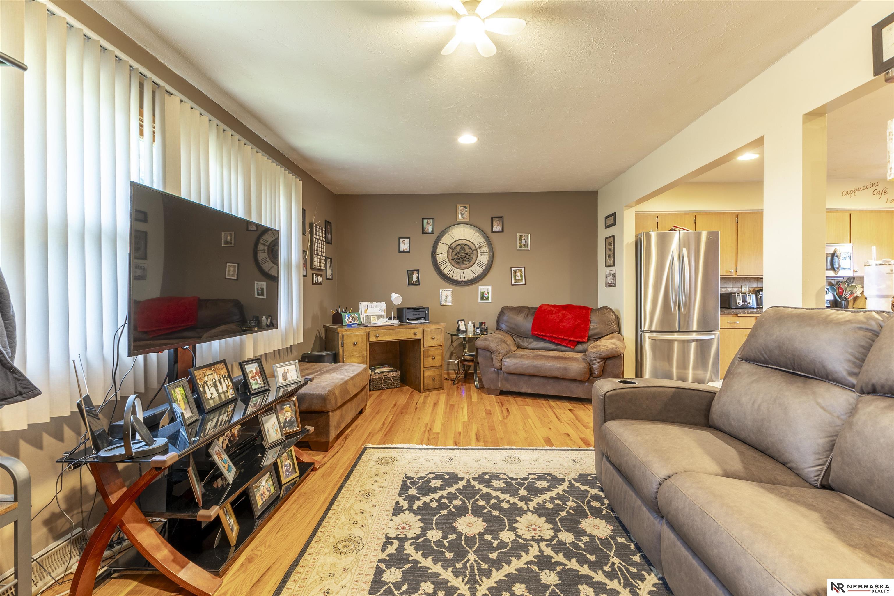 Discover this charming South Omaha home featuring an inviting open-concept main living area with hardwood floors, generous counter space, a convenient breakfast bar, and newer stainless steel appliances. The main bathroom has been recently renovated, and the home also boasts a newer roof for added peace of mind. The finished basement offers new carpet throughout along with a beautifully updated bathroom complete with a spacious shower perfect for additional living or entertaining space. Shower installed by a well known company with a fully transferrable lifetime warranty! Outside, you'll find a flat lot and a low-maintenance steel pergola, ideal for relaxing or hosting gatherings. The oversized 1.5-car garage provides plenty of room for your vehicle plus extra storage or recreational gear. Schedule your showing today and come see all this home has to offer!
