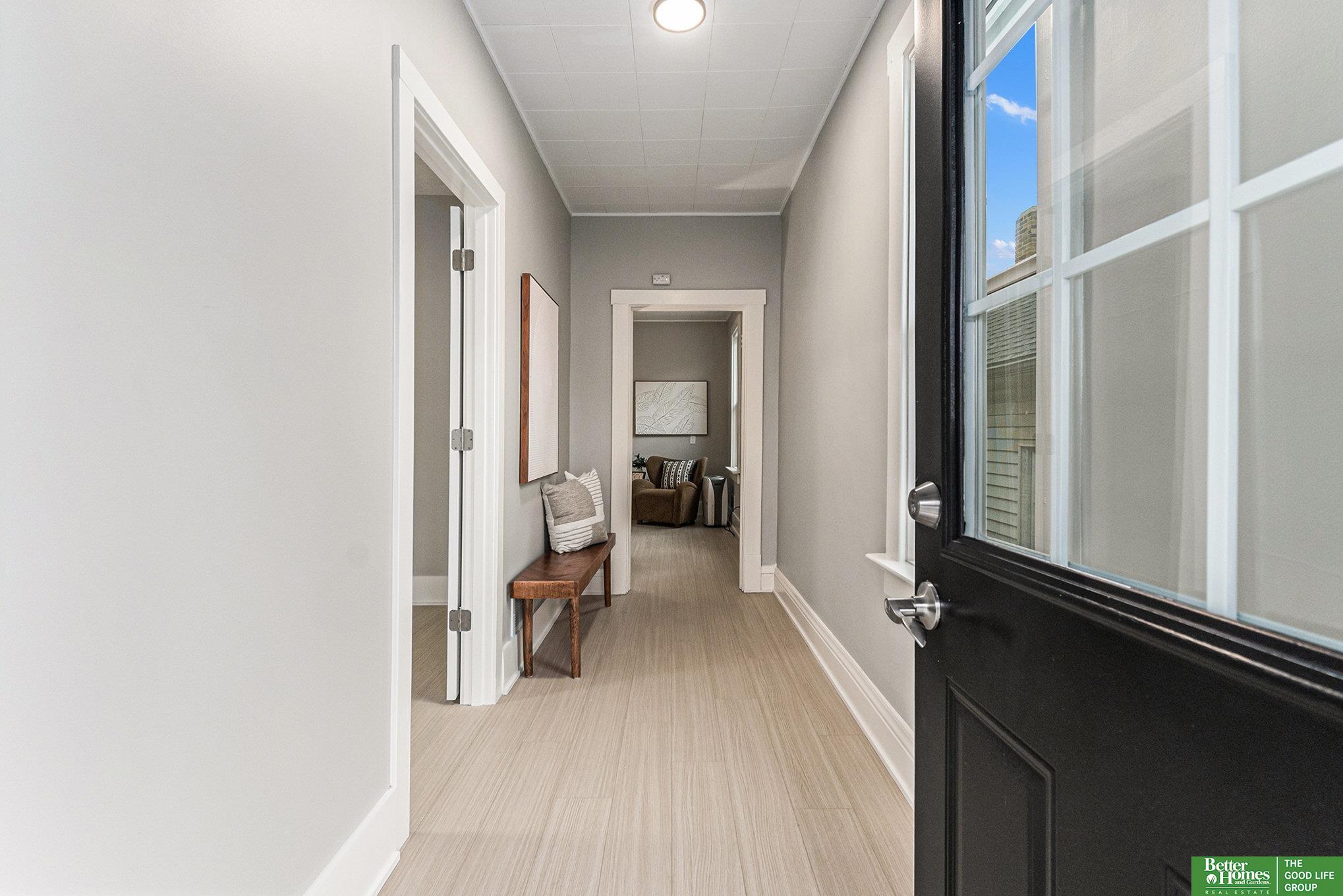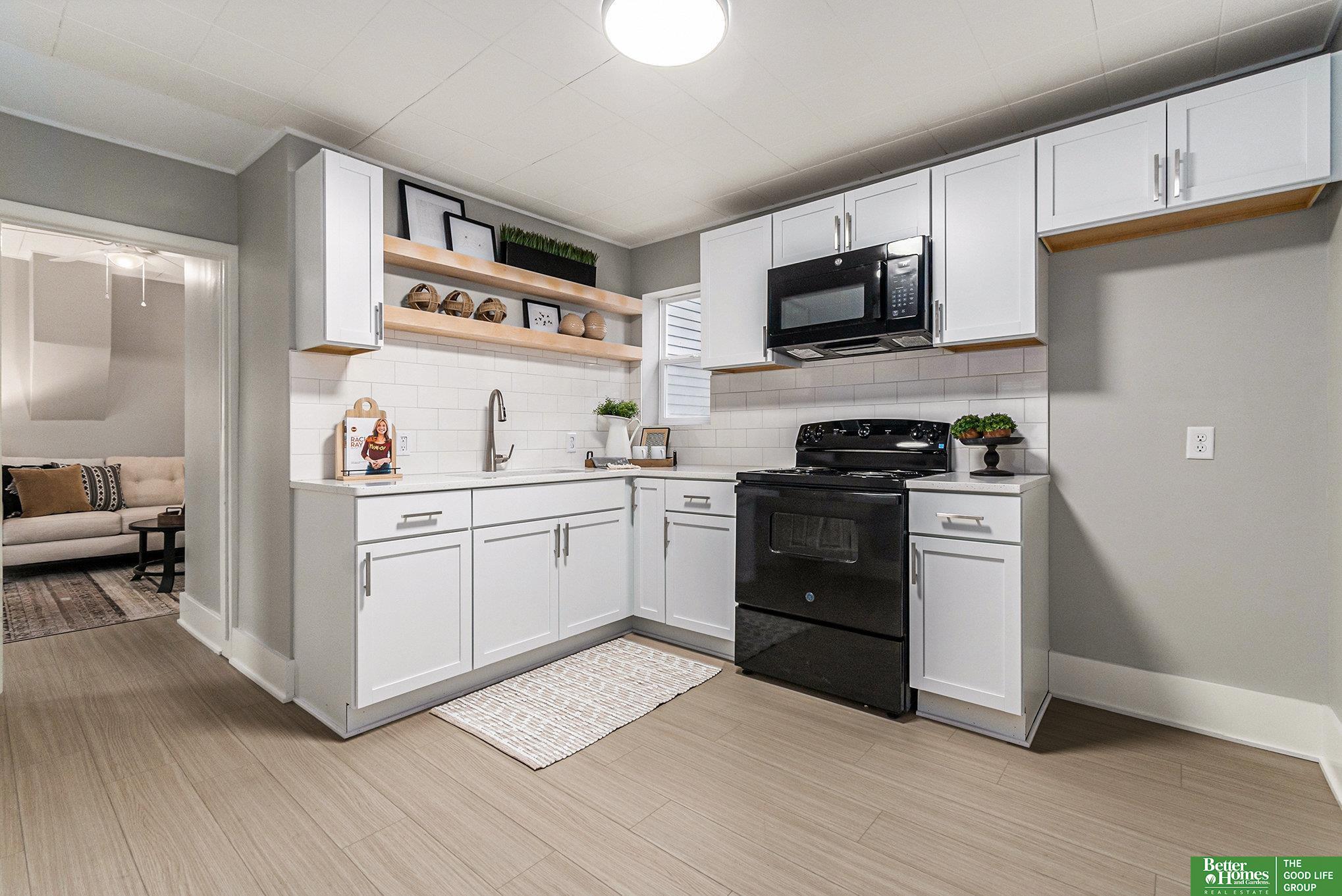 Turn-key living meets modern style in this beautifully remodeled Ranch home in South Omaha! Every inch has been thoughtfully updated, featuring brand-new LVP flooring, crisp white cabinetry, sleek quartz countertops, natural wood shelving, stylish subway tile backsplash, and brand new appliances in the contemporary kitchen. Major updates provide peace of mind, including brand new low-maintenance vinyl siding, new windows, a new air conditioner, new water heater, and a newer roof. A flexible bonus room offers the perfect space for a home office, hobby room, or non-conforming bedroom. Step outside to a flat backyard ideal for relaxing or entertaining, plus a rare oversized detached two-car garage with an upper loft, perfect for storage, a workshop, or future possibilities. Truly move-in ready and packed with value, this home is a must-see! Agent has equity.