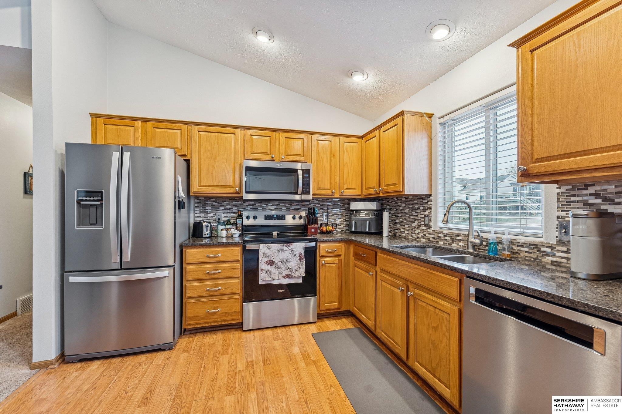 This move-in ready house has a lot to love, with a vaulted ceiling that makes the space feel open and recessed lighting for a clean, modern look. The kitchen comes with quartz countertops and a nice tile backsplash, making it both practical and good-looking. The family room is cozy and welcoming, with a corner fireplace that adds a warm, homey vibe. The Master Suite is a great spot to relax, featuring a walk-in closet and a 3/4 bath for convenience. The garage has new shelving to help keep things organized, and the new gutters from 2024 are a nice touch for keeping everything in good shape. It’s a comfortable, stylish, and practical home that’s ready for you to enjoy.