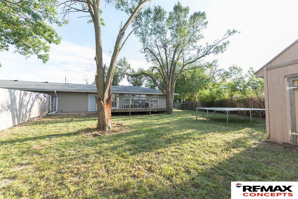 Beautiful & stylish 3 bed, 1 bath home with zero entry at front door. Large kitchen with ample cabinets & cupboards, freshly painted to suit your taste. Nice carpeting & ceramic tile throughout. Some new lighting & ceiling fans; kitchen light is Bluetooth ready to give you music to cook by. Large walk-in shower with ceramic tile. Newer (2024) water heater. Patio doors from dining room walk out to a very large & spacious deck & patio with completely fenced in backyard. Large common area attached to back of lot. Garage has storage shelves and extra end space with door to backyard. Large exterior storage shed in backyard with cement floor. Walking distance to schools, shopping & restaurants. Don't miss out, come check it out soon!