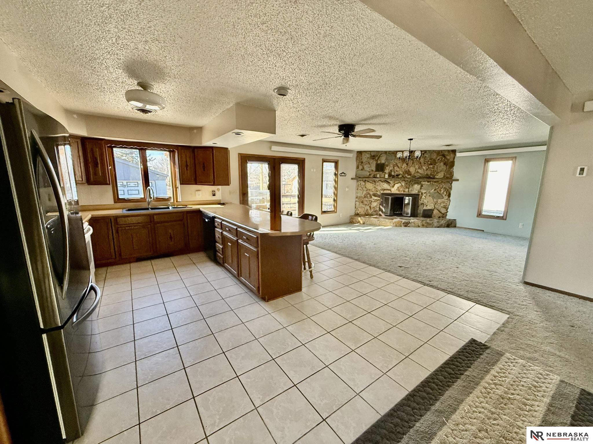 This inviting home offers a warm, open feel with two main-floor bedrooms, a full bath, a spacious living room, and a large kitchen with dining area and cozy fireplace-perfect for gatherings. The basement adds great versatility with a three-quarter bath, one bedroom with an egress window, and a non-conforming room ideal for an office or craft room. New carpet was installed downstairs in 2023, and the home includes a brand-new dishwasher and refrigerator. Enjoy year-round comfort with a wood-burning stove, cove heat, and central air. The property also features a fenced backyard with underground sprinklers and a two-car garage.