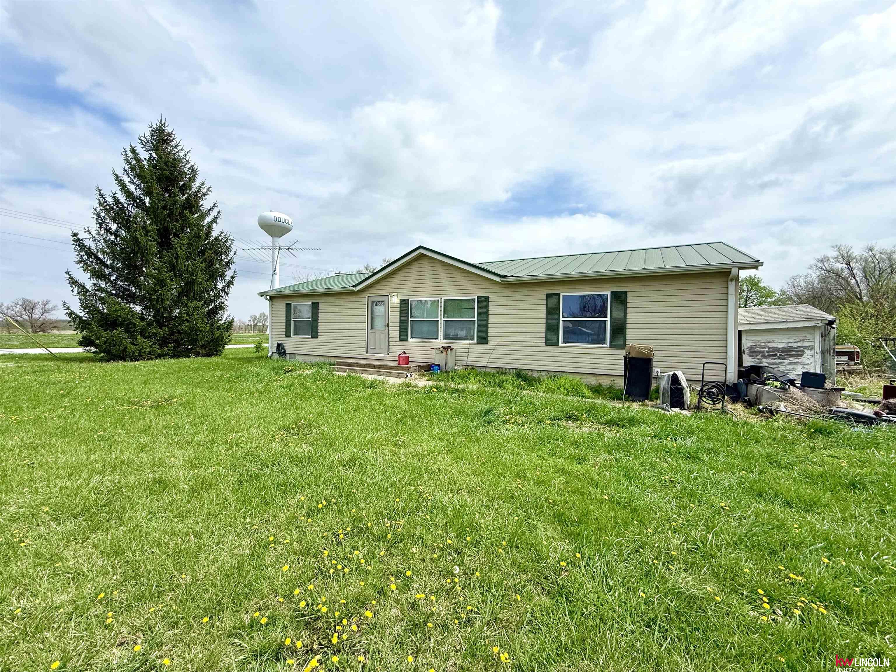 Small Town Living just 20 minutes from Lincoln in the town of Douglas, NE! Easy living in this 1-level ranch home on a 1/3 acre lot! This 3-bedroom, 2-bathroom home has as a primary bedroom suite with jetted bathtub, shower, and walk-in closet. Other features include a living room, 2 additional bedrooms, main bathroom, informal dining area, open kitchen with glass insert cabinets, and first floor laundry. Exterior features include vinyl siding, poured concrete foundation, wooden deck, and wooden privacy fence. Directly across from parks, basketball/tennis court, baseball field, and park shelters with no neighbors directly to the north or west. Call today to schedule a showing!