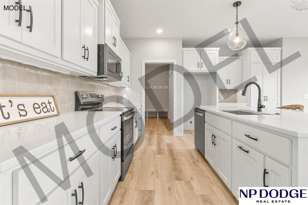Model Home Not for Sale. Trademark Homes presents a stunning new 2-story plan known as the Franklin IV+ in the Elkhorn neighborhood of Avante. This home has a grand entry and thoughtfully designed spaces. The custom kitchen boasts beautiful cabinetry, quartz countertops, and a huge walk-in pantry. Durable LVP flooring flows through the main floor areas, adding both style and functionality. With 4 spacious bedrooms and 3 bathrooms, including a 2nd floor laundry, this home is perfect for modern living. The primary suite offers a double vanity, walk-in shower, and a spacious closet. The 4 car garage adds abundant storage and versatility. Enjoy the covered patio and large backyard. Model home hours are weekends 12-4 or by appointment.
