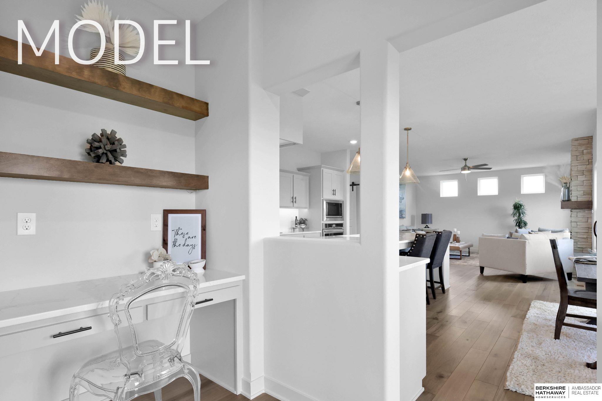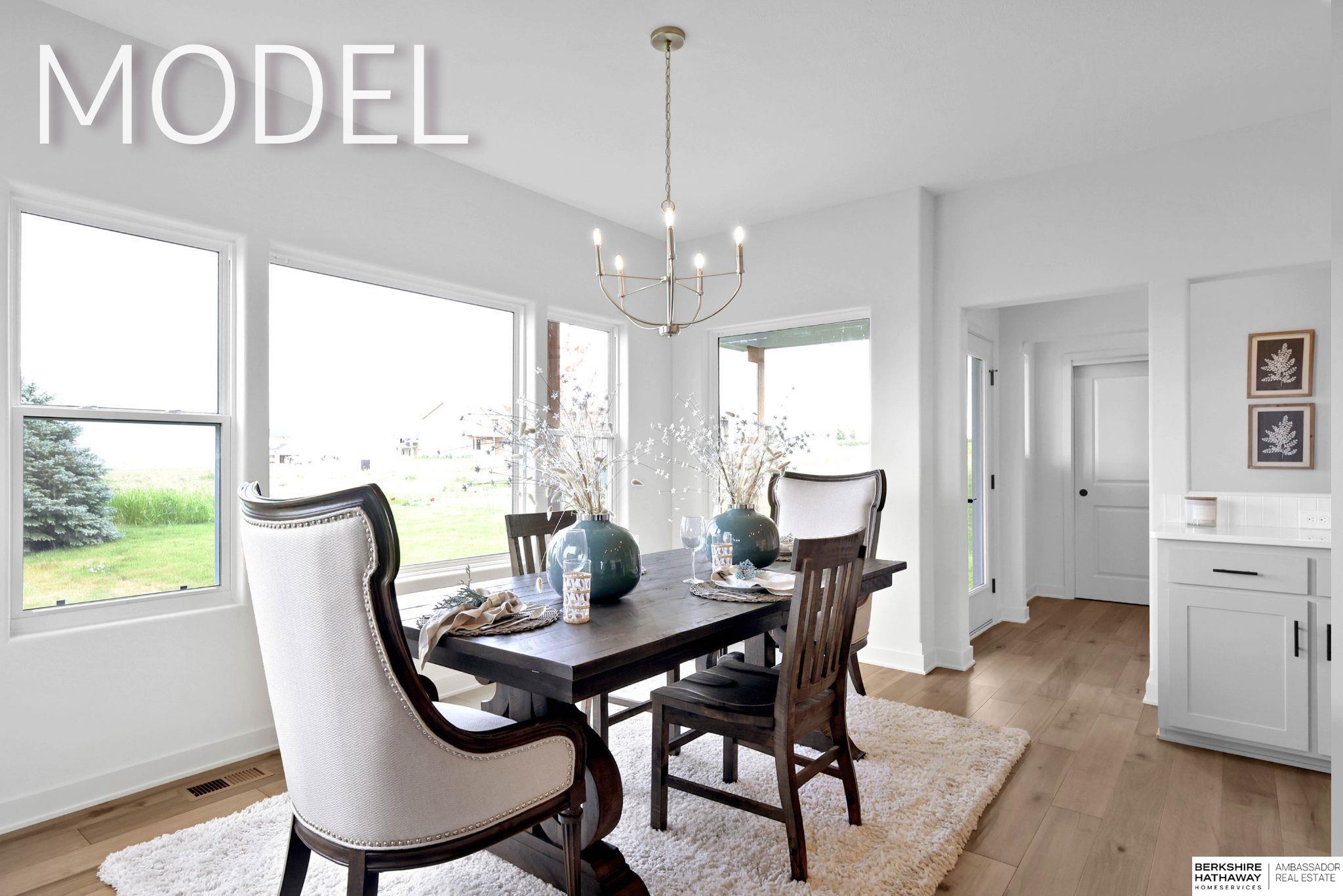 Model Home Not for Sale. Model Home Not For Sale. You'll love the newly redesigned ARTISAN floor plan by PINE CREST HOMES in the newest Elkhorn North neighborhood, Daybreak Springs (located at 192nd & Fort)! Pine Crest Homes is known for smart & functional floor plans & a wide variety of upgrades & options to tailor your home to your style & needs. The Artisan features an impressive kitchen w/ walk-through pantry, oversized island w/ shelving, upgraded appliance package, & quartz countertops. Spacious sunroom dinette. Large drop zone that connects to a pocket office. Inviting 2 story entry that opens up to a loft space on the 2nd floor. Beautiful primary suite w/ accent ceiling, double walk-in closets, & nicely sized walk-in shower. Windows, windows, & more windows throughout the house w/ so much natural sunlight. There is even a covered patio too! Come walk through your new floor plan on Thursday to Sunday between 12pm & 4pm! Let's design your new home together!
