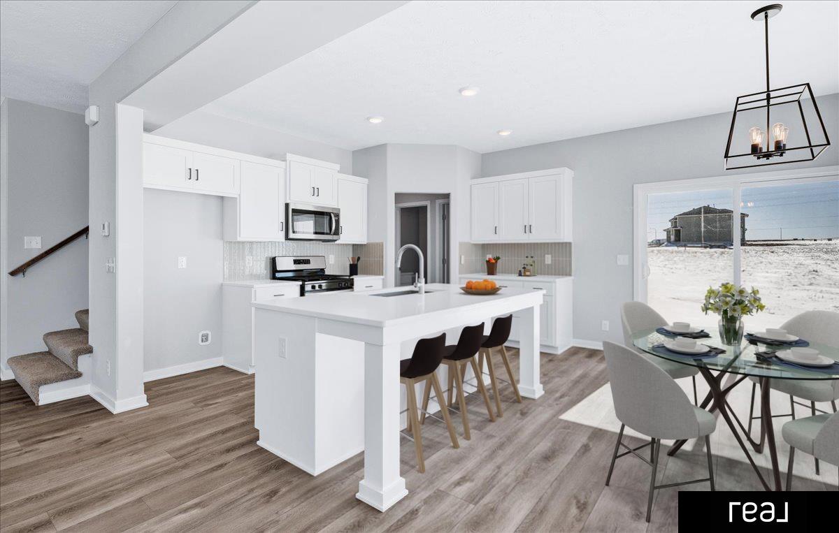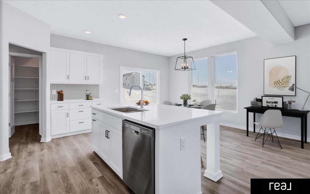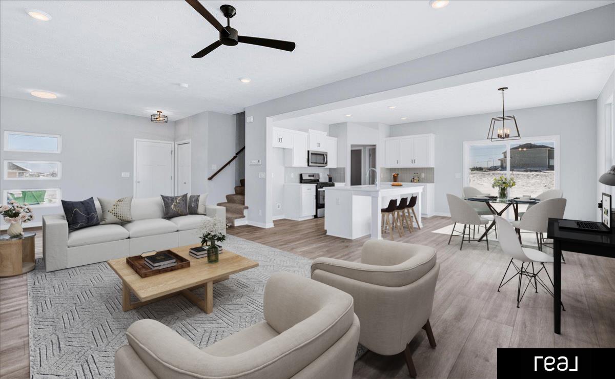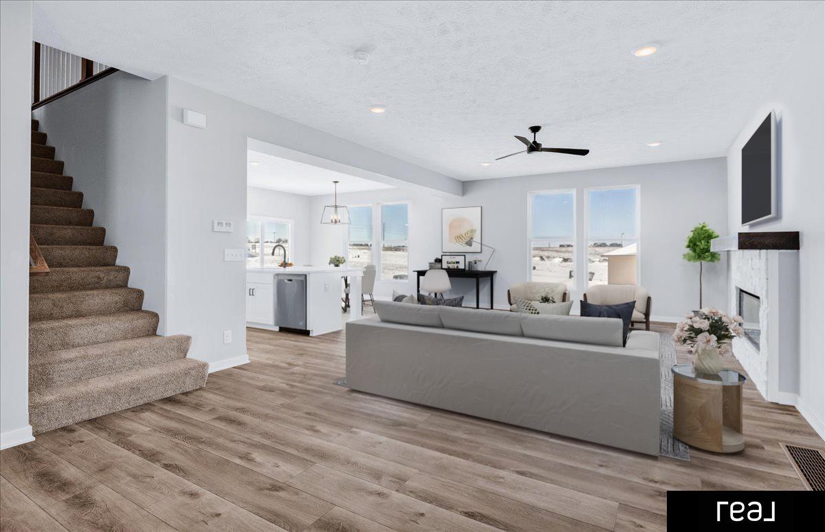 Step inside to an open-concept main floor that feels both fresh and functional, featuring a contemporary exterior, custom cabinetry, and granite or quartz countertops throughout. Durable LVP flooring flows seamlessly across the main level, while upgraded craftsman doors and trim elevate every space. The striking fireplace with stone surround and wrapped birch mantle creates a warm focal point, complemented by premium plumbing fixtures and thoughtful upgrades throughout. Stylish, move-in ready, and perfectly timed for the new year — this home is an exceptional opportunity to start fresh in Daybreak Springs. Don’t miss it!