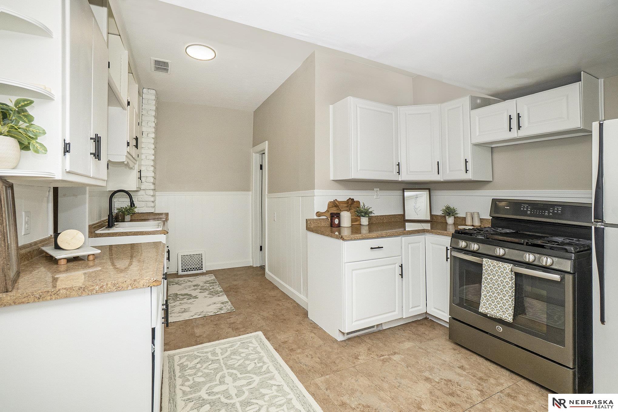 Charming 3-bedroom, 2-bath, 1.5-story South Omaha home featuring 2 kitchens! This beautifully updated property offers fresh paint, new flooring, new lighting, and refreshed bathrooms throughout. The lower level has excellent potential to be converted into an apartment for additional income. Outside, you'll love the large parking pad and newer retaining wall that wraps around the home, adding both convenience and curb appeal. Agent licensed attorney and related to Seller. Don't miss out and book a showing today!