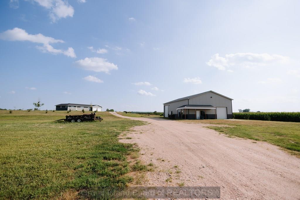 Dreaming of country living with all modern upgrades? This stunning home has it all: 5 Private acres of peaceful living, 64x40 heated shop-perfect for projects, hobbies, or extra storage, Your own private swimming & fishing lake, Walk-out basement with room to entertain. Just minutes from the interstate for an easy commute. This home blends tranquility and convenience, giving you the best of both worlds. Original portion of home that was built in 1972 was moved to this site and additions were made in 2021. Don't miss your chance to own a slice of country paradise.