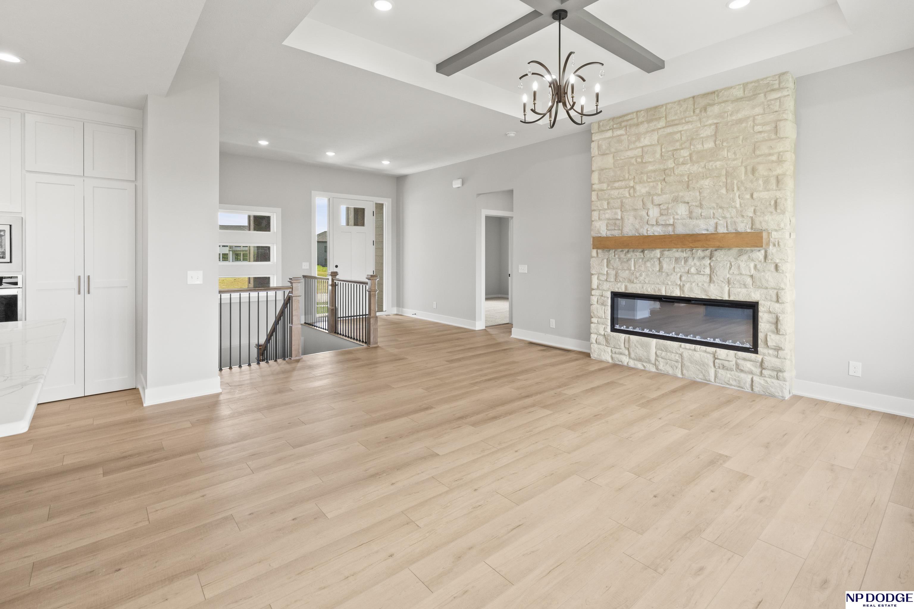 Paradise Homes stunning 5 bedroom 4 bath walkout ranch. Enjoy the great view from the covered deck. The main floor has an 11 ft ceiling with a floor to ceiling stone fireplace and beautiful LVP flooring. Chefs kitchen with 7 foot island, Built in appliances and large hidden pantry. All large bedrooms on the main floor with access to their own bath. Entertain in the finished basement with large family room, wet bar and fireplace. Complete august 2025. AMA