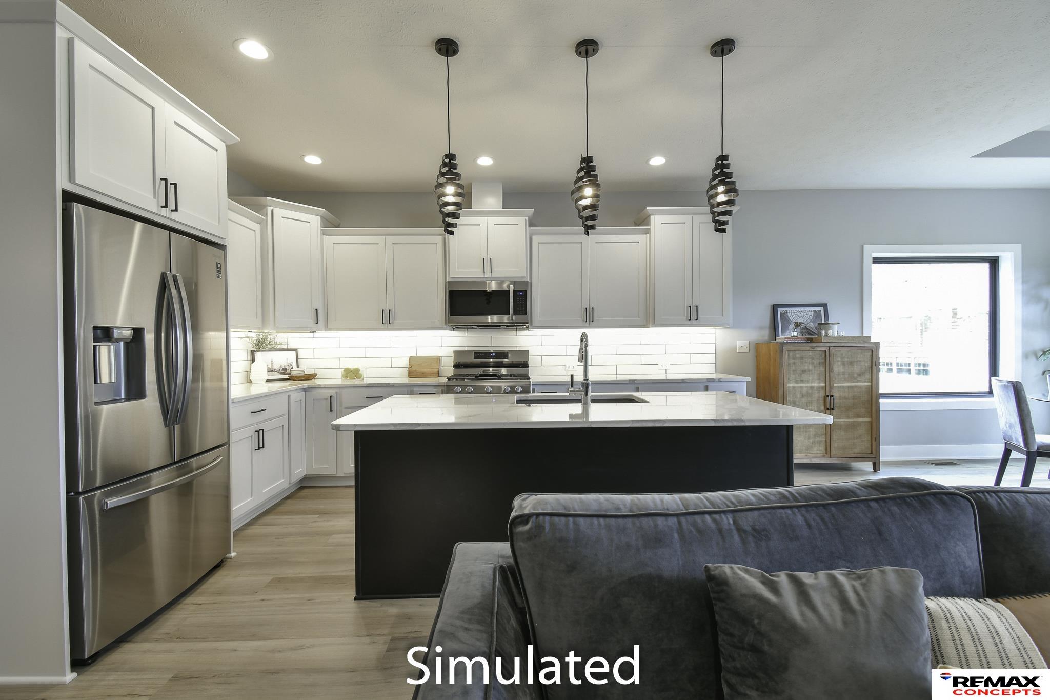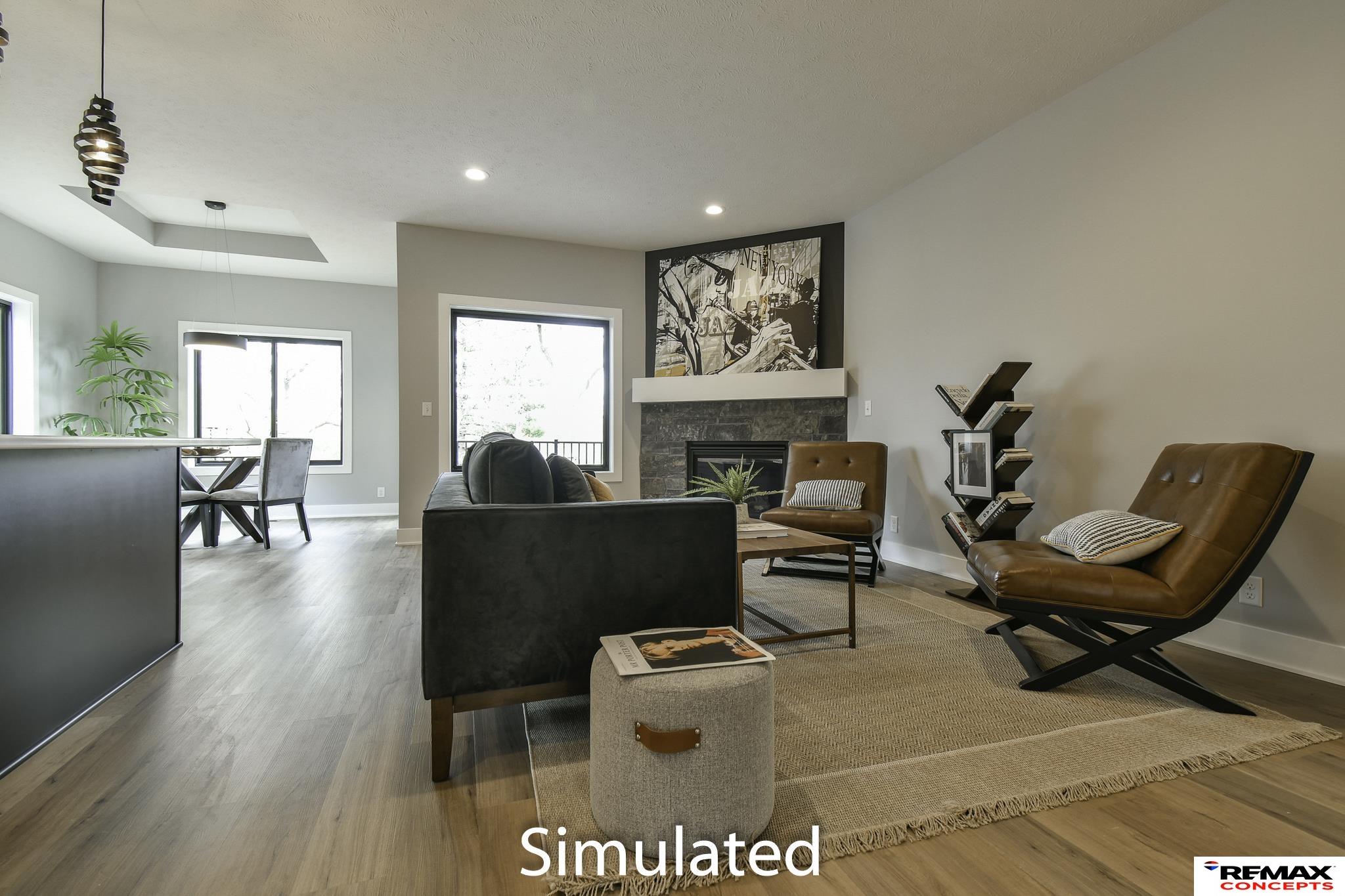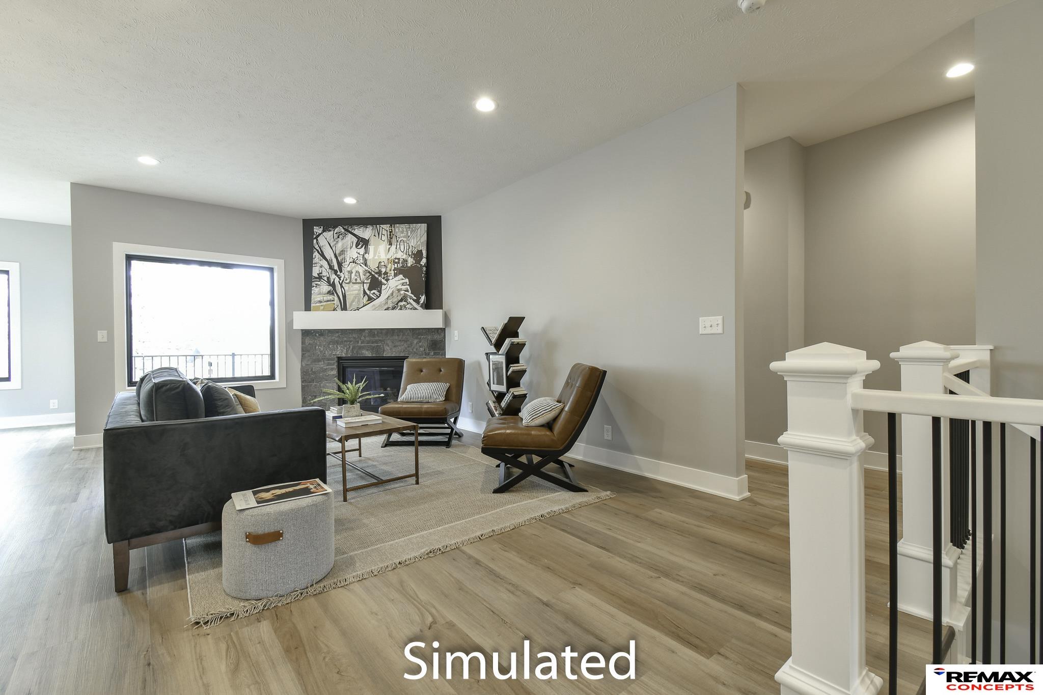 Welcome to 2,600+ sq. ft. of luxury living with top-quality finishes. This home features 4 bedrooms, 3 bathrooms, a spacious kitchen with a walk-in pantry, gas fireplace, and composite decking with aluminum railing. Enjoy zero-entry access from the garage, front door, and master walk-in shower. The kitchen includes a gas range, under-cabinet lighting, quartz countertops, tiled backsplash, and soft-close cabinets. The master suite offers a zero-entry shower with a seat, dual sinks, a tall linen cabinet, and direct access to the primary closet and main floor laundry. Upstairs has LVP and carpet flooring, a stone fireplace, and large windows. The fully finished basement includes daylight windows and 1,049 sq. ft. of space. The exterior features stone and fiber cement siding with an attached two-stall garage. Designer-selected finishes throughout. HOA covers trash, recycling, lawn care, sprinkler water, snow removal, and exterior insurance.