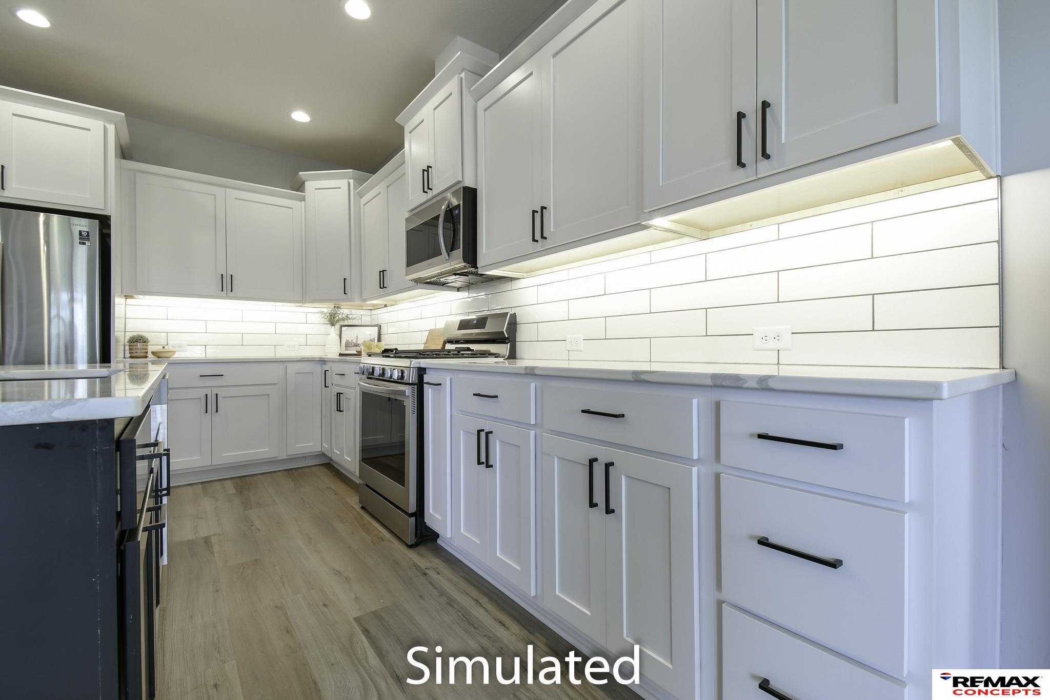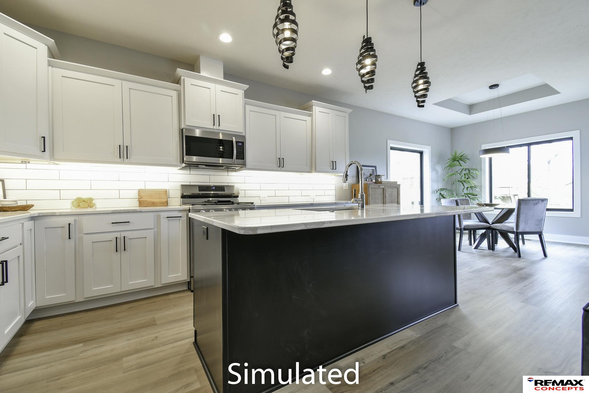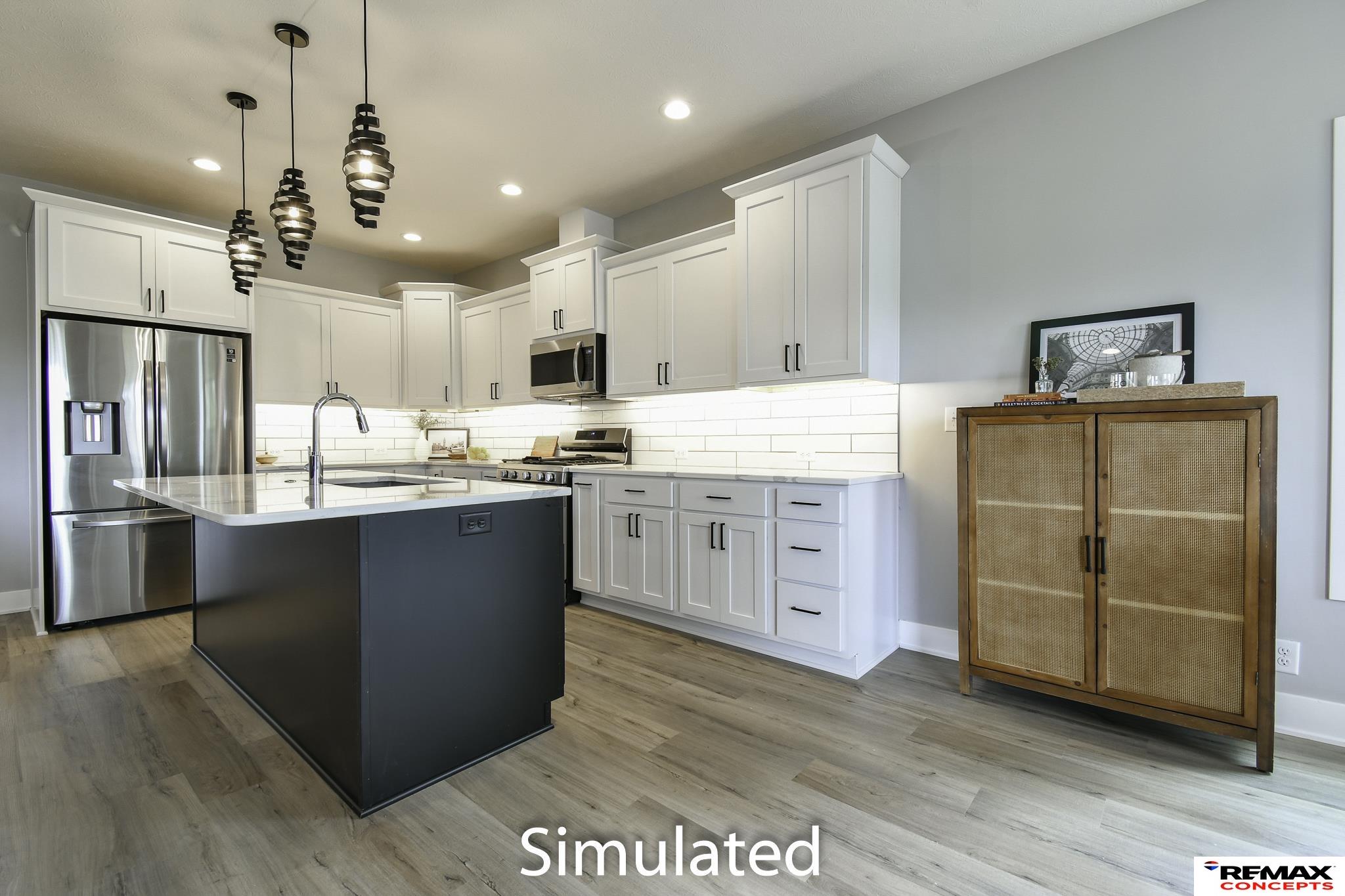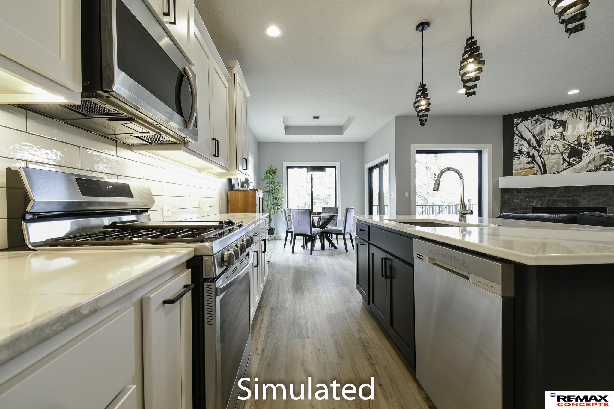 Welcome to 2,600+ sq. ft. of luxury living with top-quality finishes. This home features 4 bedrooms, 3 bathrooms, a spacious kitchen with a walk-in pantry, gas fireplace, and composite decking with aluminum railing. Enjoy zero-entry access from the garage, front door, and master walk-in shower. The kitchen includes a gas range, under-cabinet lighting, quartz countertops, tiled backsplash, and soft-close cabinets. The master suite offers a zero-entry shower with a seat, dual sinks, a tall linen cabinet, and direct access to the primary closet and main floor laundry. Upstairs has LVP and carpet flooring, a stone fireplace, and large windows. The fully finished basement includes daylight windows and 1,049 sq. ft. of space. The exterior features stone and fiber cement siding with an attached two-stall garage. Designer-selected finishes throughout. HOA covers trash, recycling, lawn care, sprinkler water, snow removal, and exterior insurance.