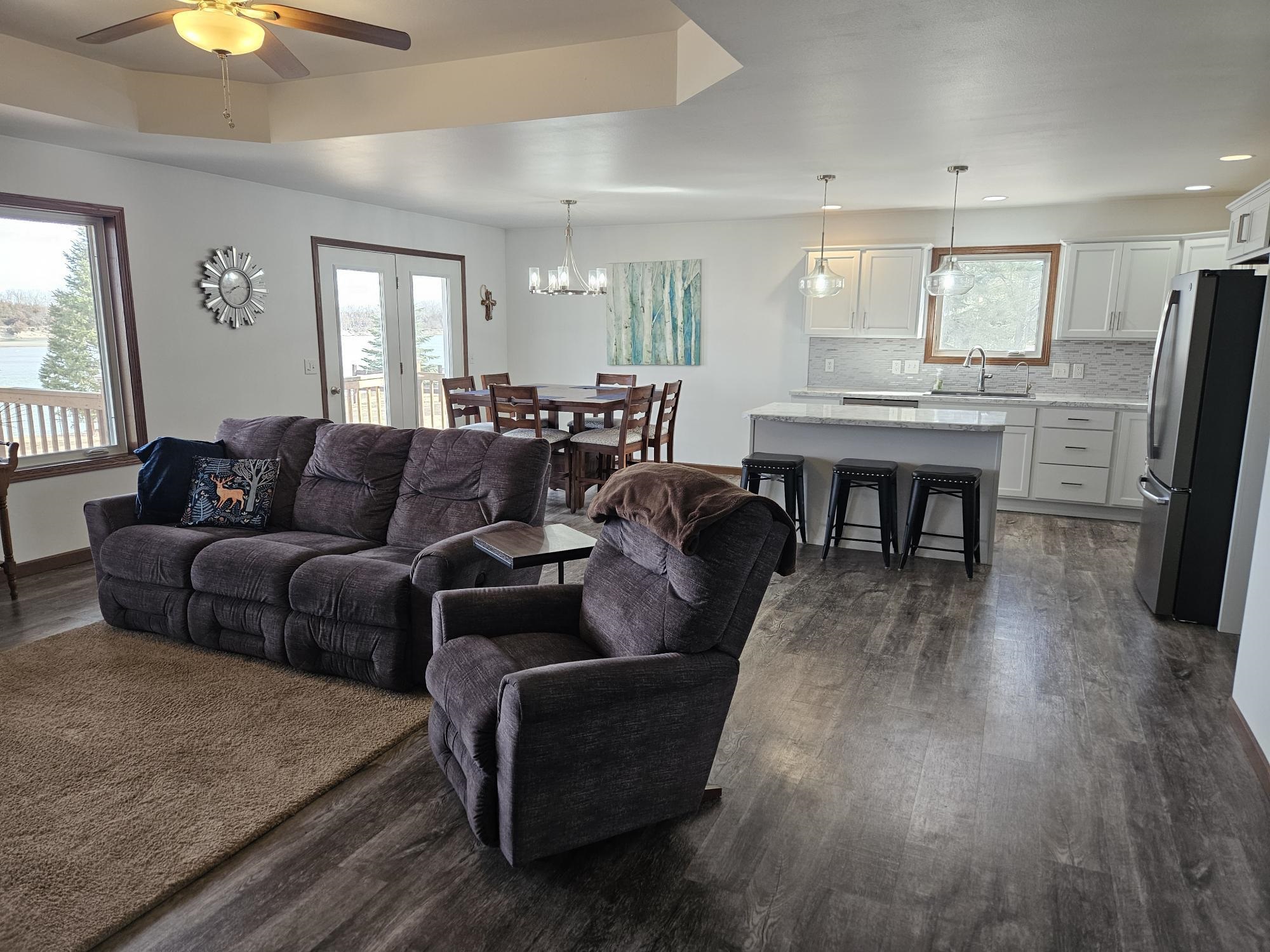 There's a place to retire. You can't beat this! Ideal for relaxing or throwing a party. Welcome to paradise on the river. Great hunting and fishing. 40x40 heated & insulated machine shed with two 12x10 overhead doors, 3/4 bath, and a loft. Rock area has a fire pit along with electric in the retaining wall. Awesome large walk-in pantry along with walk-in bedroom closets and walk-in hallway closet. Basement plumbing roughed in with lift station. Included water heater & water softener. Water softener is a 3002R400 with a AIV10 Iron Master ecowater system included. Deck provides electric for TV, radio, etc. Protective covenants & easement are in associated docs. 5 days after offer acceptance buyer shall review & sign Sandbar Ridge LLC agreement. Seller prefers to use Alta or Holan Cedar County title company. Ex: LK, TG, DH, DG. No HOA but potential gravel maintenance. GPS should take you to the house. Call for access to the house.
