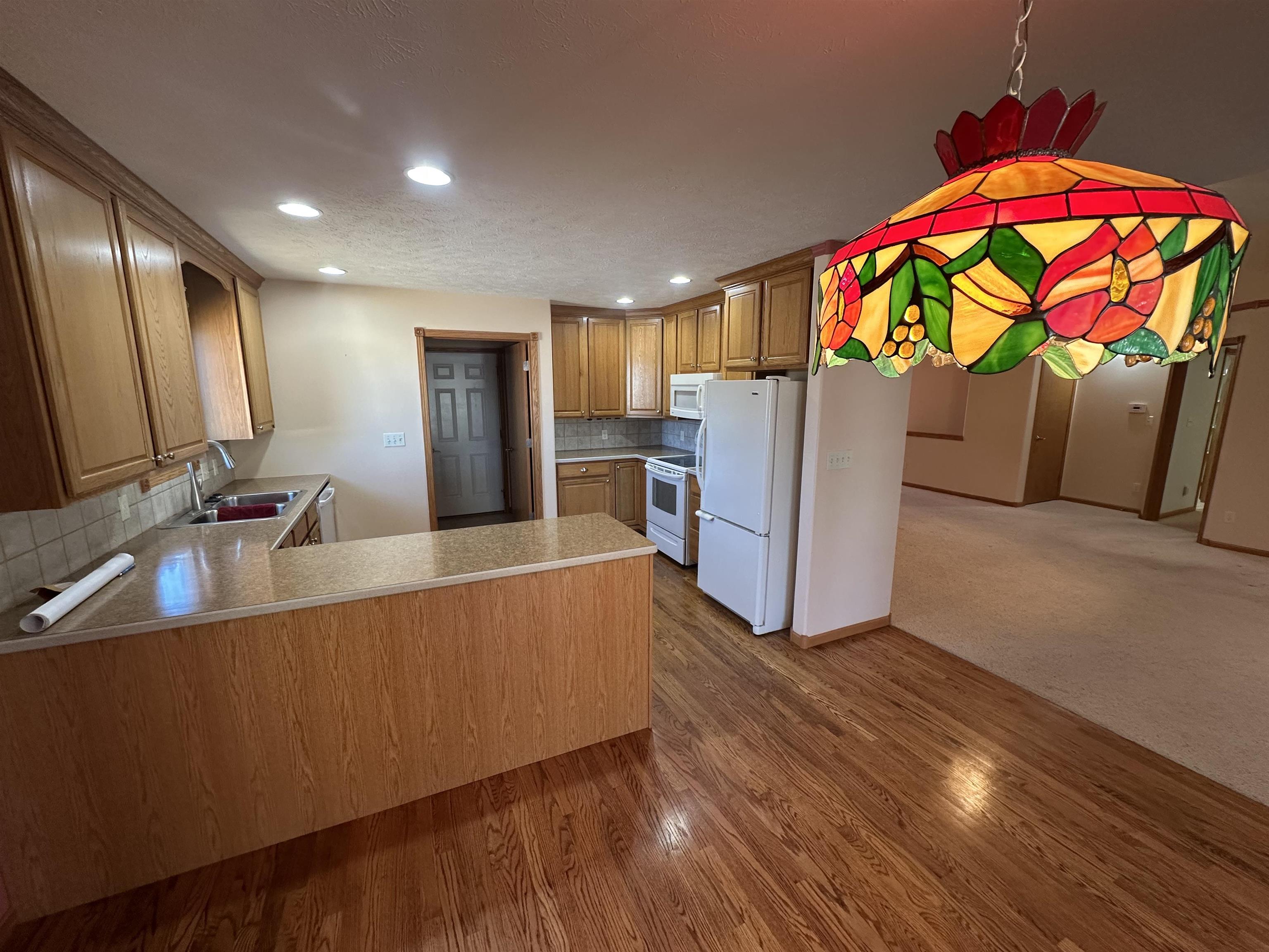 Maintenance-free living at this very well-cared for, one owner condo! This was built for wheelchair accessibilty and includes a lift chair to the lower level. The great room features a gas fireplace and the one year old TV. Beautiful hardwood floors adorn the dining area and the good-sized kitchen. There is a main floor laundry room and a nice pantry right off of the kitchen. All the appliances in the kitchen and laundry are included as well. Three bedrooms and three bathrooms! You will love having the 12x12 finished sunroom to enjoy nearly year round! Now ready for new owners!