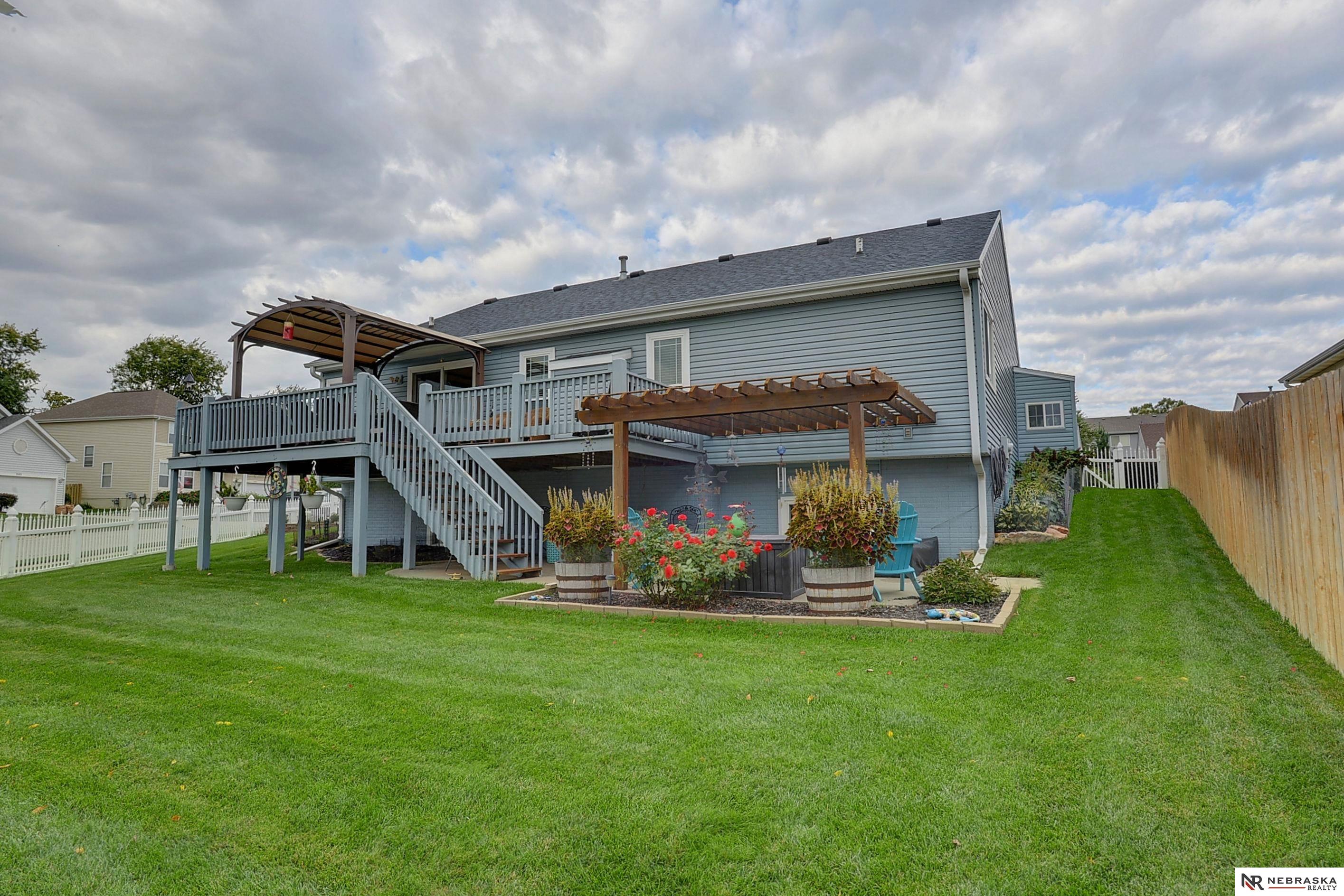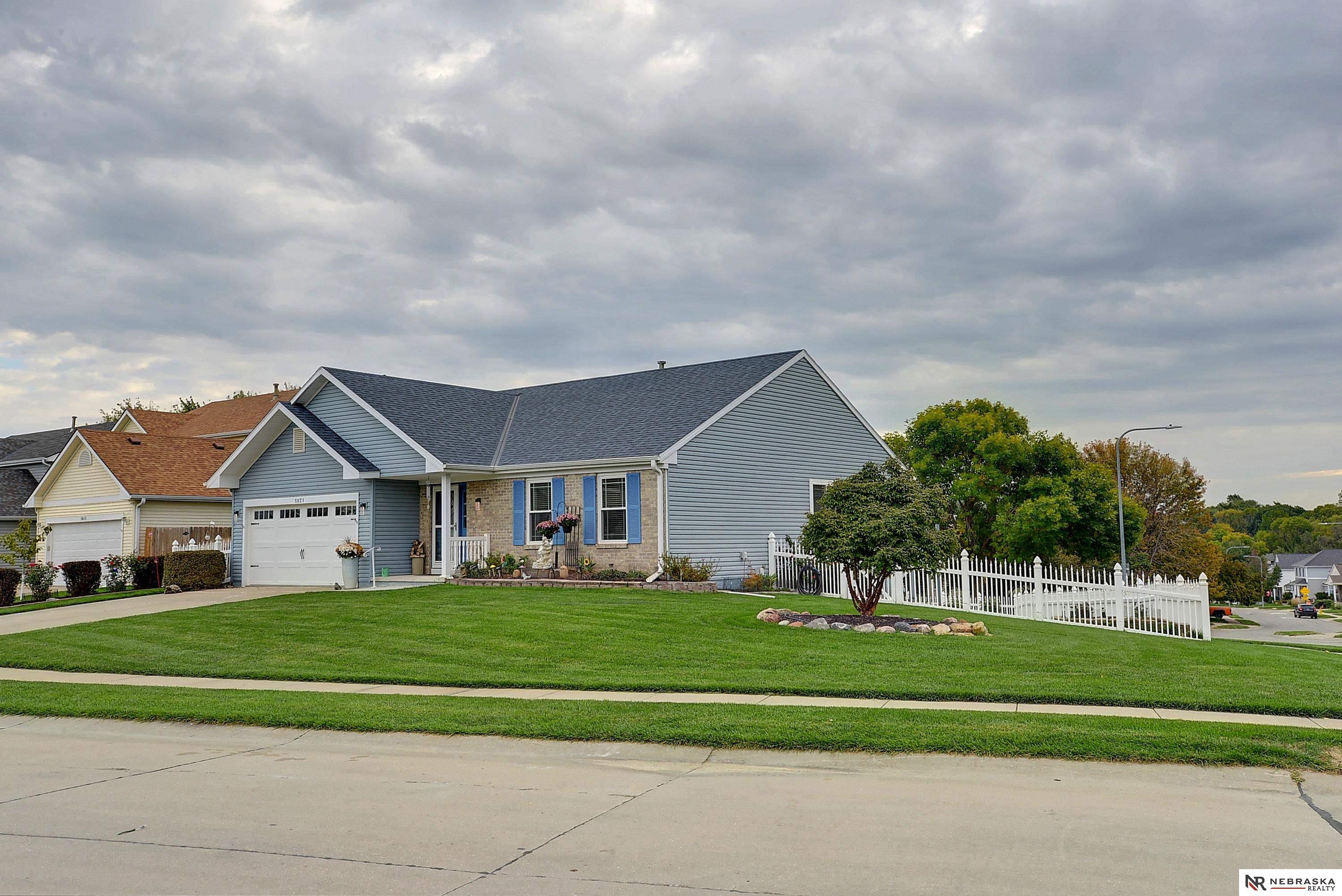 Millard Ranch with incredible curb appeal welcomes you with a beautifully maintained yard, lush landscaping, and timeless brick & vinyl exterior. Inside, enjoy sun-filled living spaces, wood floors, neutral paint, and the first of two cozy fireplaces. The stunning kitchen shines with white cabinetry and stainless-steel appliances, perfect for everyday living and entertaining. All three main-floor bedrooms feature ceiling fans, while the spacious primary suite offers a walk-in closet and dual-sink bath. The finished basement impresses with a second fireplace, daylight windows, expansive living space, and a newer ¾ bath-ideal for entertaining. Outdoor living is just as inviting with a large deck featuring a canopied pergola and two patio areas ready for gatherings. The huge corner lot offers plenty of space to play or garden, complete with a sprinkler system and low-maintenance vinyl fence. Then the last line to be New HVAC, freshly painted basement, ceilings and primary bath.