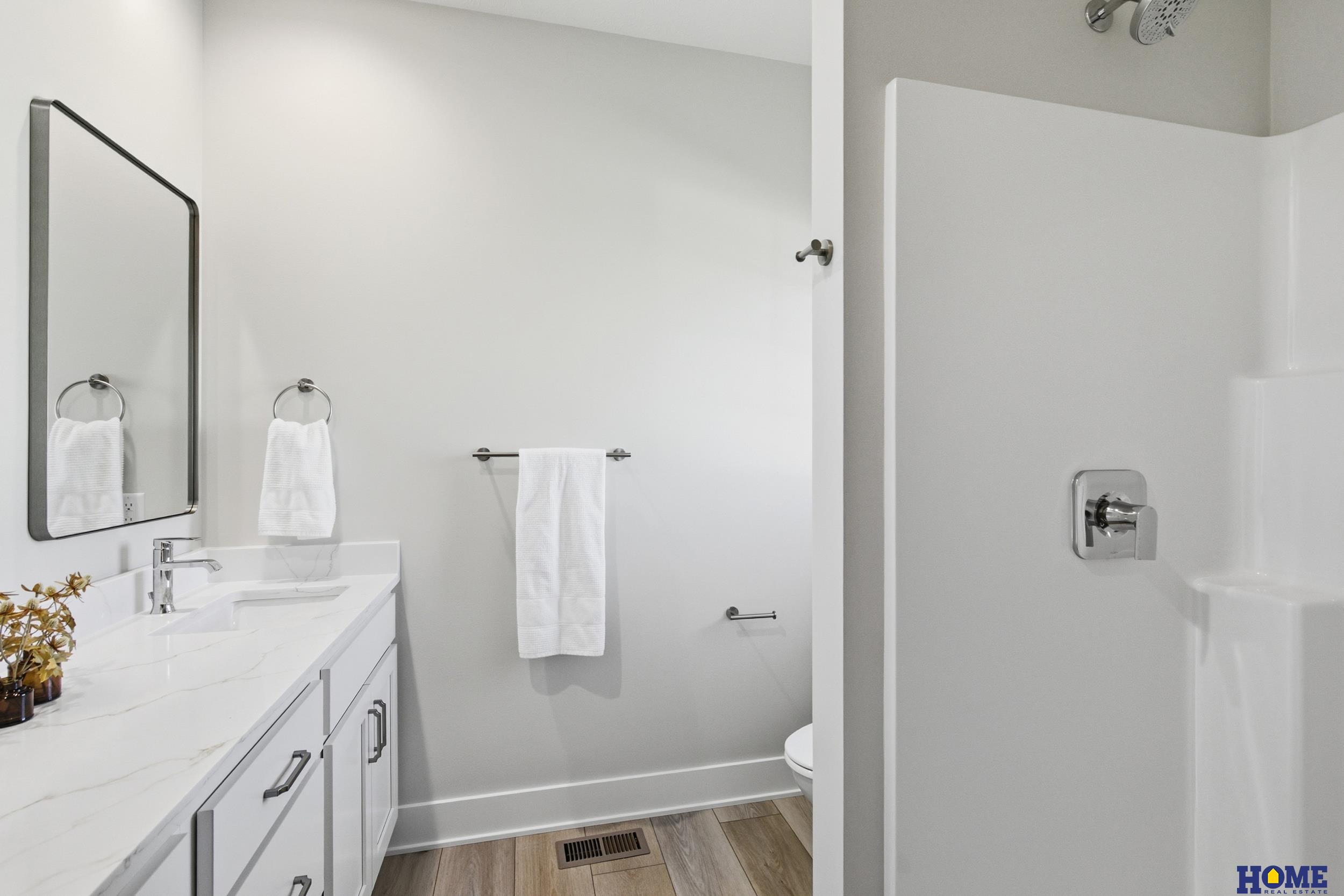 Newly built single-family ranch offering stylish, maintenance free living at 5838 S. 94th Street. This thoughtfully designed home features 3 bedrooms, each positioned without shared walls for added privacy, and 3 bath areas. The welcoming open floor plan provides 1,227 finished sf on the main level, complemented by 925 finished sf in the lower level for flexible living, entertaining, or guest space. Wide-plank neutral LVP flooring flows through the main living areas and is beautifully paired with light, bright, on-trend neutral finishes and abundant natural light. The kitchen is both functional and refined, featuring quartz countertops, slow-close cabinetry and drawers, and a convenient corner pantry with ample storage. Main level laundry adds everyday ease and convenience. The home is well positioned on the lot, offering a desirable east-facing patio that opens to common space—perfect for outdoor enjoyment. A two-stall attached garage completes this exceptional offering.