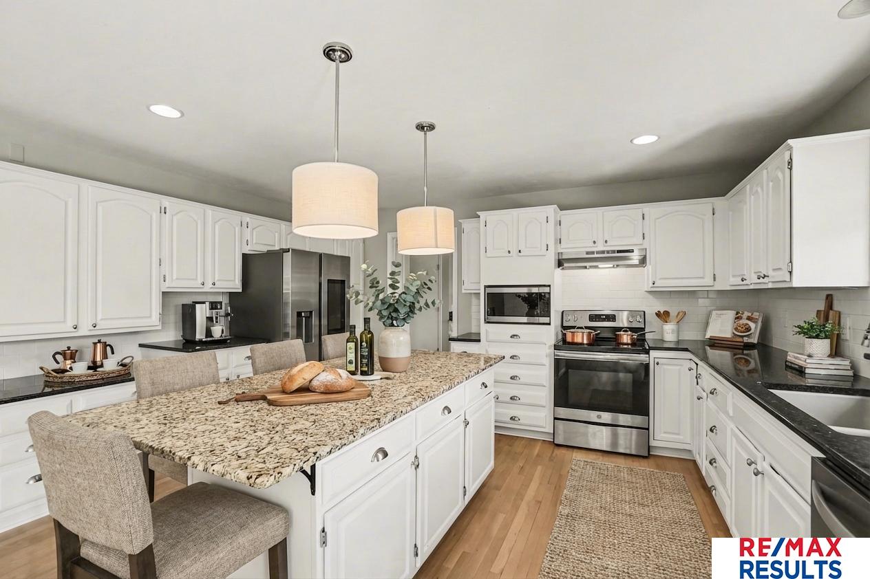 Over 3600 finished sqft, this stunning home checks all of the boxes & more! Among its countless desirable amenities incl gorgeous hardwood flrs on main lvl, new carpet, large eat-in kitchen w/an abundance of cabinetry & counterspace, granite counters, island, stainless steel appl. Double-sided fireplace provides a warm & cozy ambiance. Living rm w/large bay window, formal dining rm, flex room perfect for office, playroom, etc. & lots of built-ins. Large main fl laundry rm/drop zone. The 2nd level features a spacious primary suite w/cathedral ceilings, full bath w/dual vanities, huge walk-in closet. The three additional generously-sized bedrooms all have walk-in closets! Partially fin lower lvl w/rec room & HUGE storage room. Neutral, designer colors throughout. Impressive yard w/extensive landscaping, full fence, sprinkler sys. Enjoy summer BBQs on your large deck & patio. Can’t beat the location near Zorinsky, shopping, dining & everywhere! Move-in ready, priced to sell, Welcome Home!