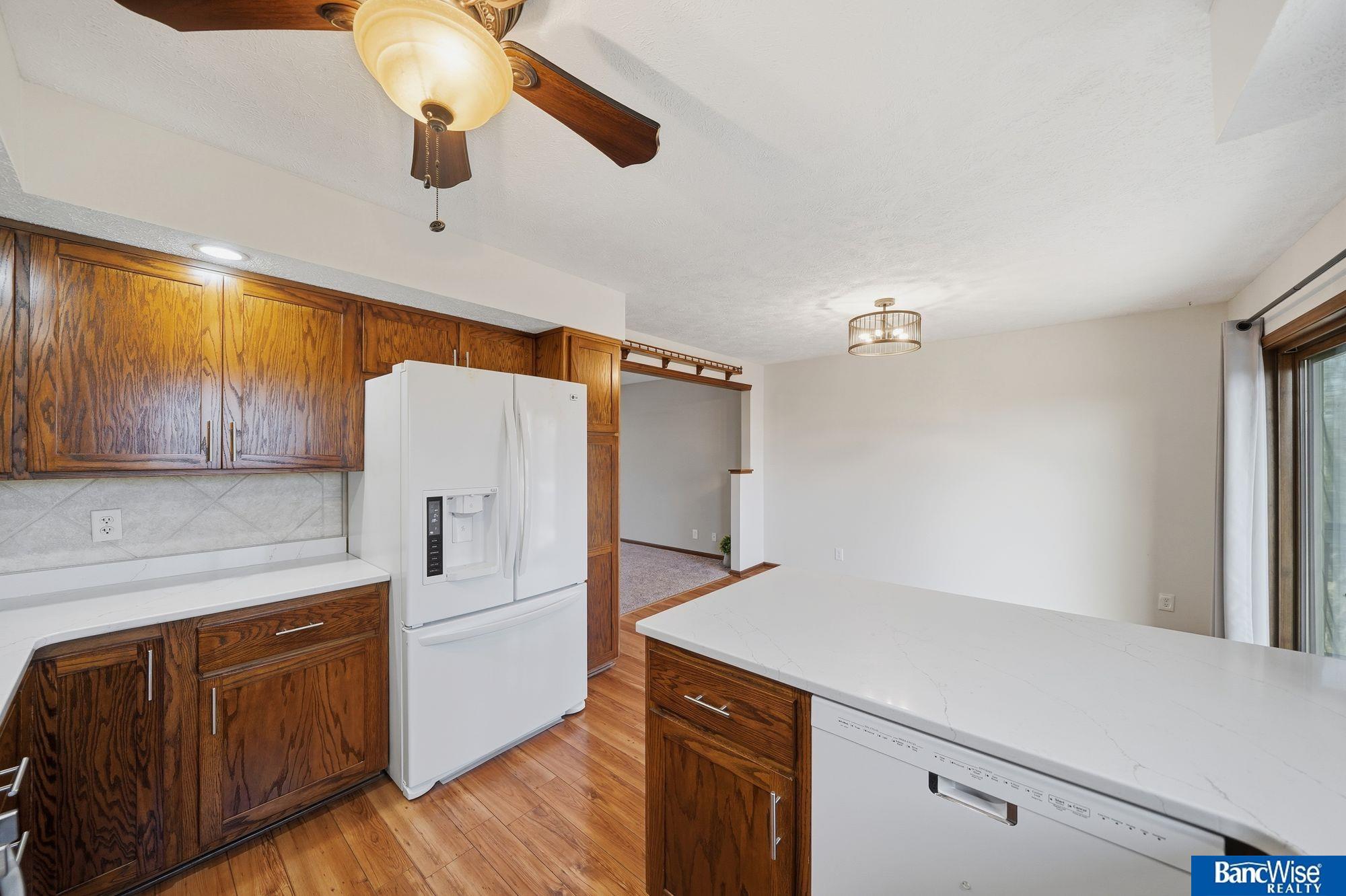 Welcome home to this beautifully updated 4-bedroom, 3-bath property that blends comfort, space, and style. The main floor features a bright living room, informal dining area, and an updated kitchen with quartz countertops, newer appliances, and warm wood floors. Step out to the deck and enjoy peaceful views of the wooded area behind the house. Three bedrooms are conveniently located on the main level, including a primary suite with a private ¾ bath, plus a main hall bath with main-floor laundry. The finished walkout basement offers even more living space with a cozy family room and fireplace, a large rec room, a 4th bedroom, and another ¾ bath—perfect for guests or entertaining. You’ll also appreciate the large storage room, attached 2-stall garage, oversized driveway for extra parking, and covered patio. Outside, the backyard shed with power adds versatility. With newer siding, roof, and windows, this move-in-ready home truly has it all. Showings start Jan 2nd. Call for an appt today!