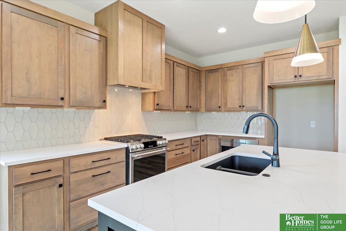 Seller offering $10,000 toward closing costs, rate buy-down, or amenity upgrades! Discover the perfect blend of sophistication and practical living in this brand-new ranch home in Elkhorn, featuring 3 thoughtfully designed bedrooms on the main floor and garage space for 4 cars. The heart of the home boasts a premium kitchen appliance package and white quartz countertops. The living area, highlighted by a sleek gas fireplace, invites comfort and relaxation, while large windows create an airy ambiance. Step outside to the expansive covered patio, ready for your summer barbecues with a dedicated gas line for grilling. In the lower level, a wet bar beckons for entertaining, along with a fourth bedroom and a fully tiled shower. With a 1-YEAR HOME WARRANTY, you can enjoy peace of mind in your forever home. Take advantage of the $10K incentive to make home ownership easier with this high-quality build.