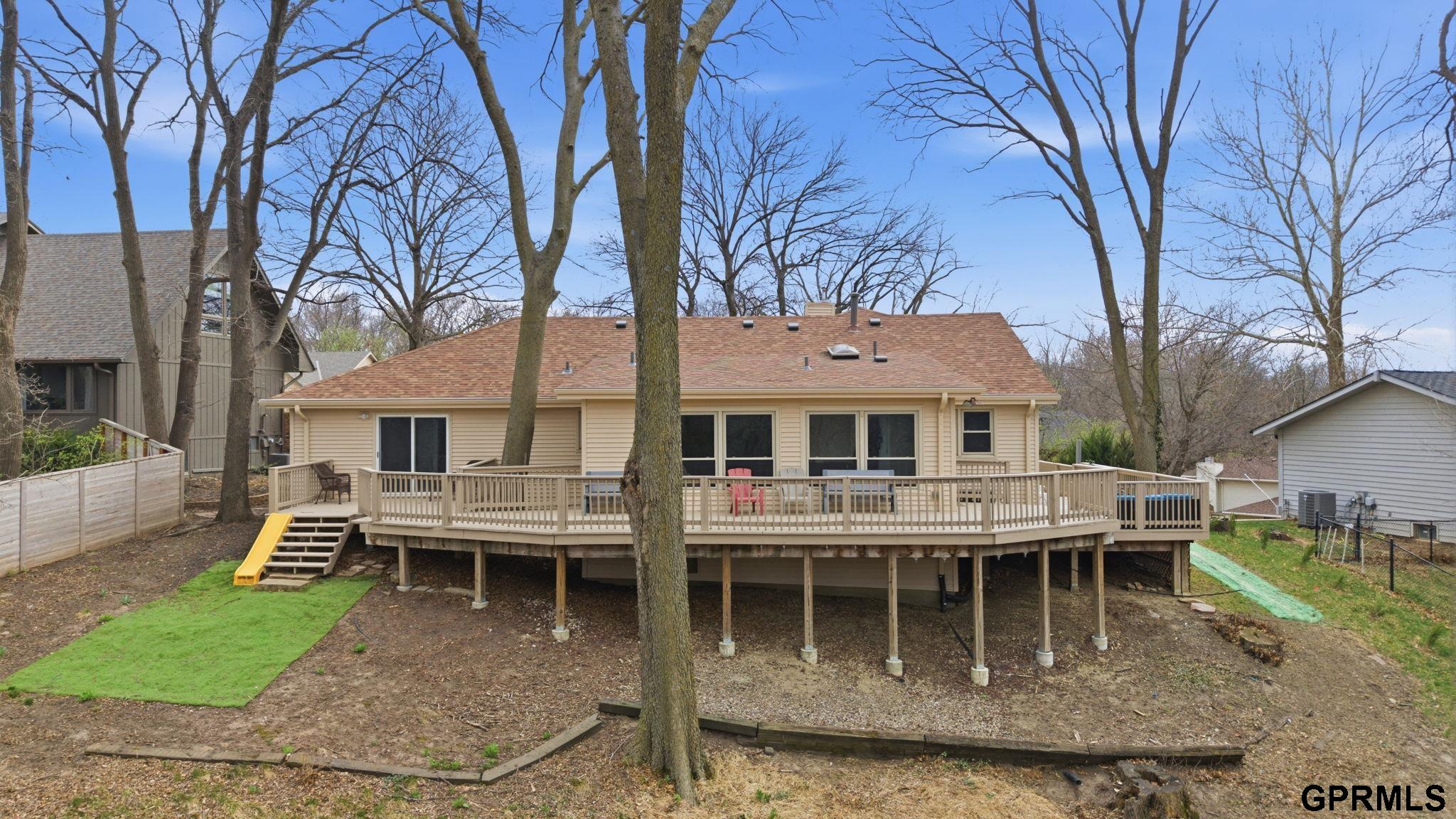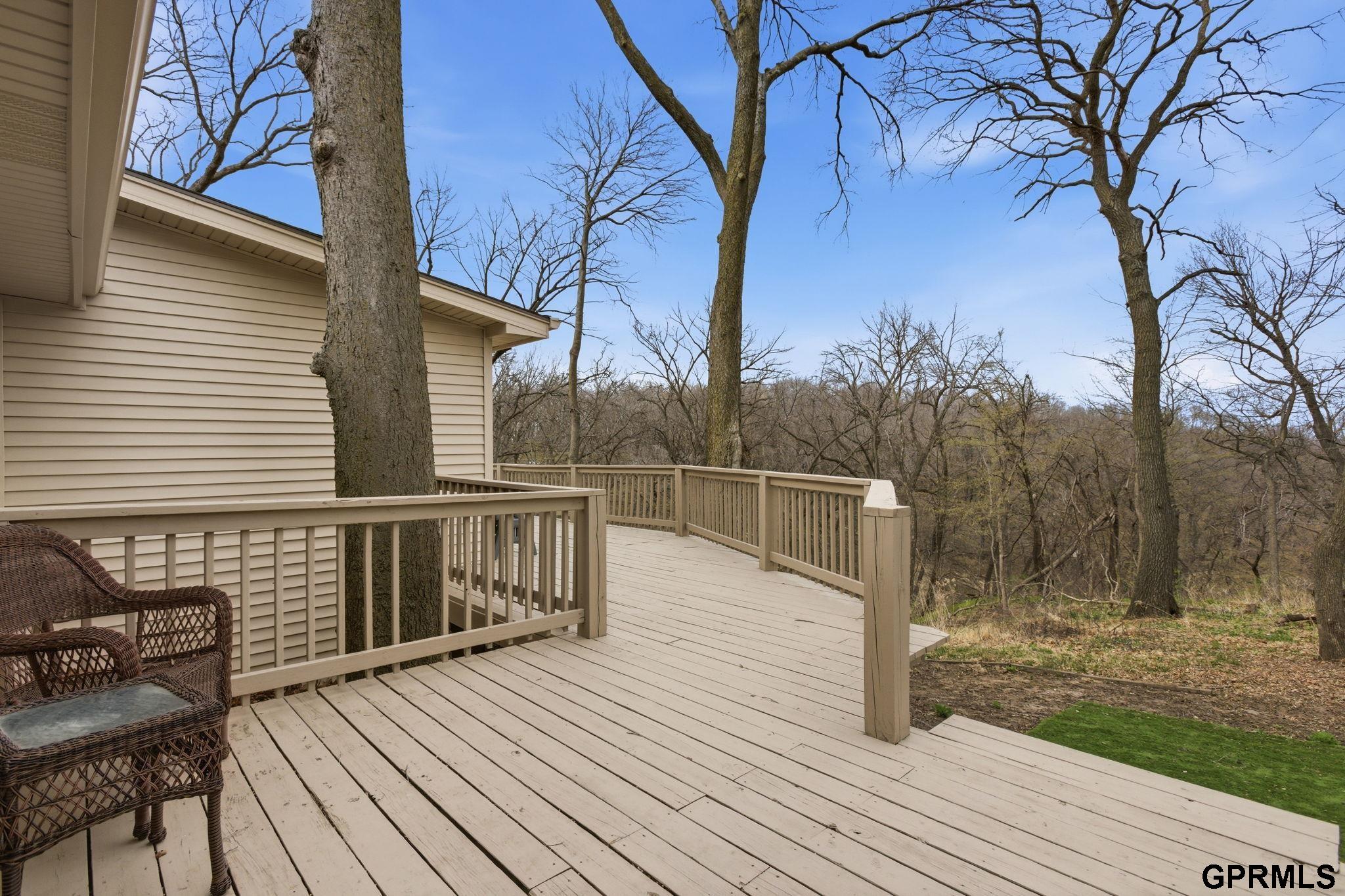 Bellevue Beauty! This unique & spacious home is perched perfectly w/ elevated views backing to the Fontenelle Forest Preserve. Enjoy nature & wildlife from the wrap-around deck & walking distance to trails. With over 3,200 sqft, you’ll love the expansive room sizes throughout and appreciate all the updates completed for you! Two large primary suites, with one that features heated tile flooring, fireplace and laundry hookups. The kitchen has been completely redone w/ soft-close cabinets, quartz counters, gas stove, and appliances. Large windows throughout allow for natural light to fill the home creating light & bright spaces. Non-conforming 4th bedroom in basement & 2nd laundry hookup. Oversized 2 car garage w/ additional storage. Other MAJOR UPDATES include NEW roof, siding, gutters w/ leaf guards, driveway, freshly painted deck, retaining wall, plumbing, electrical, flooring, and more. An exceptional home offering space, updates, and an unbeatable setting- all at an incredible value!